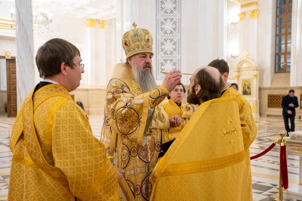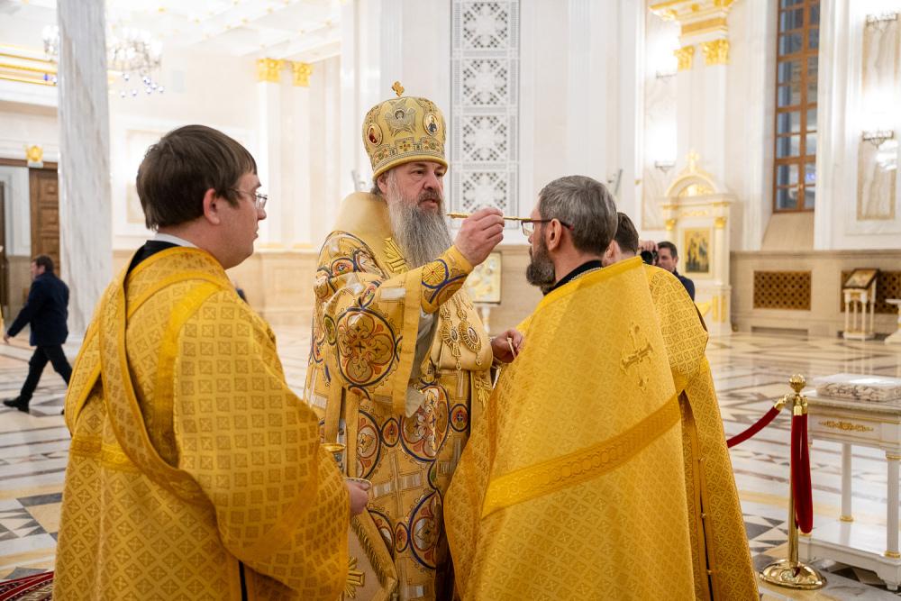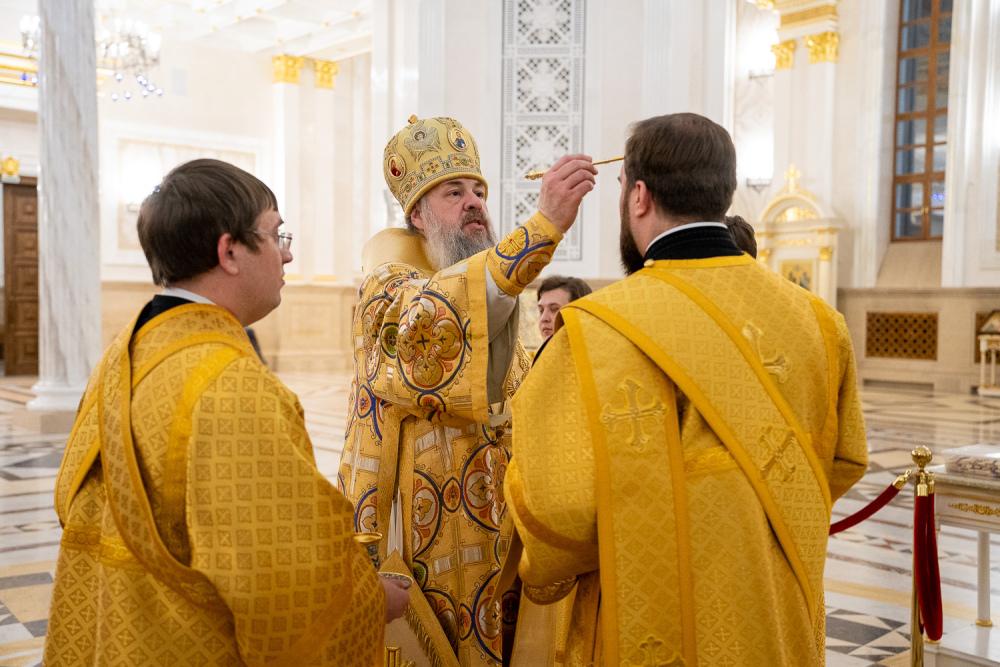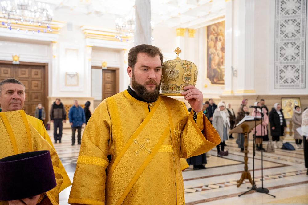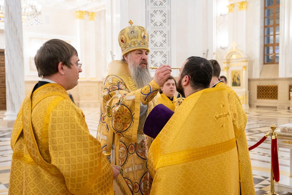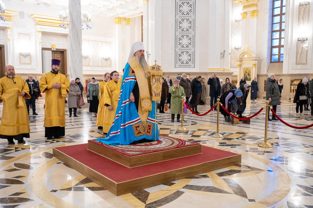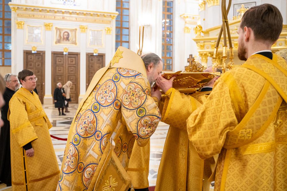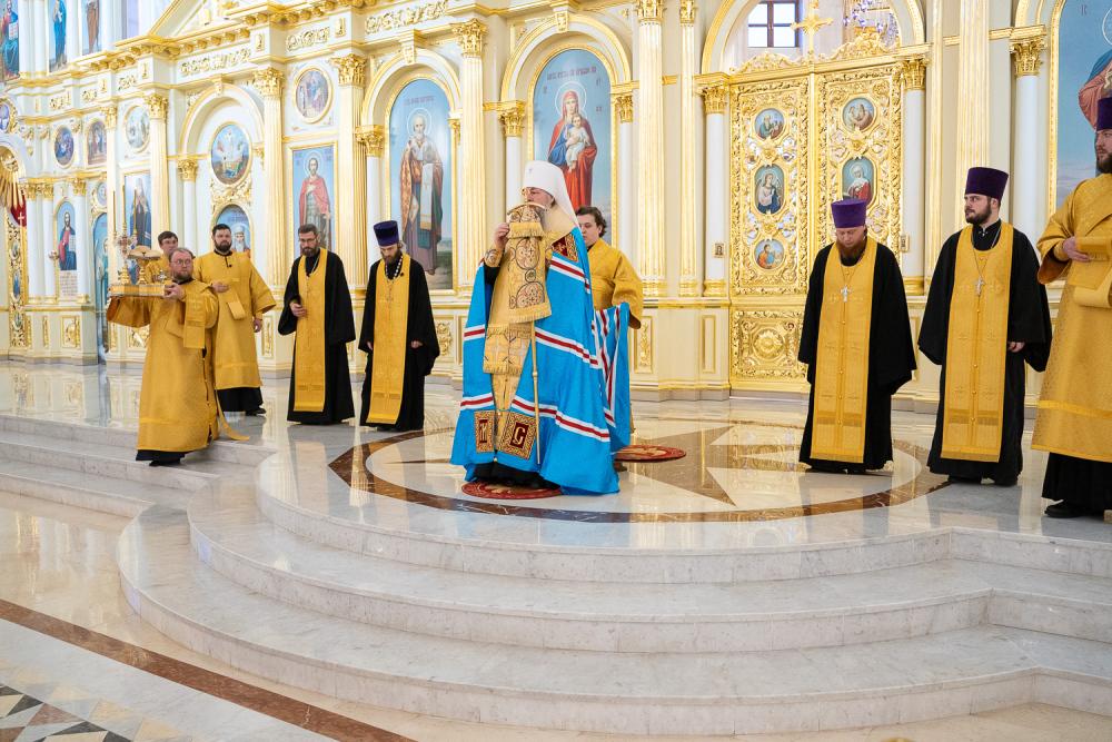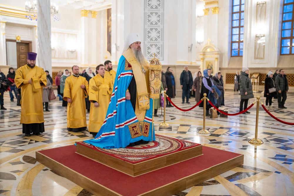 Его Высокопреосвященству сослужили ключарь Спасского кафедрального собора иерей Николай Батищев, протоиерей Владимир Ольхов, иереи Георгий Насонов и Сергий Шурыгин, диаконы Богдан Яворский, Кирилл Вейго, Георгий Дементьев и Илья Харитонов.
