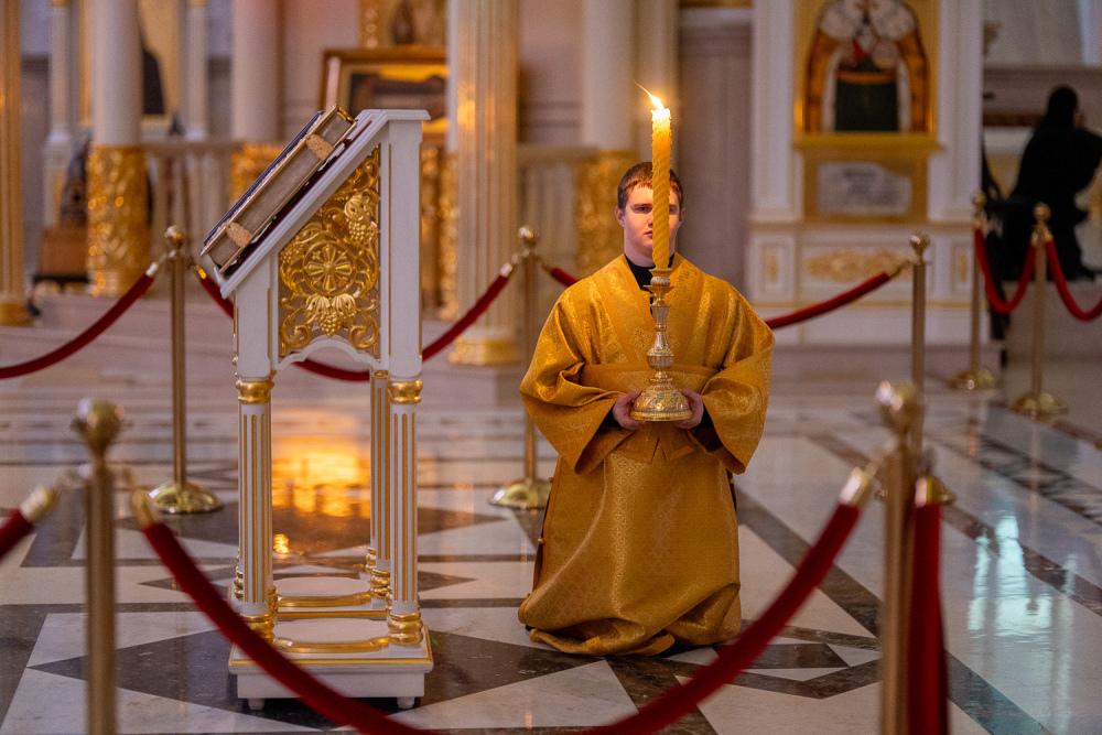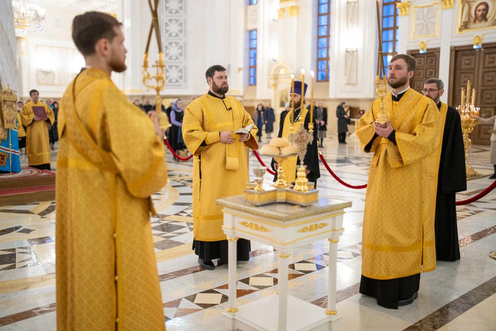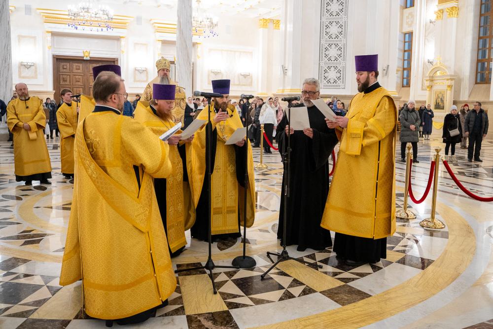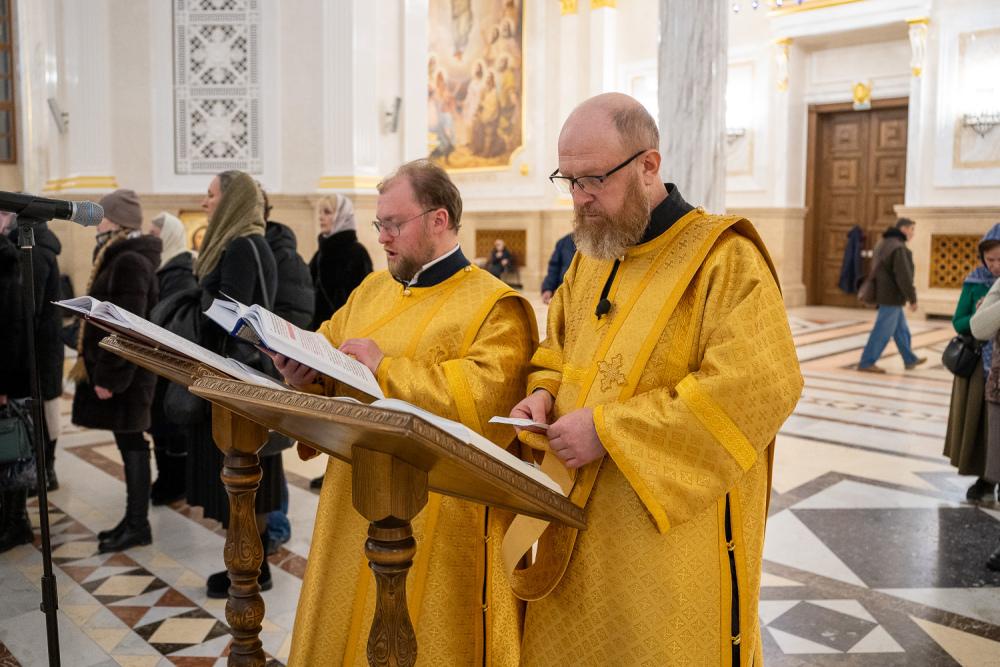 Богослужебные песнопения исполнил хор Спасского кафедрального собора под управлением регента Ольги Горшеневой.