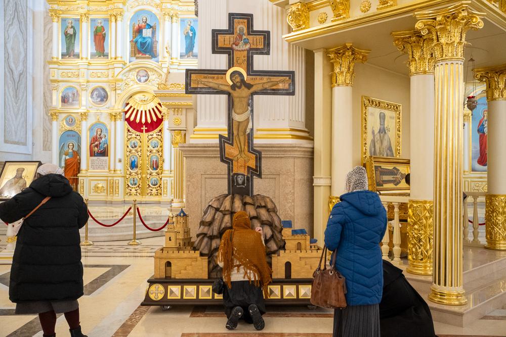 На память о совместной молитве глава Пензенской митрополии преподнес участникам богослужения небольшие образки с изображением Кувуклии — часовни, расположенной на месте погребения и Воскресения Господа Иисуса Христа.