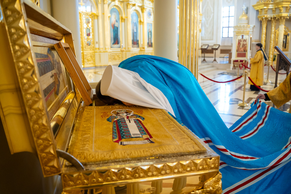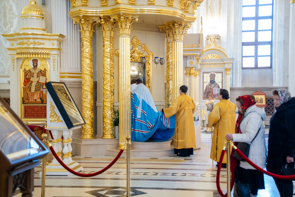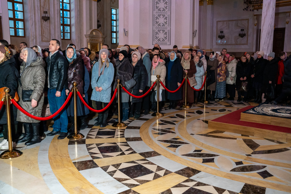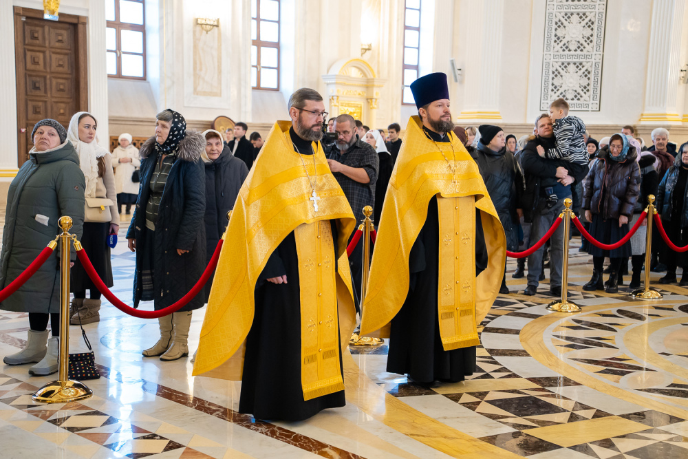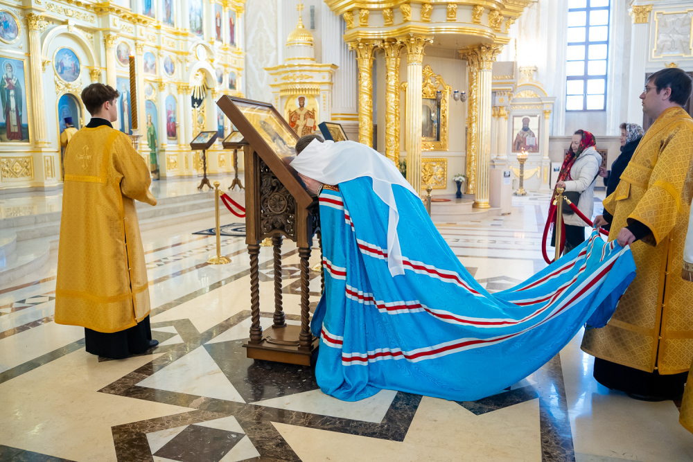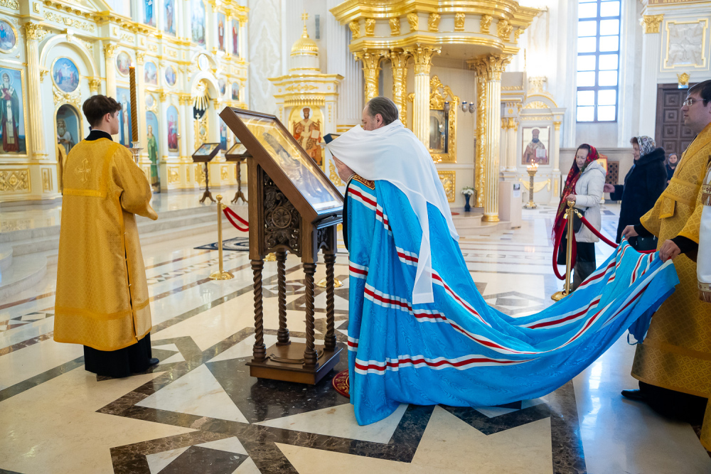 Затем правящий архипастырь прочитал молитву на начало поста Святой Четыредесятницы, после чего преподал крест для целования духовенству и мирянам, которые подходили к владыке, чтобы получить благословение на прохождение Великого поста.