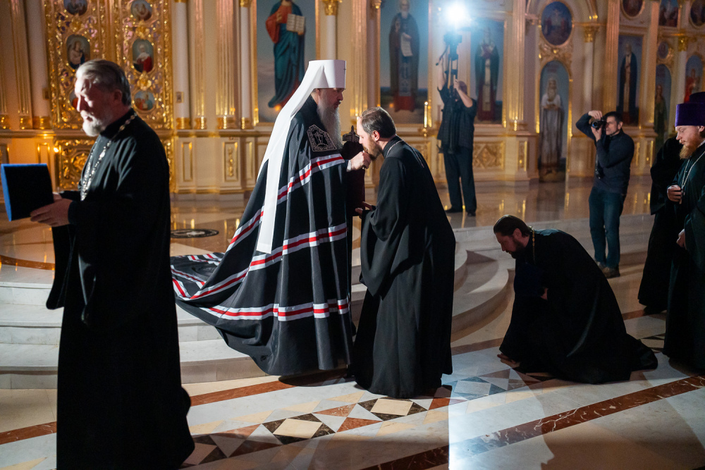 В Прощеное воскресенье митрополит Серафим совершил вечерню с чином прощения в Спасском кафедральном соборе