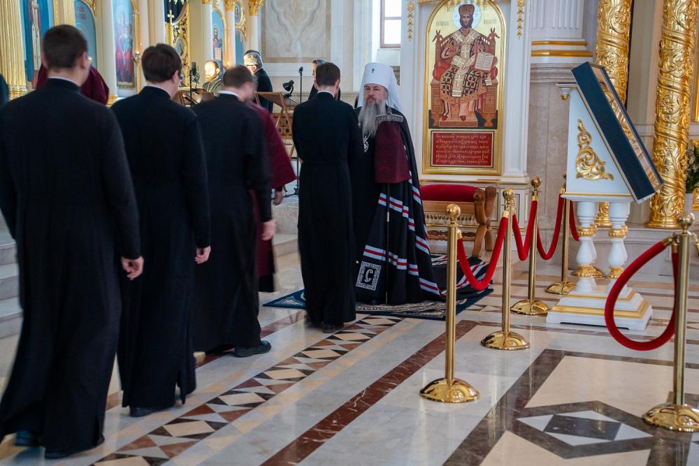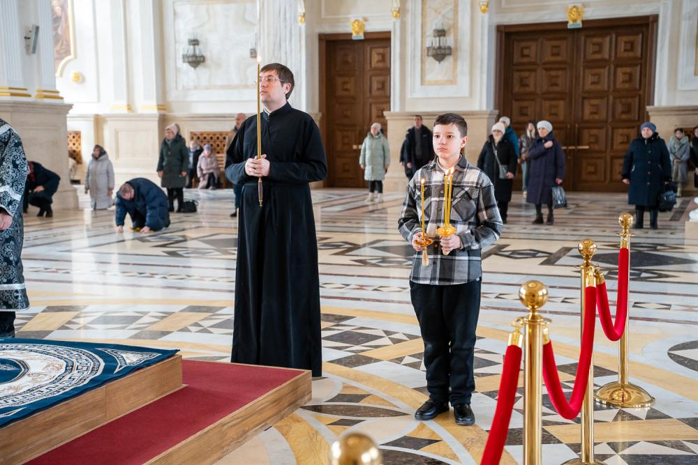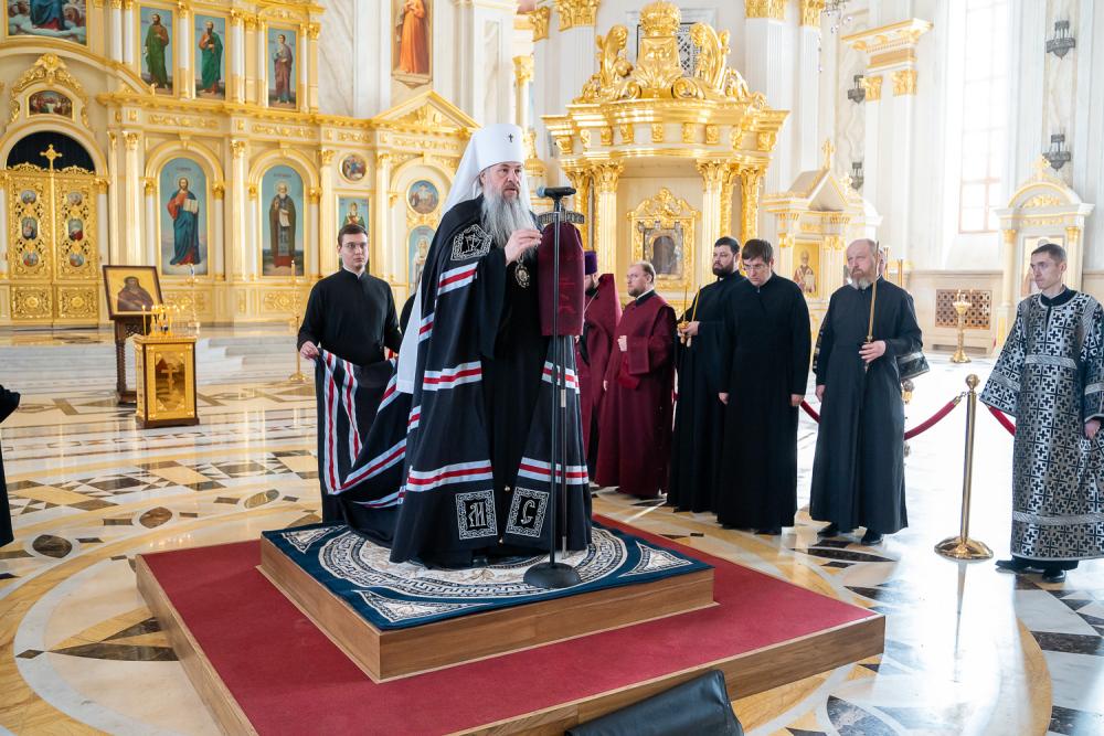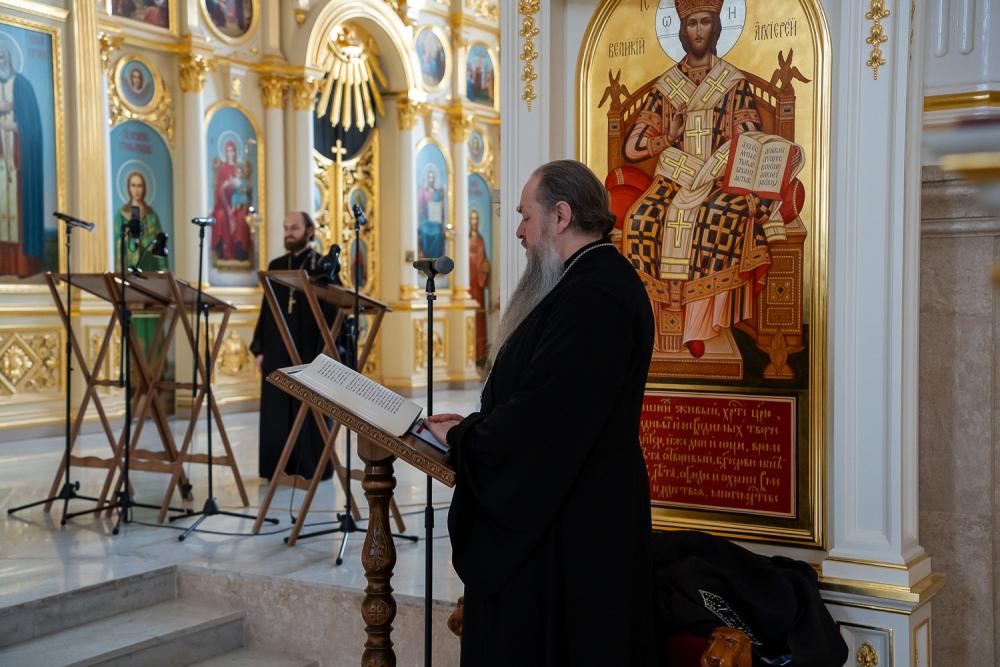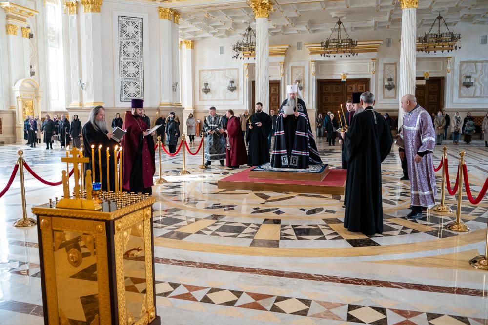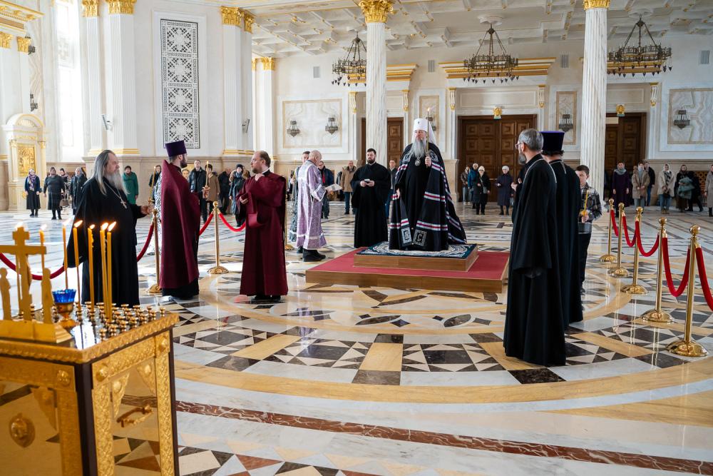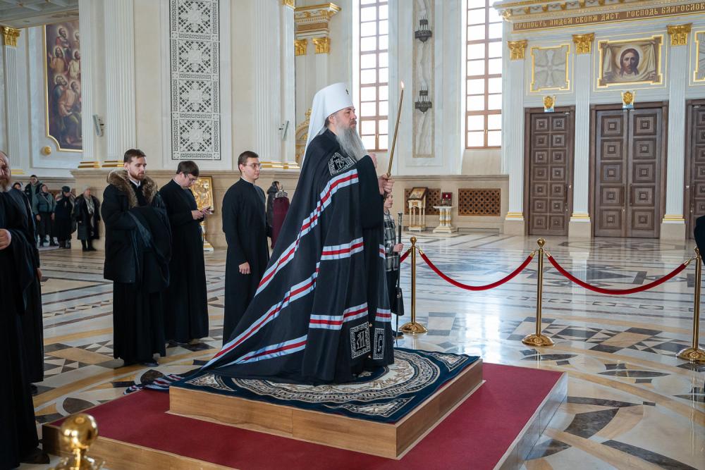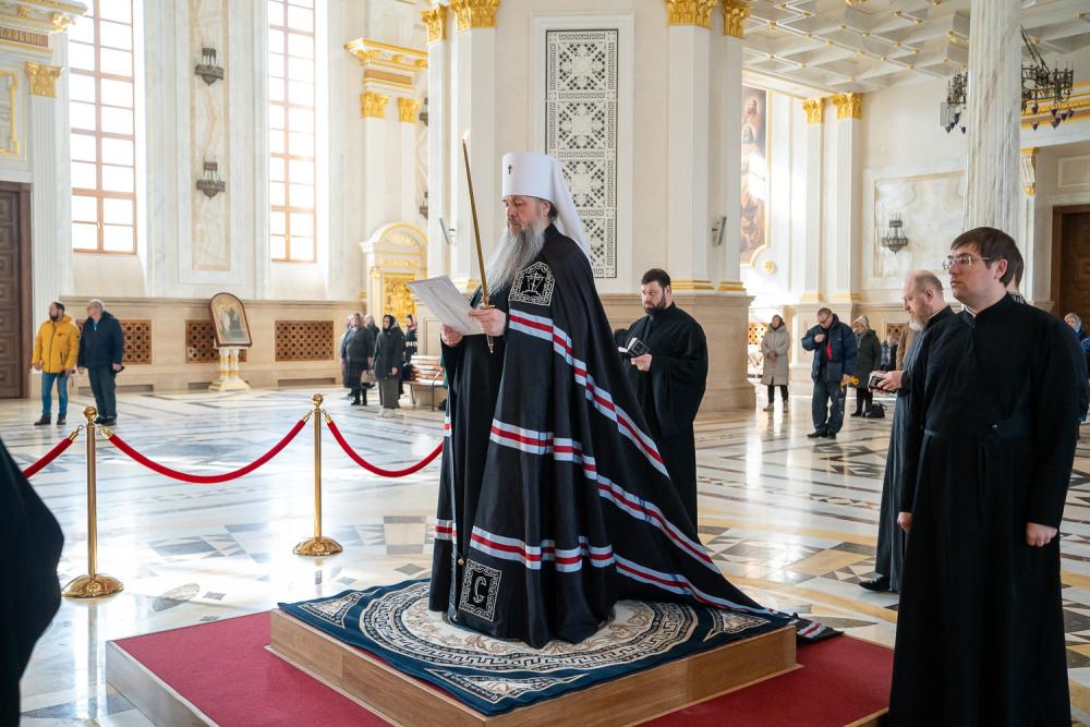 В понедельник первой седмицы Великого поста митрополит Серафим молился за великопостным богослужением в Спасском кафедральном соборе