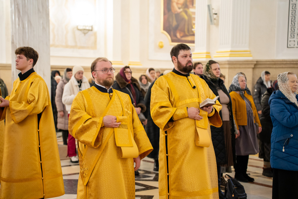 Его Высокопреосвященству сослужили ключарь Спасского кафедрального собора иерей Николай Батищев, протоиерей Владимир Ольхов, иереи Евгений Климчев, Георгий Насонов, Олег Тюлюкин и Сергий Шурыгин, диаконы Богдан Яворский, Кирилл Вейго, Георгий Дементьев и Илия Харитонов.