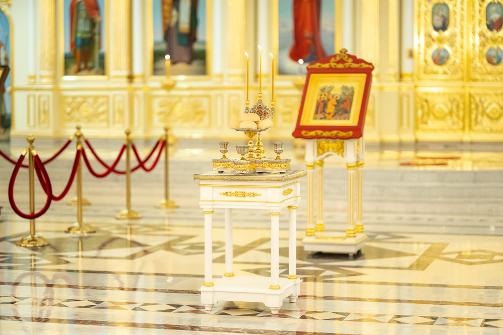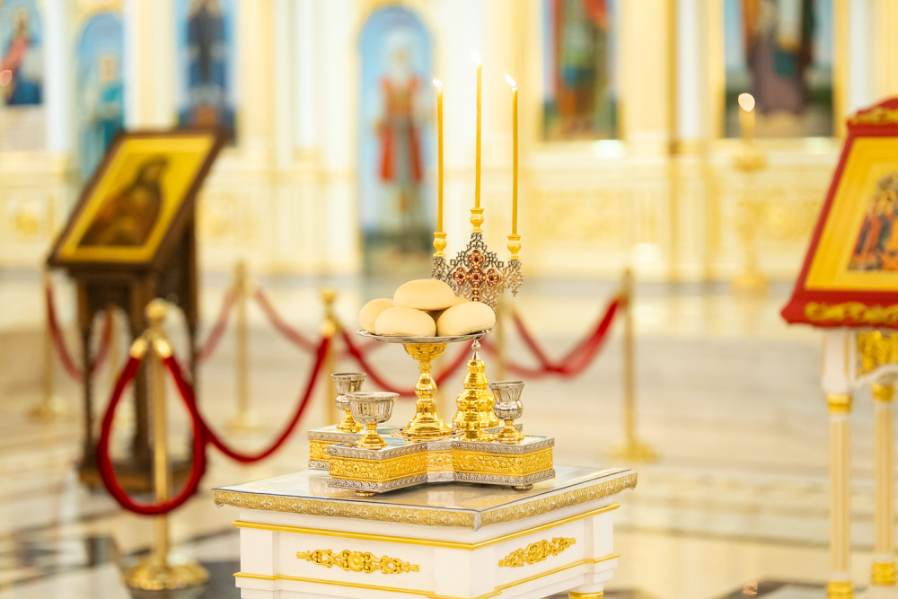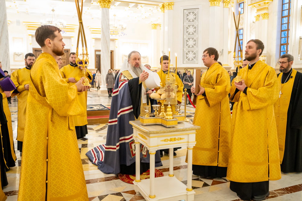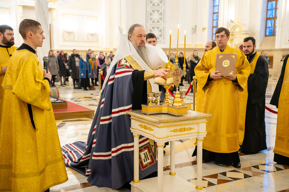 За вечерним богослужением глава Пензенской митрополии совершил литию с освящением хлебов, пшеницы, вина и елея.