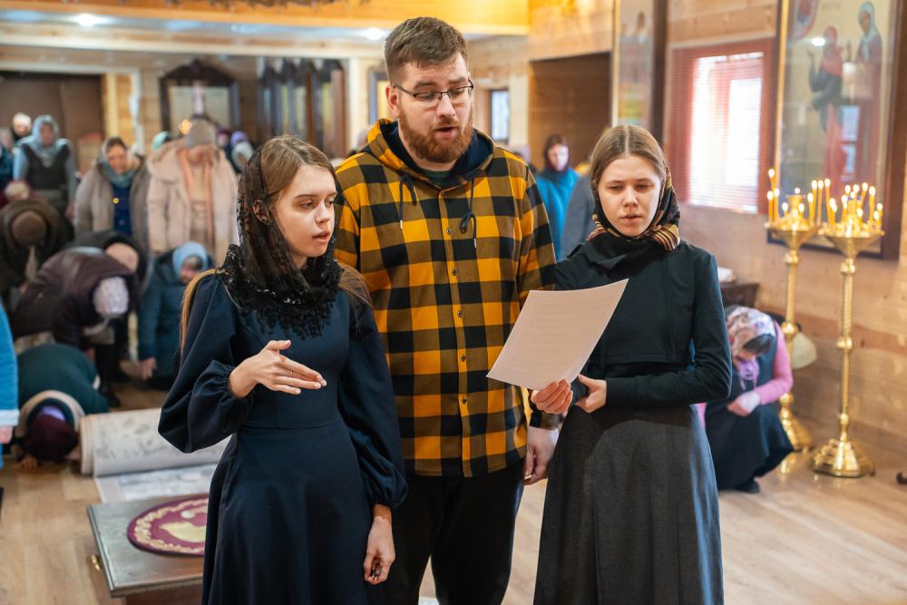 Богослужебные песнопения исполнили хор Спасского кафедрального собора под управлением Веры Кочергиной и хор храма в честь великомученика Георгия Победоносца р/ц Бессоновка под управлением регента Татьяны Жуковой.