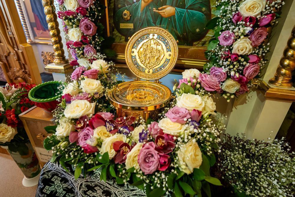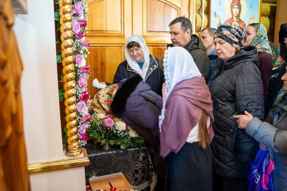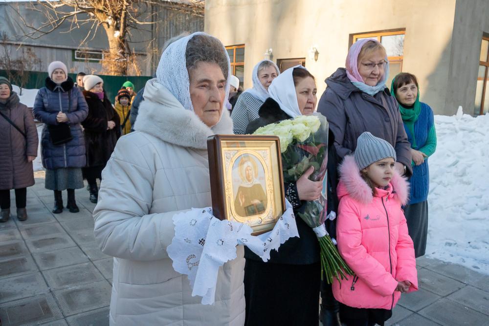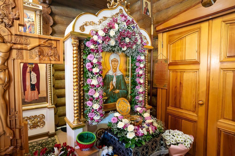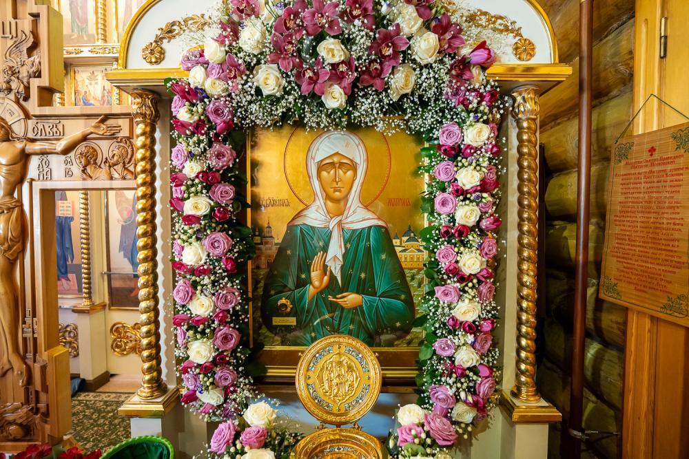 По отпусте литургии было совершено славление перед иконой святой блаженной Матроны Московской и провозглашено многолетие.