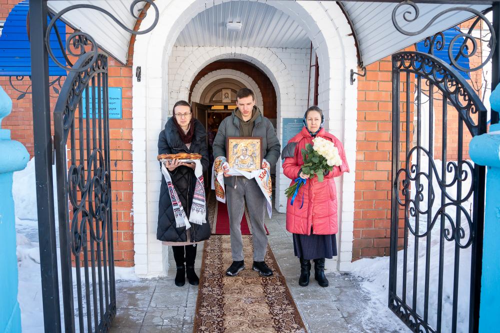 Затем Высокопреосвященный владыка Серафим преподал верующим крест для целования и на память о совместной молитве преподнес участникам богослужения небольшие иконки Спасителя в терновом венце, привезенные Его Высокопреосвященством из паломнической поездки на Святую Землю.