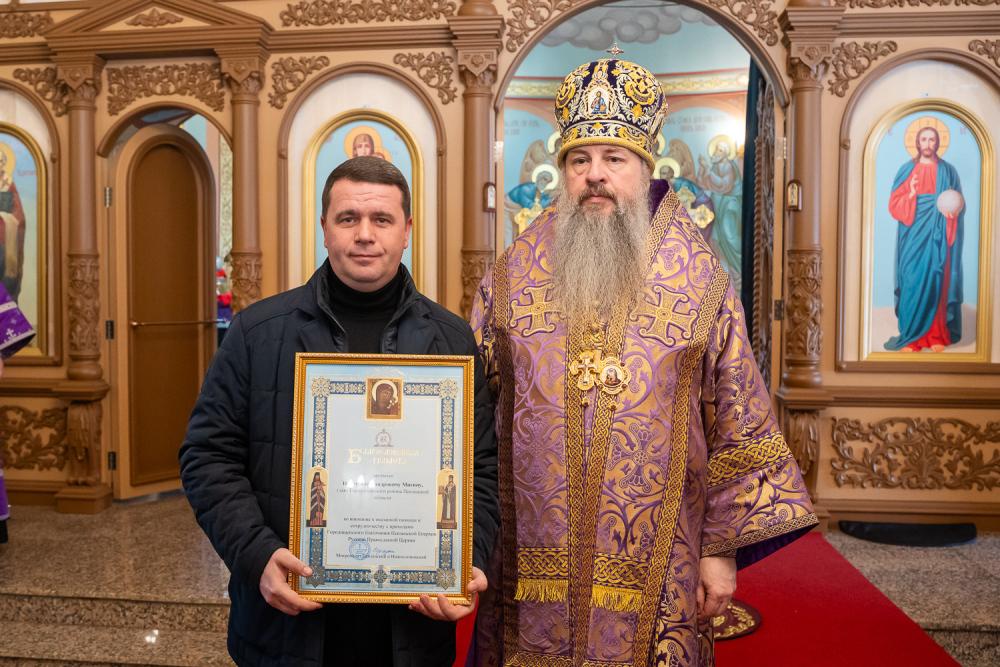 После этого во внимание к оказанной помощи и сотрудничеству с приходами Городищенского благочиния Пензенской епархии архиерейской благословенной грамотой был награжден глава Городищенского района Павел Александрович Мигин.