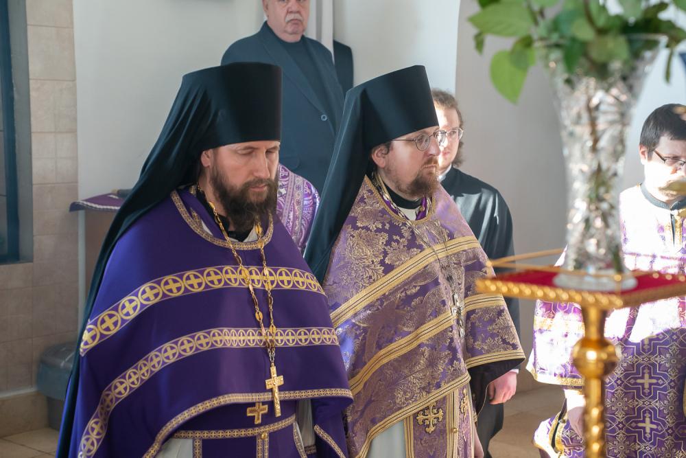 Его Высокопреосвященству сослужили наместник Спасо-Преображенского монастыря игумен Августин (Зайцев), архимандрит Пантелеимон (Бондаренко), иеромонах Антипа (Масленников), иерей Георгий Насонов, диаконы Богдан Яворский, Кирилл Вейго, Евгений Белохвостиков и иеродиакон Иоанникий (Комиссаров).