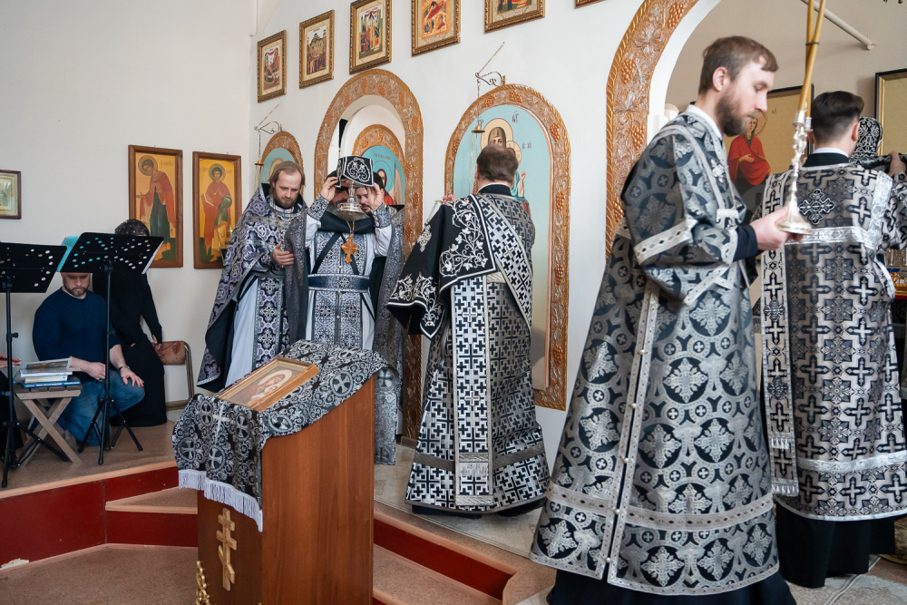 Митрополит Серафим совершил Литургию Преждеосвященных Даров в храме во имя святых Петра и Февронии Муромских