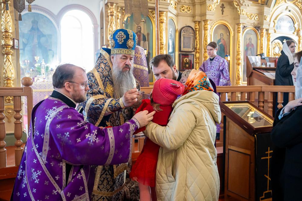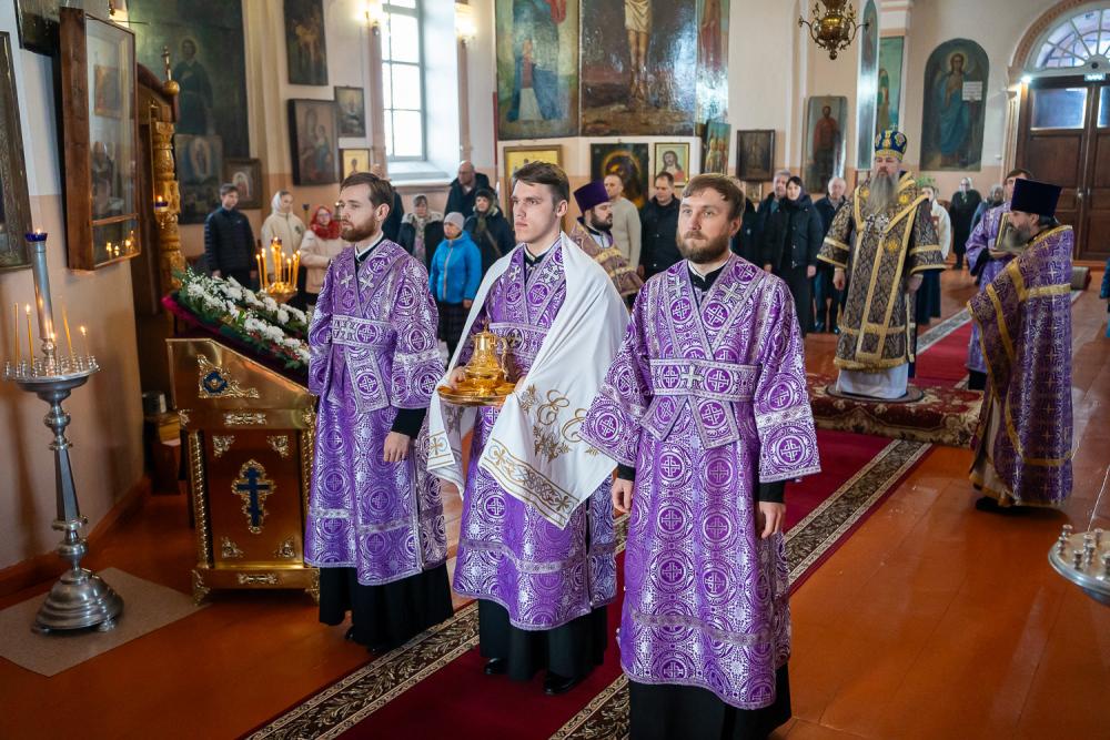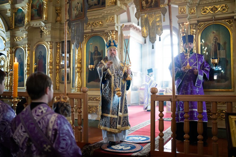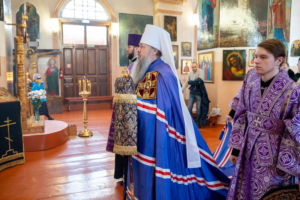 Завершая богослужение, митрополит Серафим поздравил собравшихся с Неделей Крестопоклонной: «Крест для нас — символ победы. В середине Великого поста Церковь выносит это святое Древо в центр храма, чтобы укрепить силы постящихся, чтобы ободрить их и помочь провести оставшуюся часть поста с таким же рвением и радением, как и прежде. А если этого радения еще не было, то видение Честного и Животворящего Креста призвано пробудить в нас ревность о Боге.