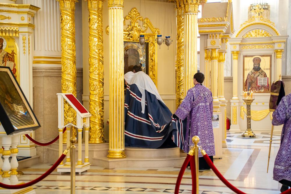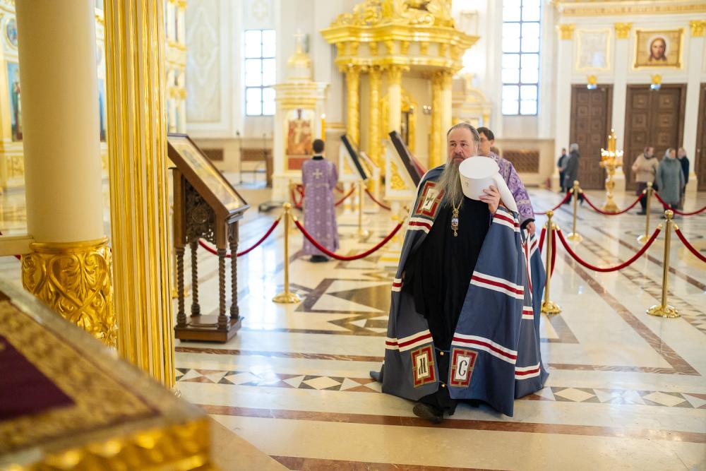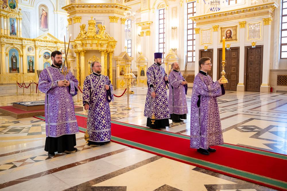 Его Высокопреосвященству сослужили ключарь Спасского кафедрального собора иерей Николай Батищев, протоиерей Владимир Ольхов, иереи Евгений Климчев, Георгий Насонов, диаконы Богдан Яворский, Кирилл Вейго, Георгий Дементьев и Илья Харитонов.