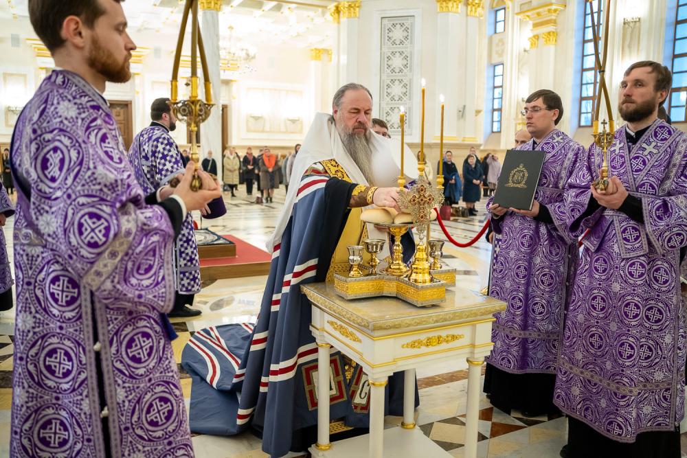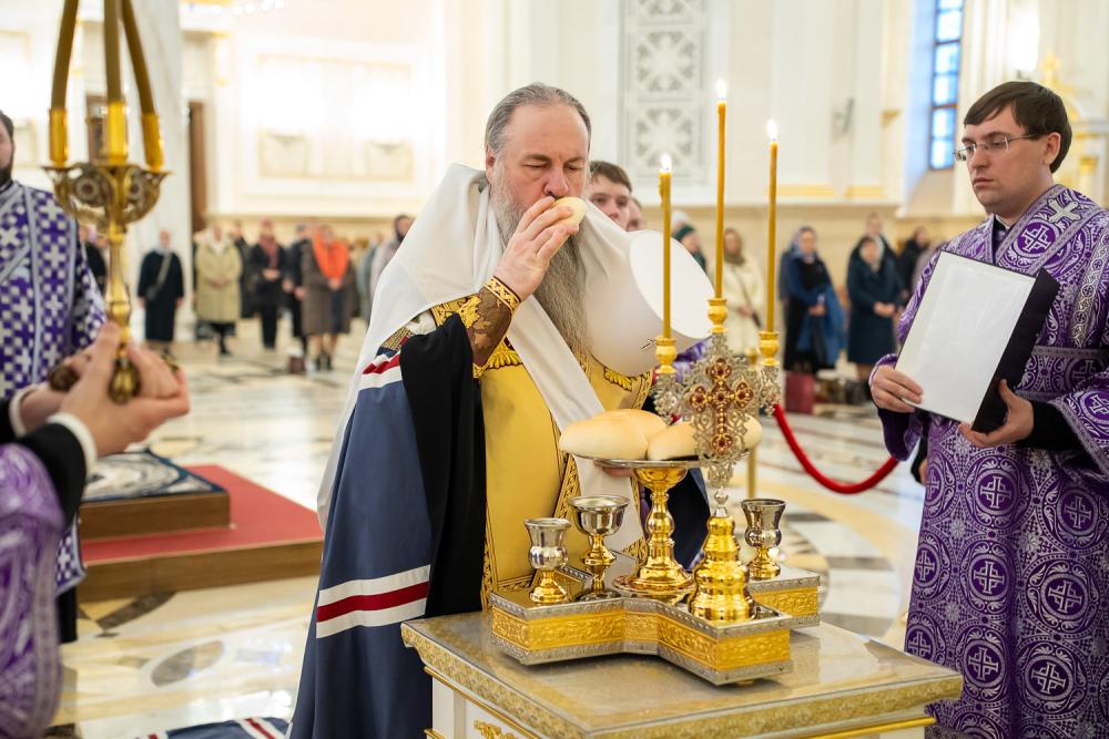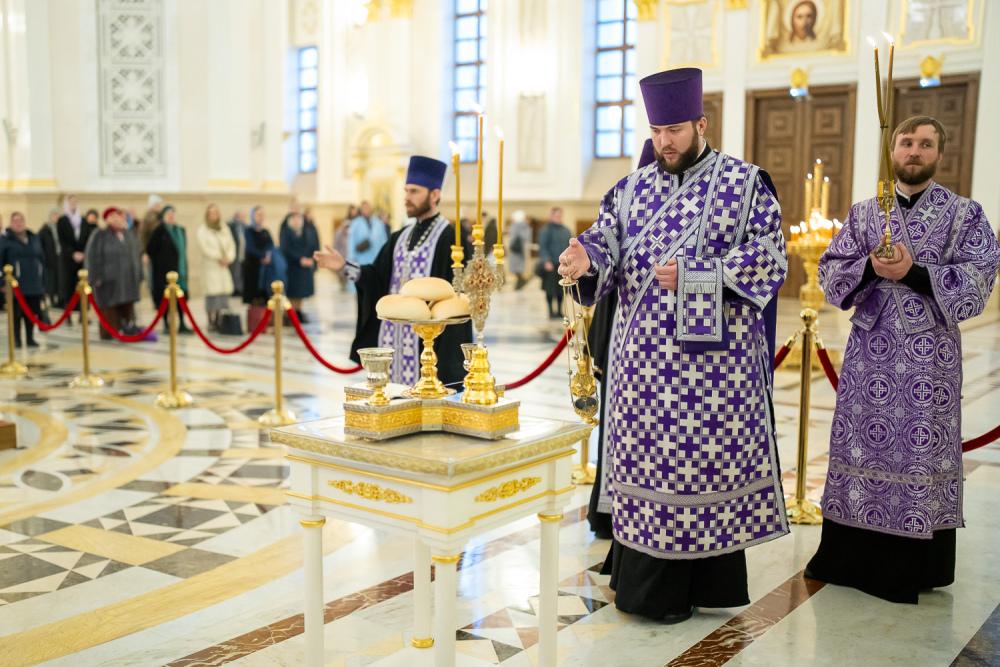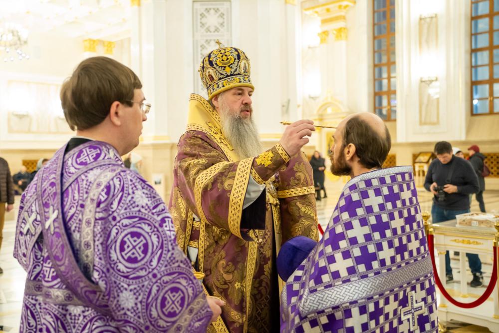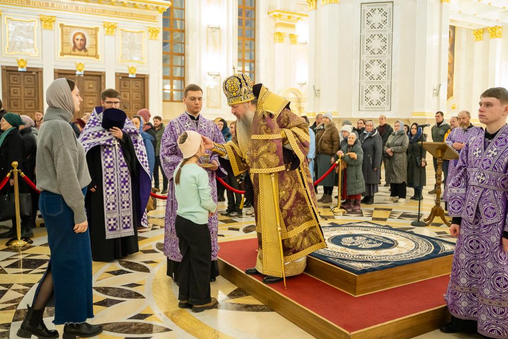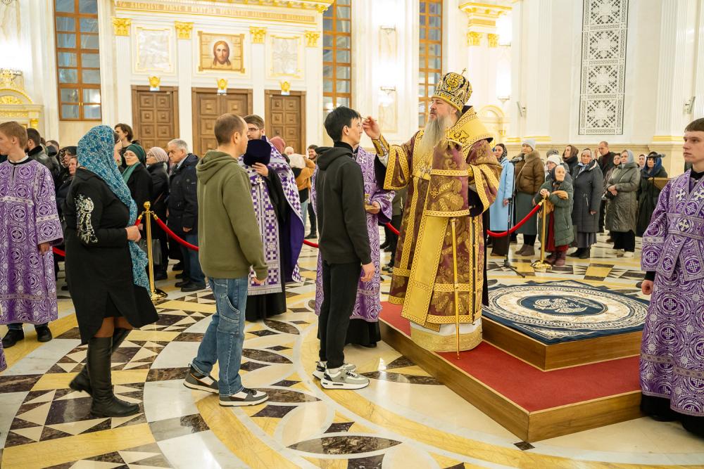 За вечерним богослужением глава Пензенской митрополии совершил литию с освящением хлебов, пшеницы, вина и елея. Во время утрени, по прочтении Святого Евангелия, было совершено помазание освященным елеем верующих, собравшихся в храме накануне воскресного дня.
