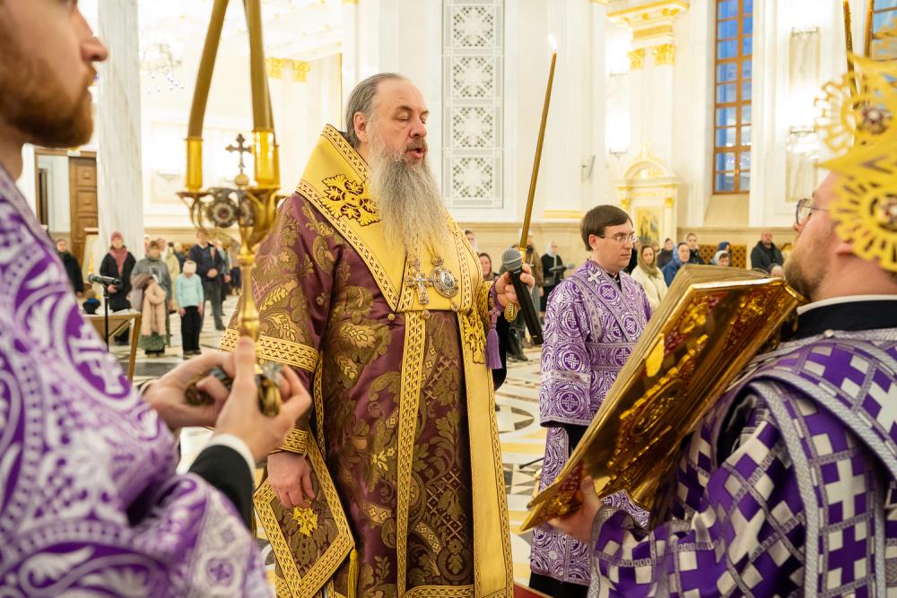 В канун Недели 4-й Великого поста митрополит Серафим совершил всенощное бдение в Спасском кафедральном соборе
