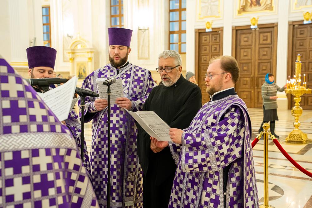 Богослужебные песнопения исполнил хор Спасского кафедрального собора под управлением регента Ольги Горшеневой.