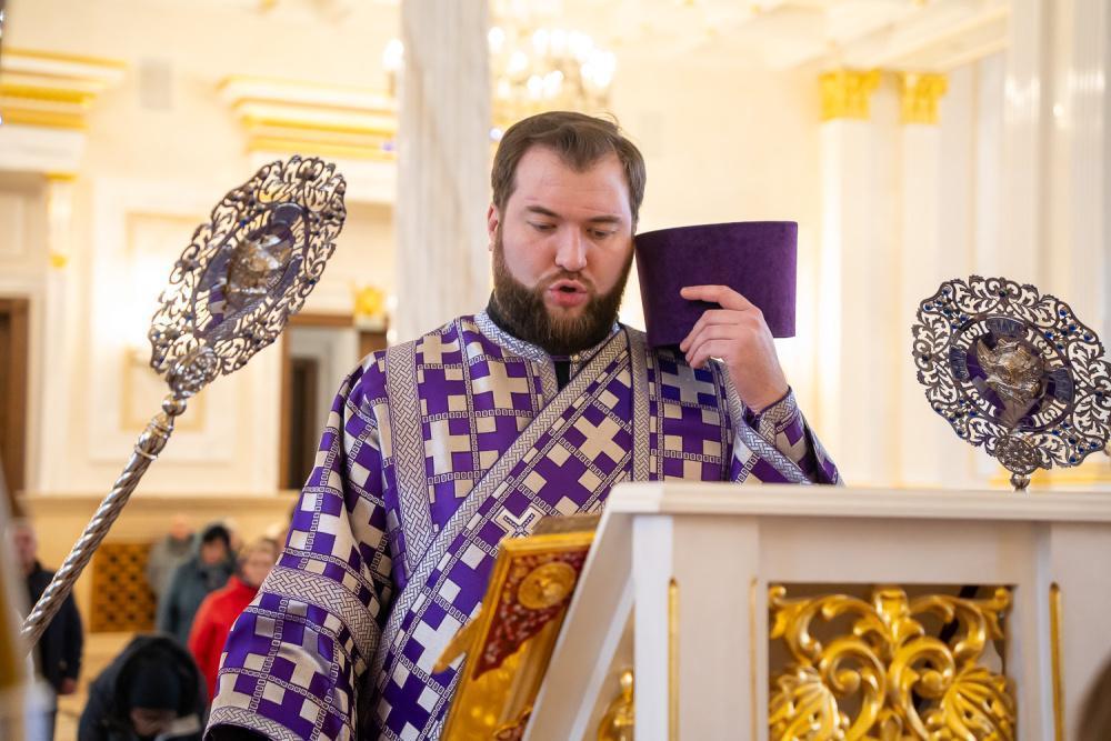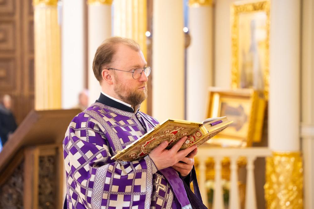 Его Высокопреосвященству сослужили ключарь Спасского кафедрального собора иерей Николай Батищев, протоиерей Владимир Ольхов, иереи Евгений Климчев и Георгий Насонов, диаконы Богдан Яворский, Кирилл Вейго, Георгий Дементьев и Илья Харитонов.
