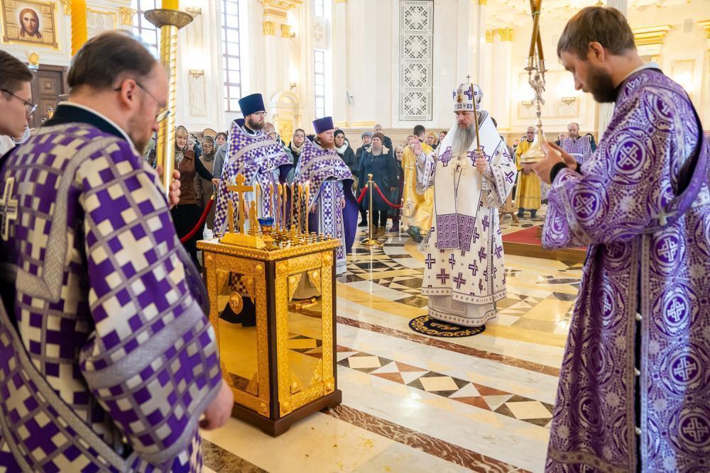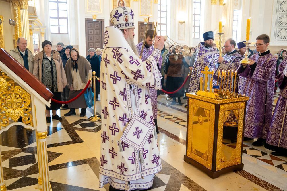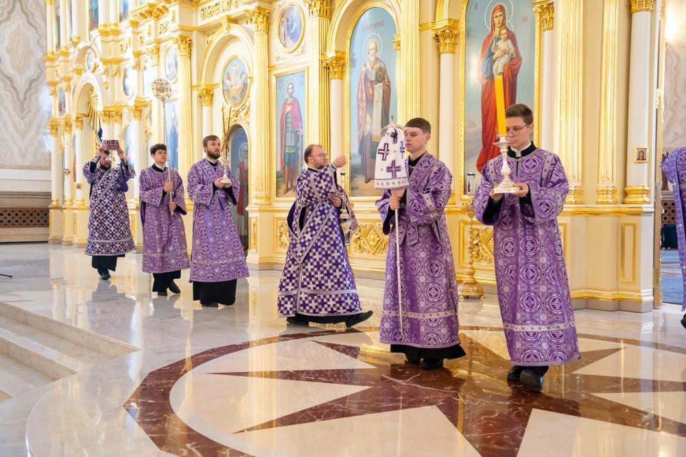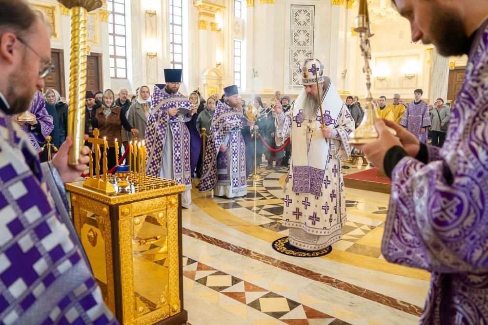 21 марта 2026 года, в субботу седмицы 4-й Великого поста, Крестопоклонной, когда совершается уставное поминовение усопших, митрополит Пензенский и Нижнеломовский Серафим совершил Божественную литургию в Спасском кафедральном соборе города Пензы.