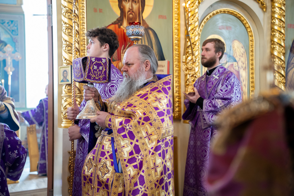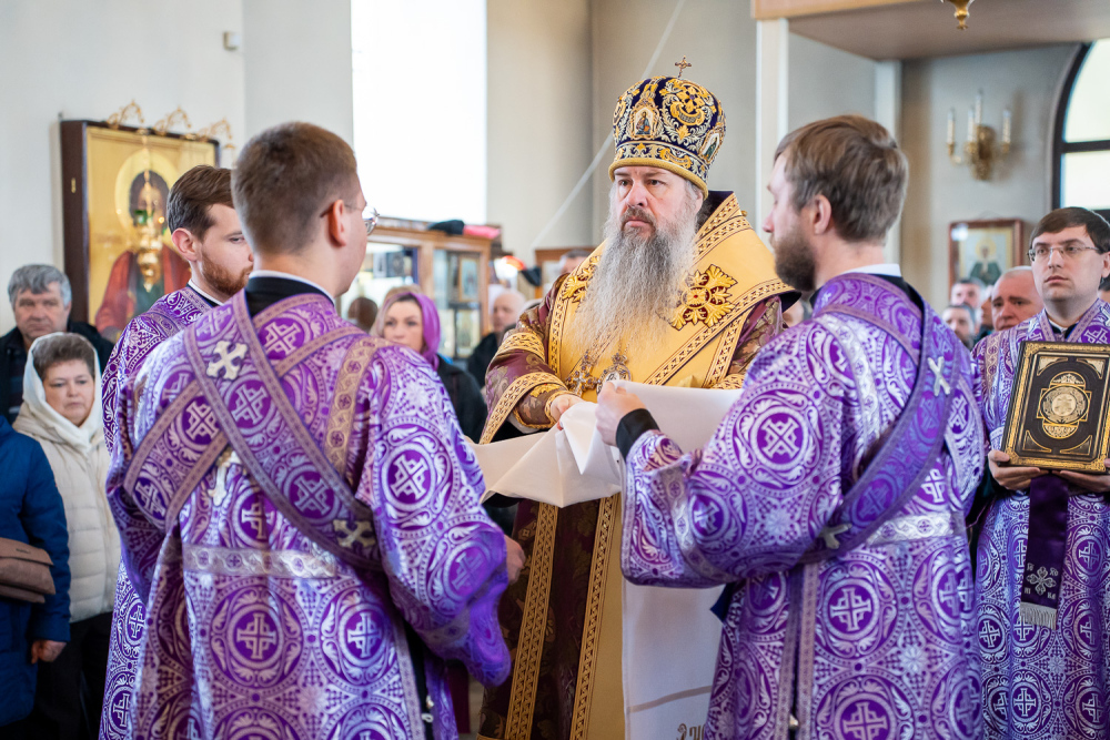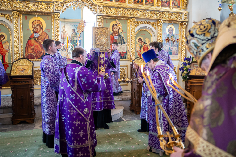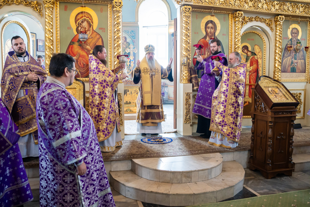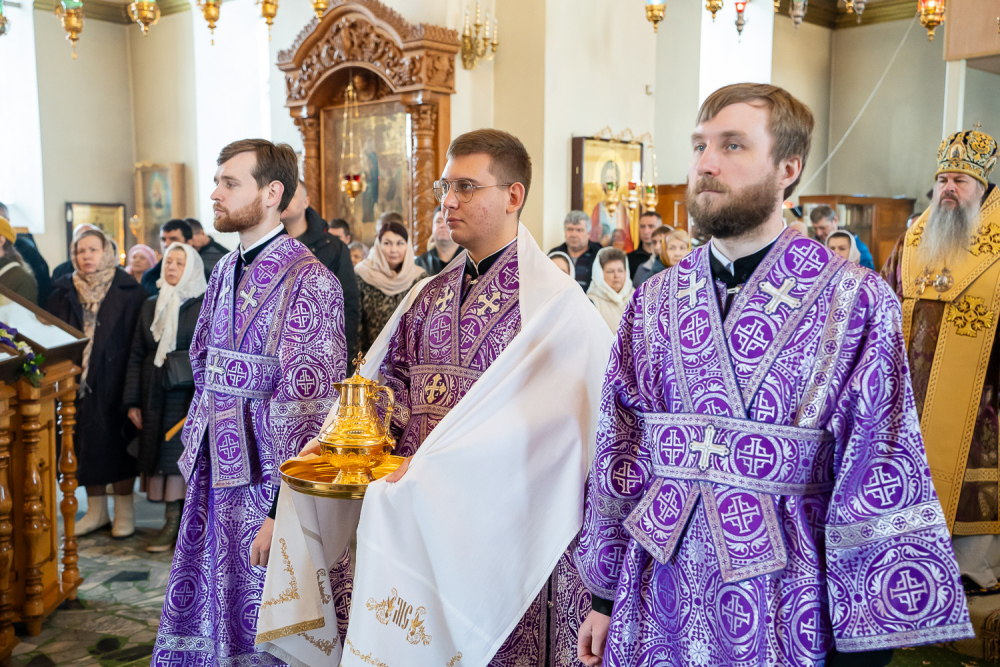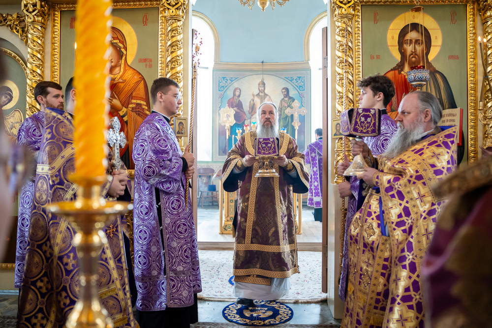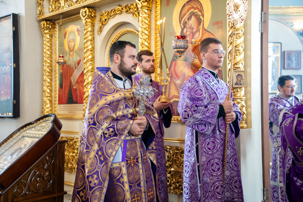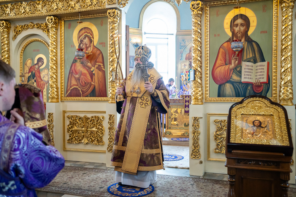 Его Высокопреосвященству сослужили настоятель Сергиевского храма игумен Христофор (Ширяев), иеромонах Иоанн (Клыченков), иерей Георгий Насонов, диакон Богдан Яворский, протодиакон Константин Кузьминых и диакон Кирилл Вейго.