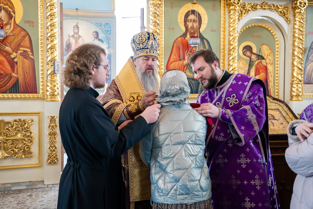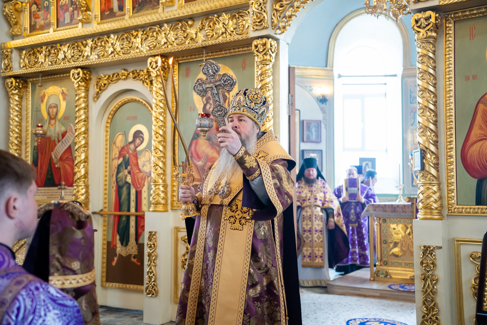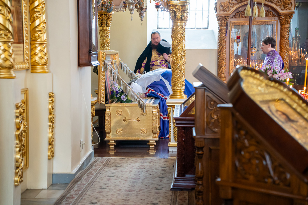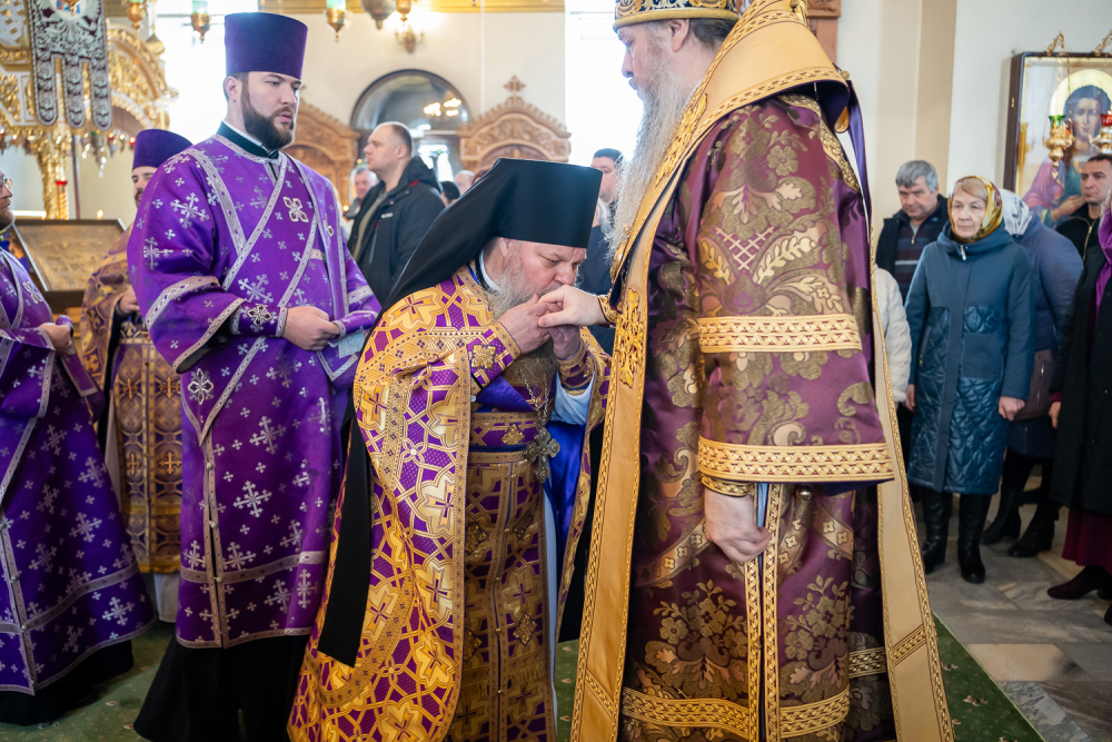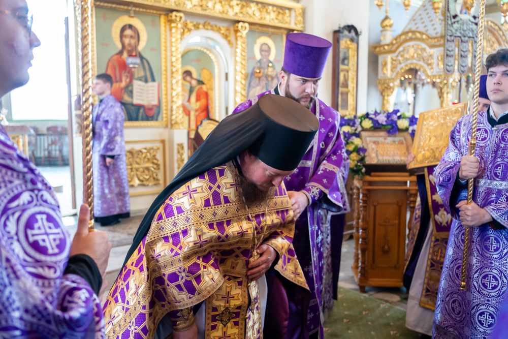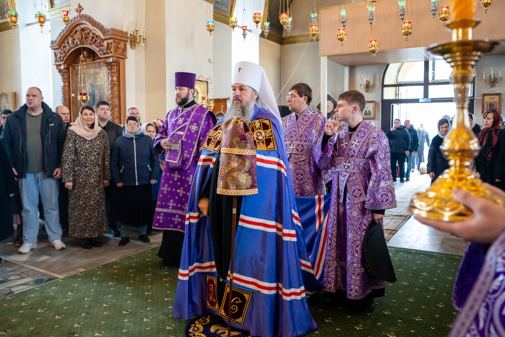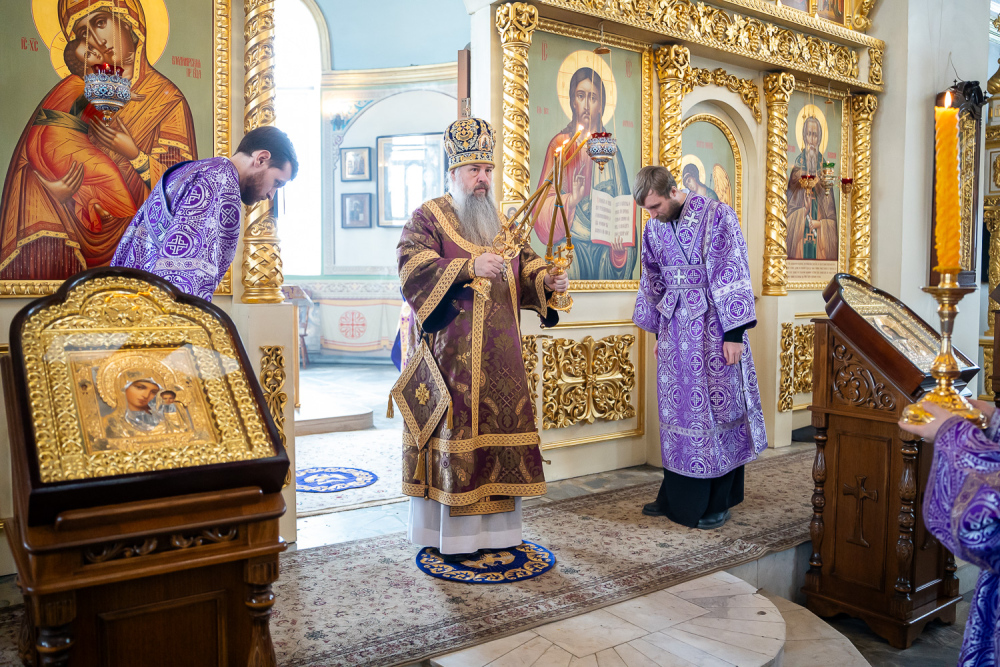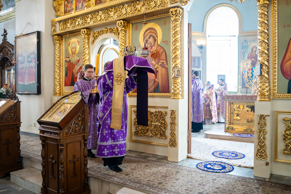 Его Высокопреосвященству сослужили настоятель Сергиевского храма игумен Христофор (Ширяев), иеромонах Иоанн (Клыченков), иерей Георгий Насонов, диакон Богдан Яворский, протодиакон Константин Кузьминых и диакон Кирилл Вейго.