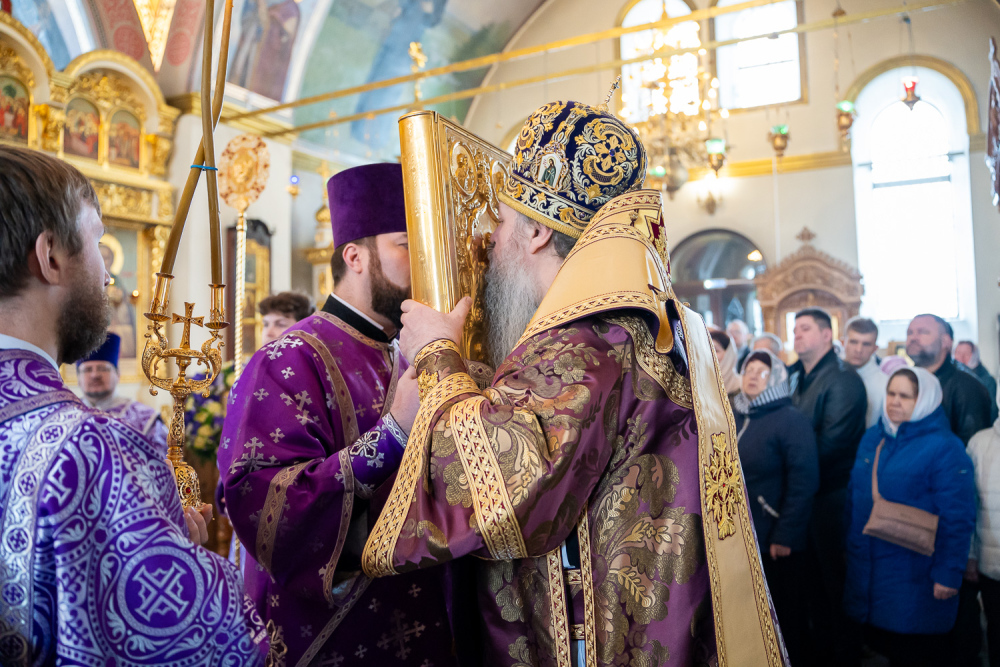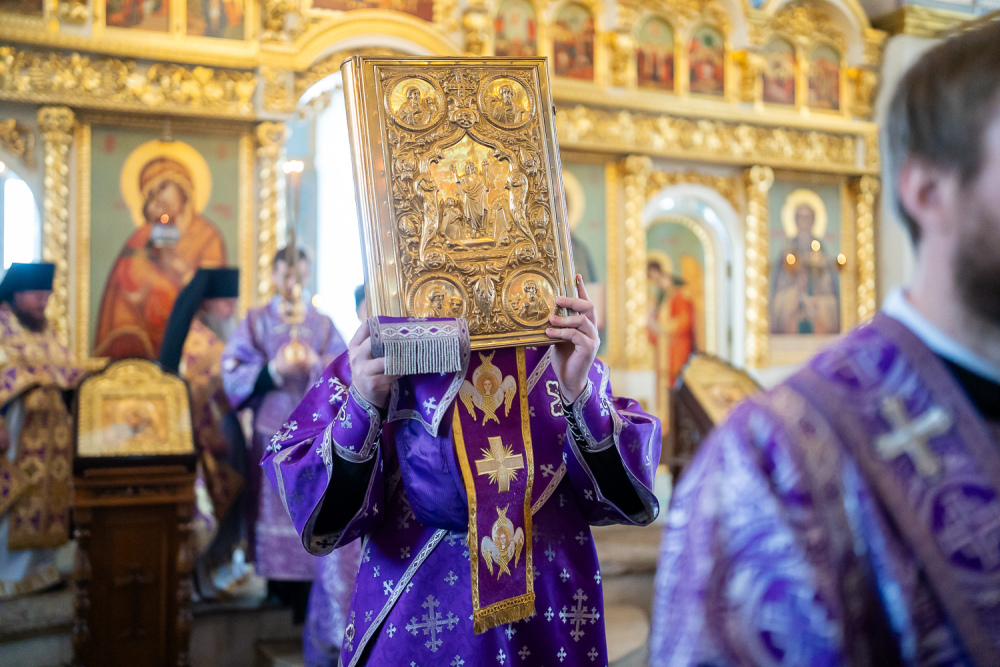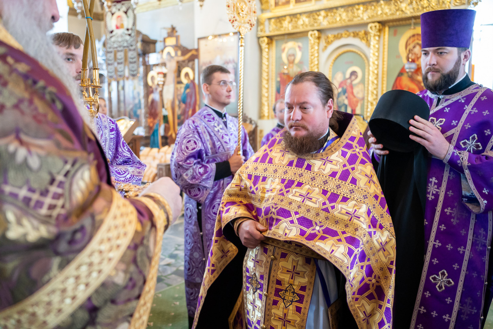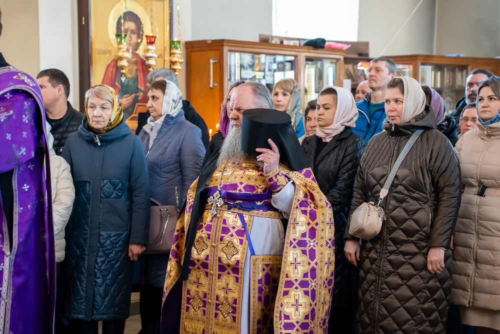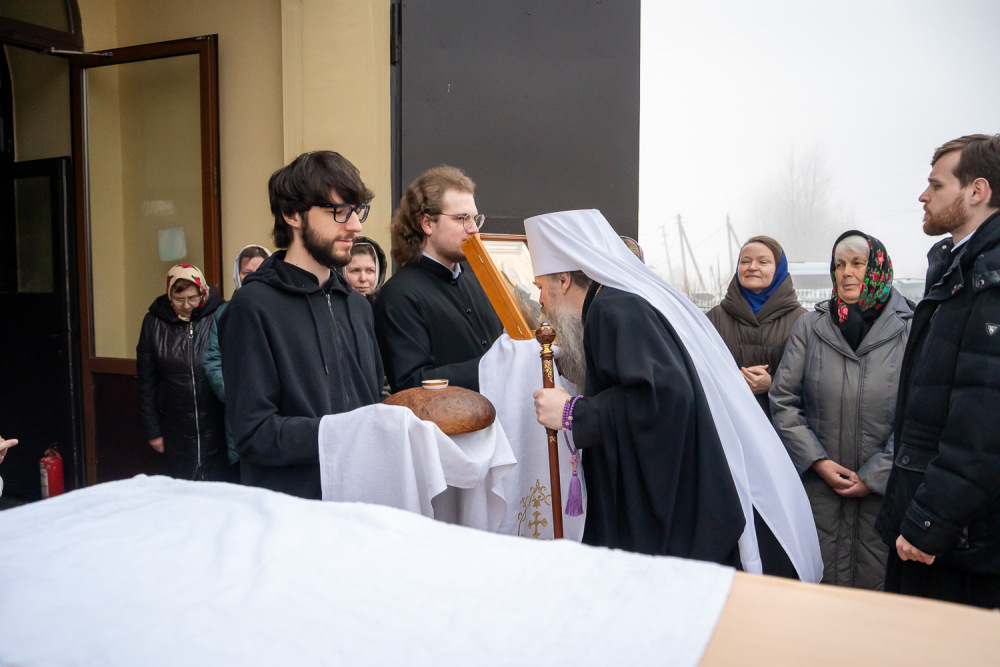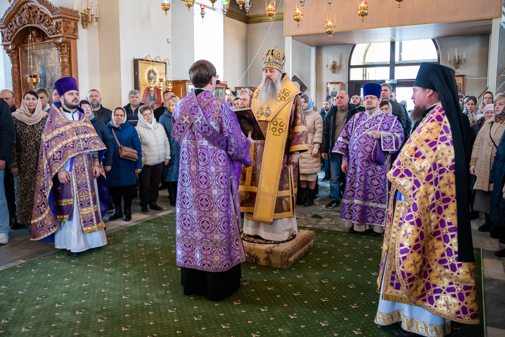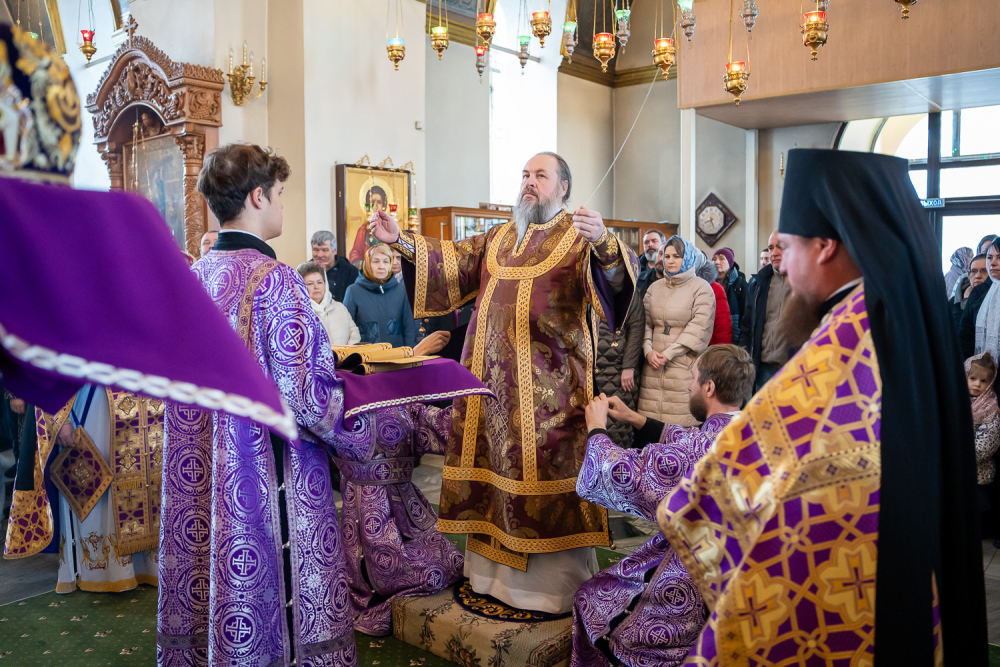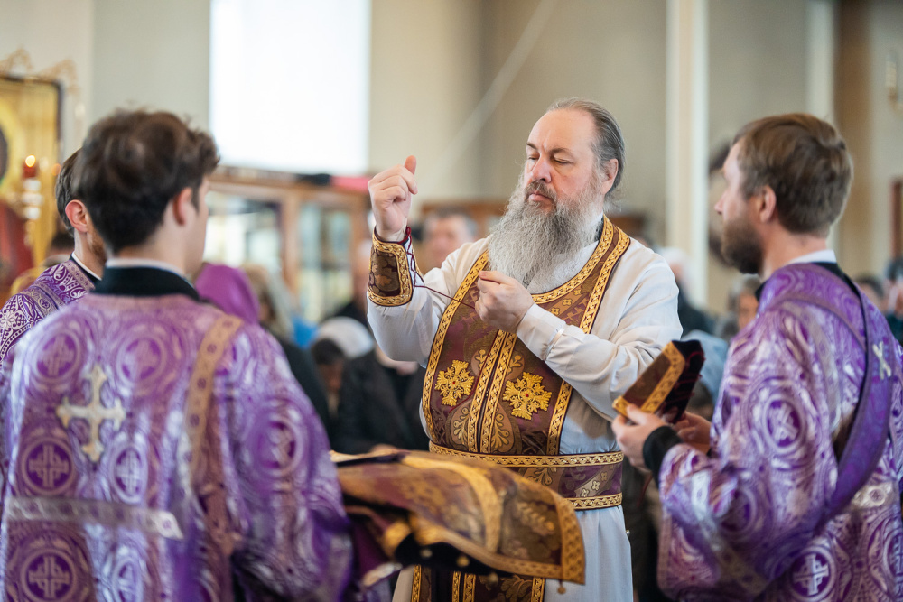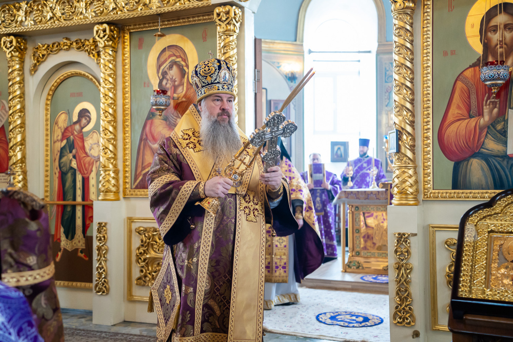Его Высокопреосвященству сослужили настоятель Сергиевского храма игумен Христофор (Ширяев), иеромонах Иоанн (Клыченков), иерей Георгий Насонов, диакон Богдан Яворский, протодиакон Константин Кузьминых и диакон Кирилл Вейго.