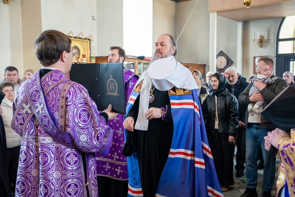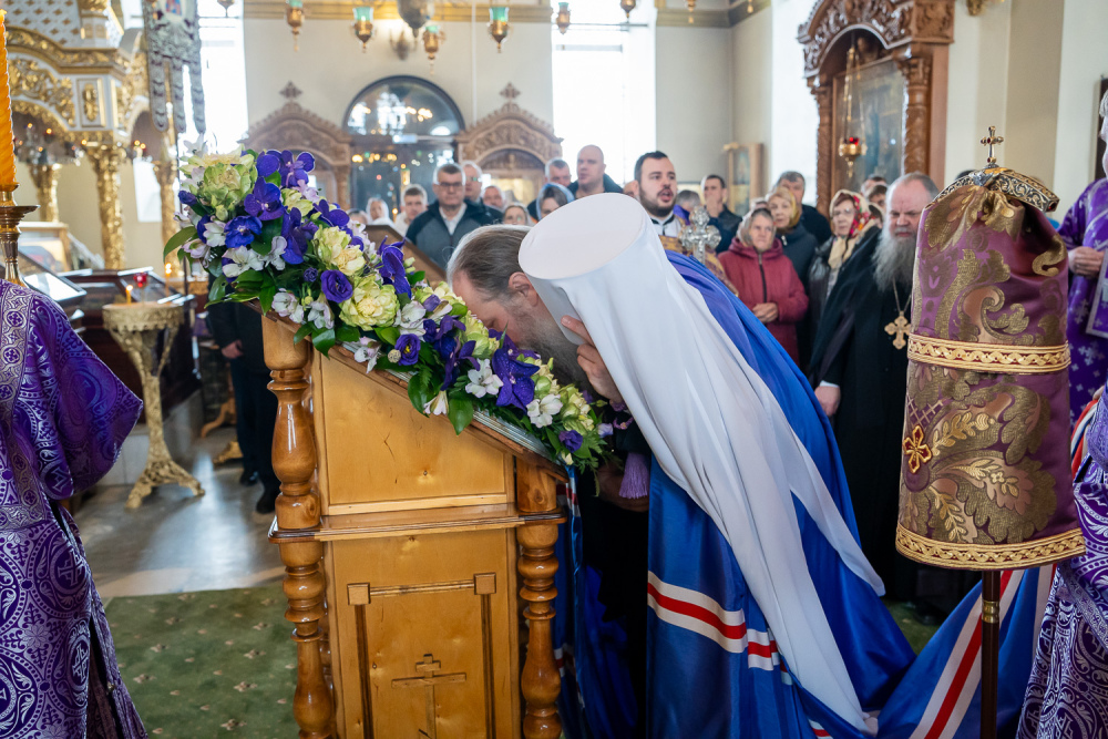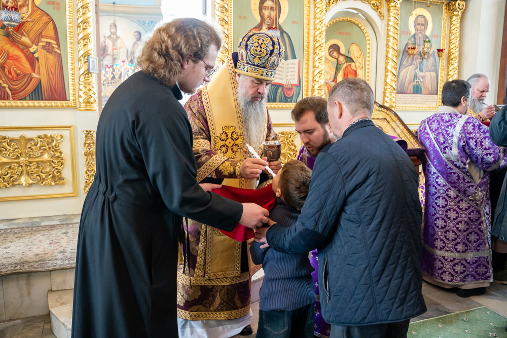 В завершение богослужения митрополит Серафим обратился к собравшимся: «Во имя Отца и Сына и Святаго Духа! Поздравляю всех вас с воскресным днем и с днем памяти святых 40 севастийских мучеников. Сегодня мы слышали Евангельское повествование о том, как к Господу обратился человек, у которого сын страдал от нечистого духа. Это страдание приносило горе всему семейству: и самому этому ребенку, который был совершенно несчастен, потому что тяжело болел; и родителям, которые переживали за него, видя, как всякое его падение и потеря сознания могли в конце концов привести к лишению жизни. С дерзновением этот человек обратился к Спасителю с просьбой, чтобы Он исцелил его сына. Господь же сказал ему: «Если сколько-нибудь можешь веровать, всё возможно верующему» (Мк. 9:23 ). И человек ответил: «Верую, Господи, помоги моему неверию!» (Мк. 9:24). Конечно, видя жизненные перипетии, видя страдания своего ребенка, человек может со временем терять веру. Поэтому он и ответил: «Верую, Господи, но помоги моему неверию», то есть: укрепи меня.