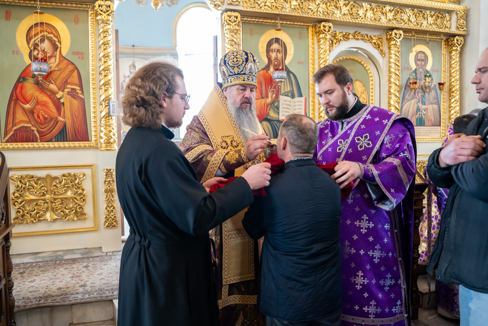 22 марта 2026 года, в Неделю 4-ю Великого поста, в день памяти преподобного Иоанна Лествичника и 40 мучеников, в Севастийском озере мучившихся, митрополит Пензенский и Нижнеломовский Серафим совершил Божественную литургию в храме в честь преподобного Сергия Радонежского в селе Соловцовка Пензенского района.