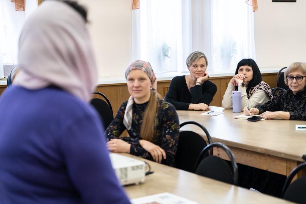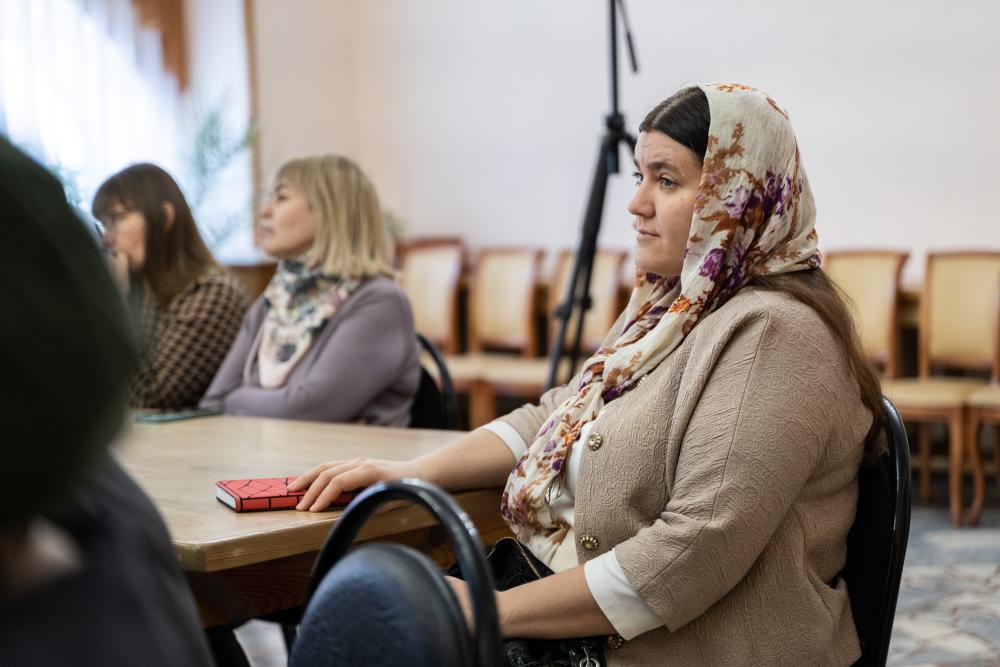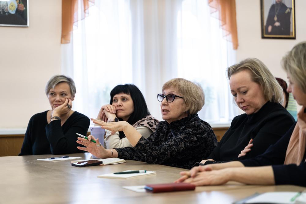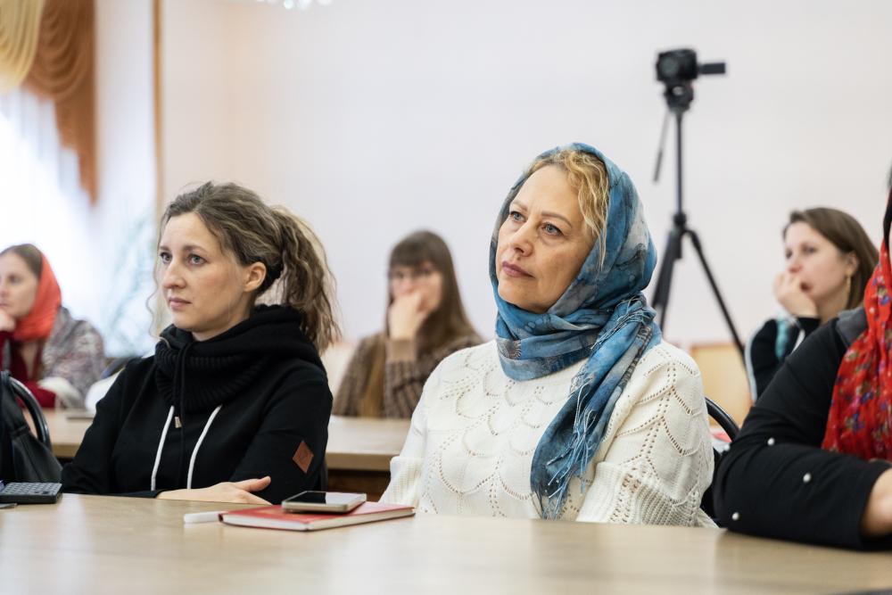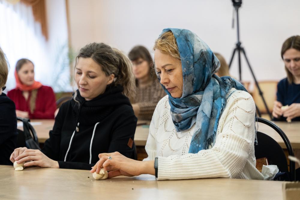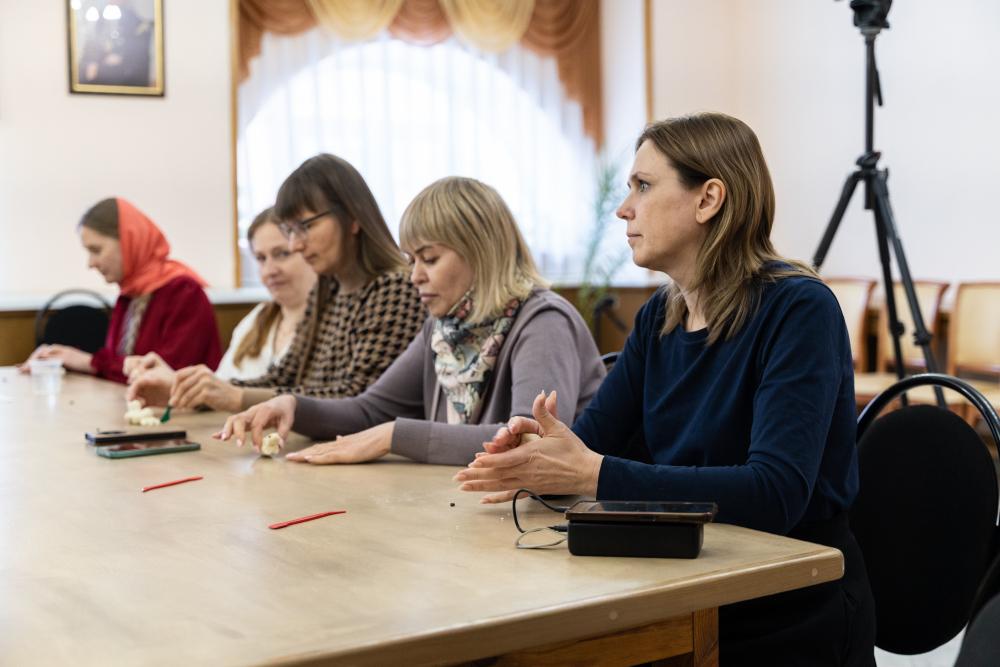 Ирина Борисовна Николаева, директор воскресной школы Успенского собора, и педагоги рассказали участникам встречи о работе учреждения, методическом сопровождении учебного процесса, продемонстрировали учебные аудитории и провели мастер-класс «Жаворонки из соленого теста».