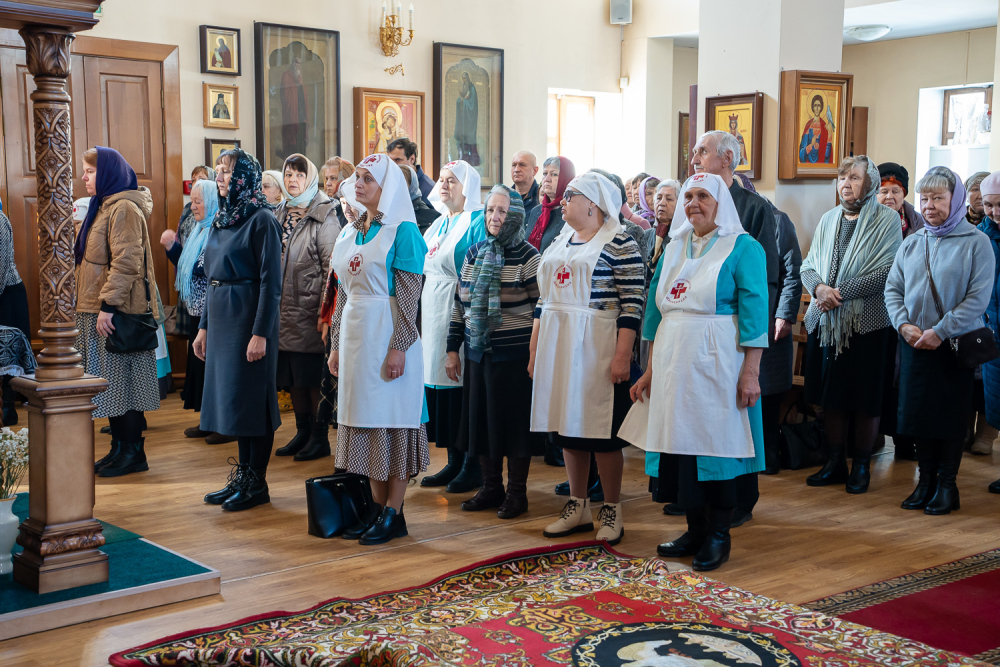 За богослужением молились сестры милосердия Свято-Елисаветинского духовно-попечительского центра при онкодиспансере.