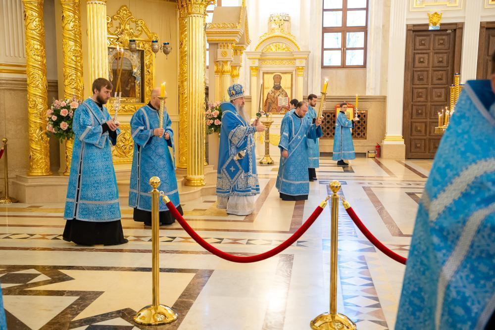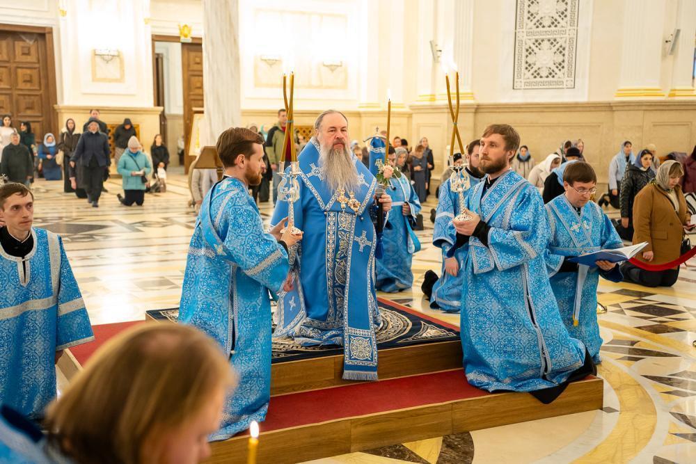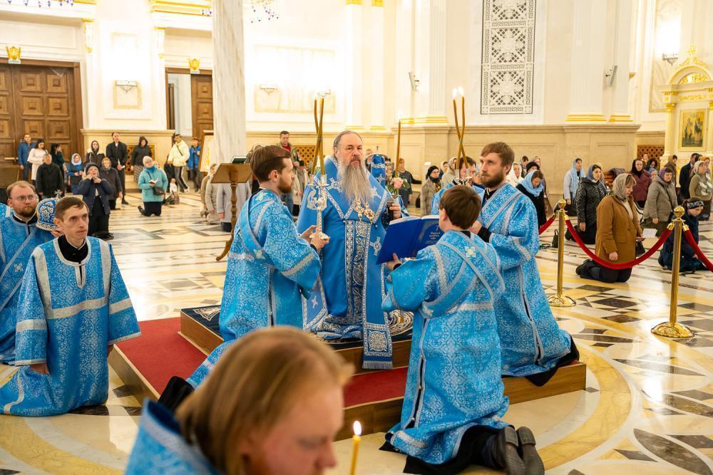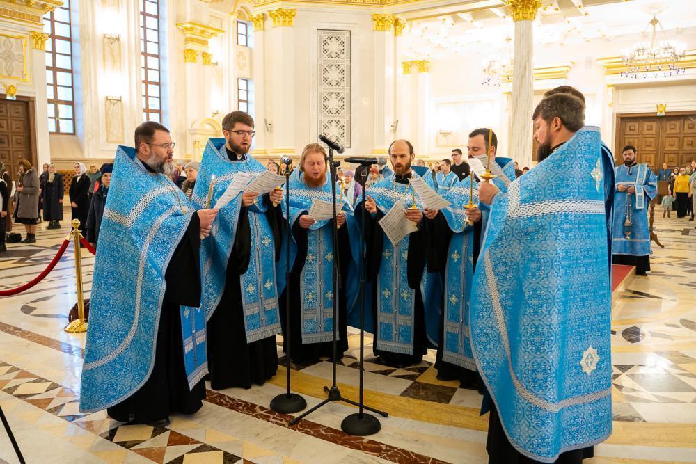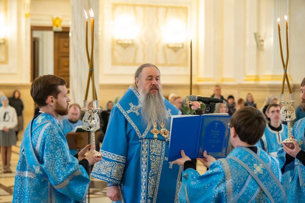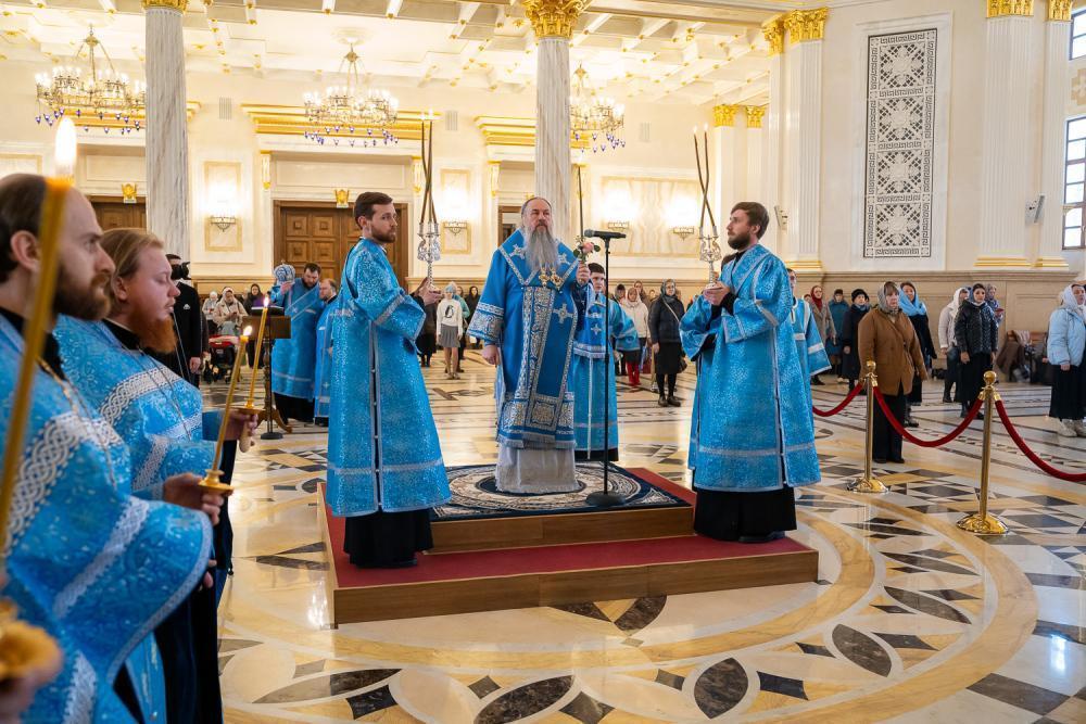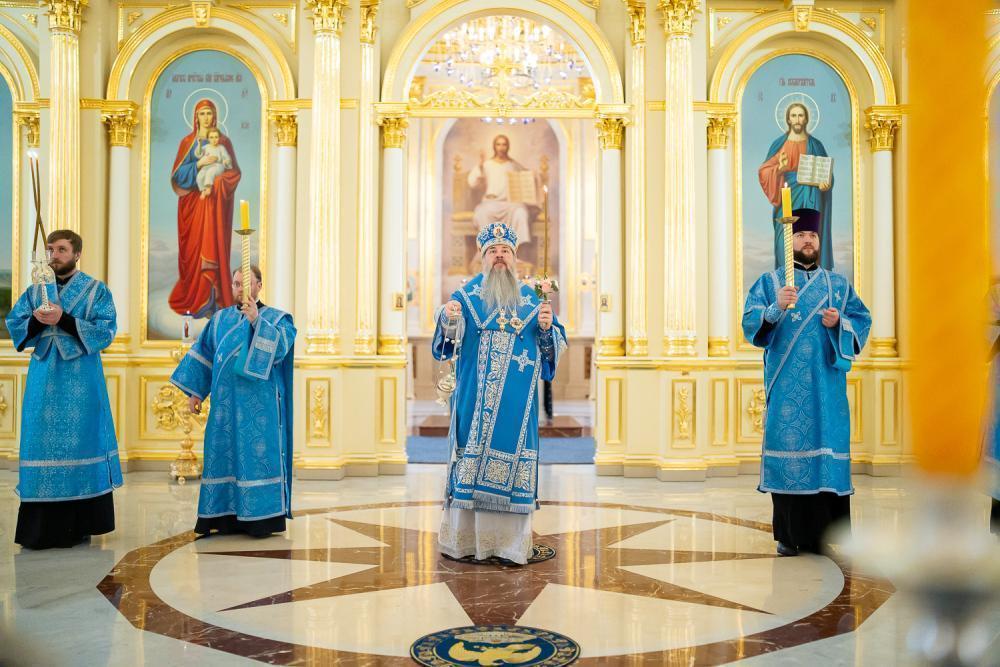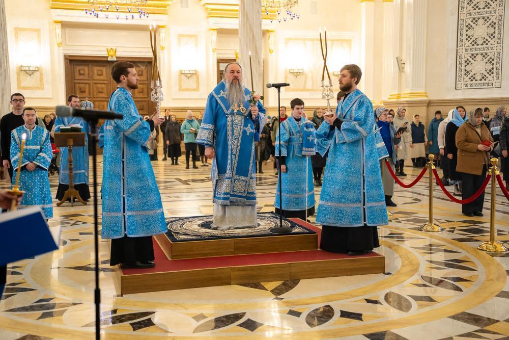 Митрополит Серафим совершил утреню с чтением Акафиста Пресвятой Богородице в Спасском кафедральном соборе