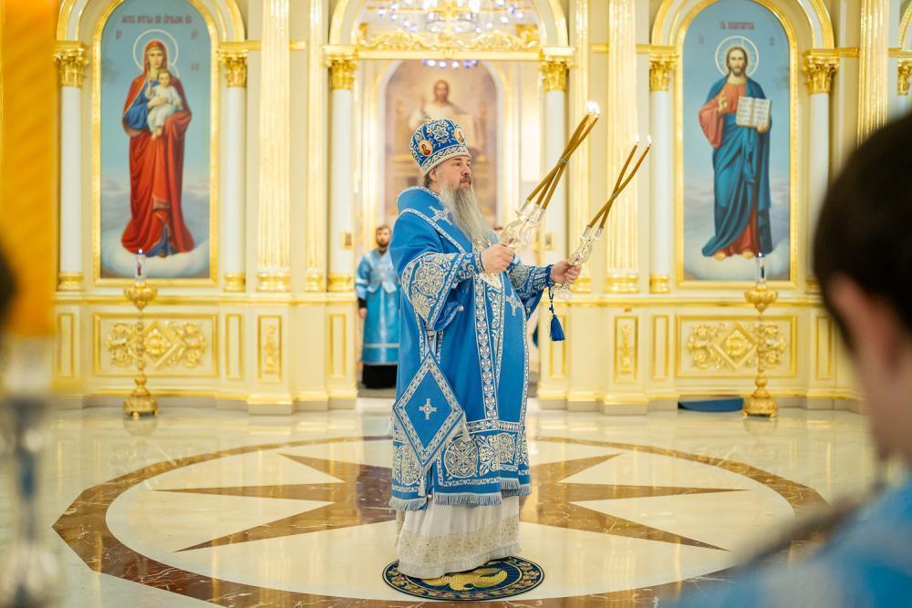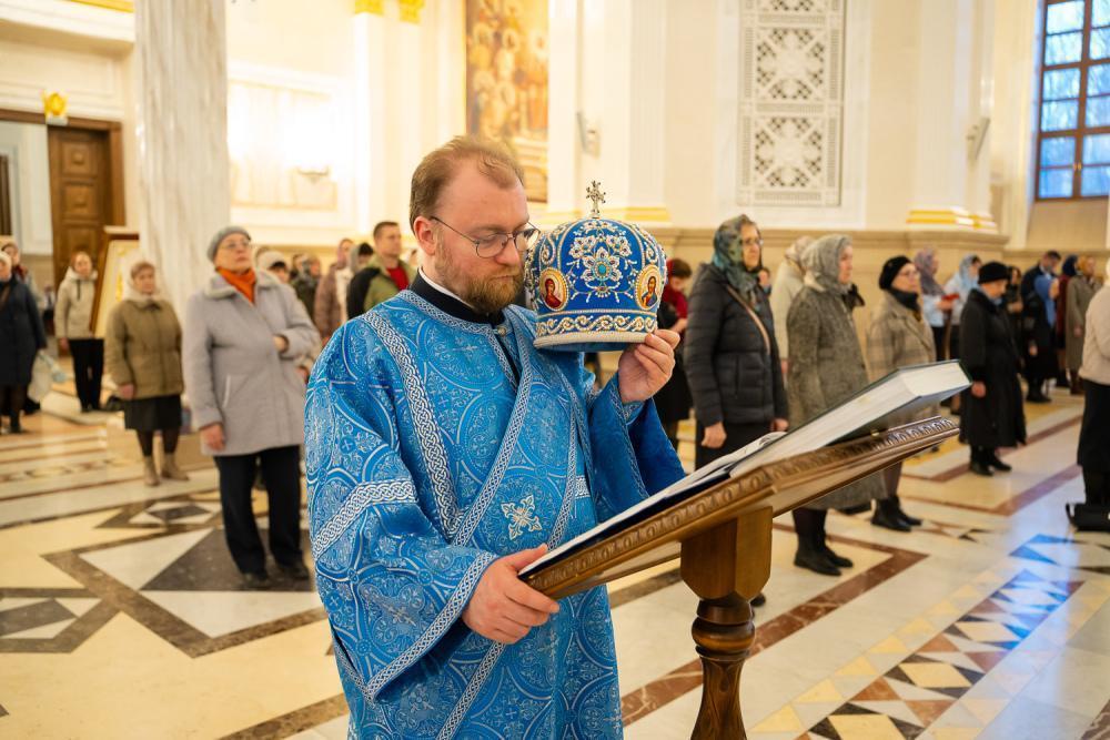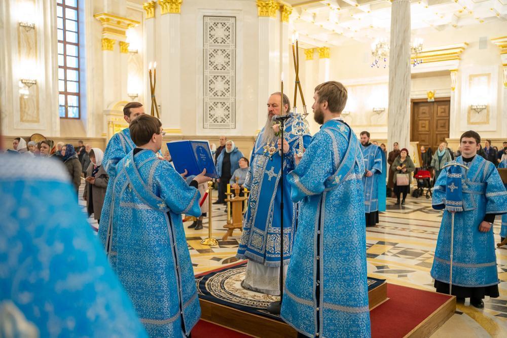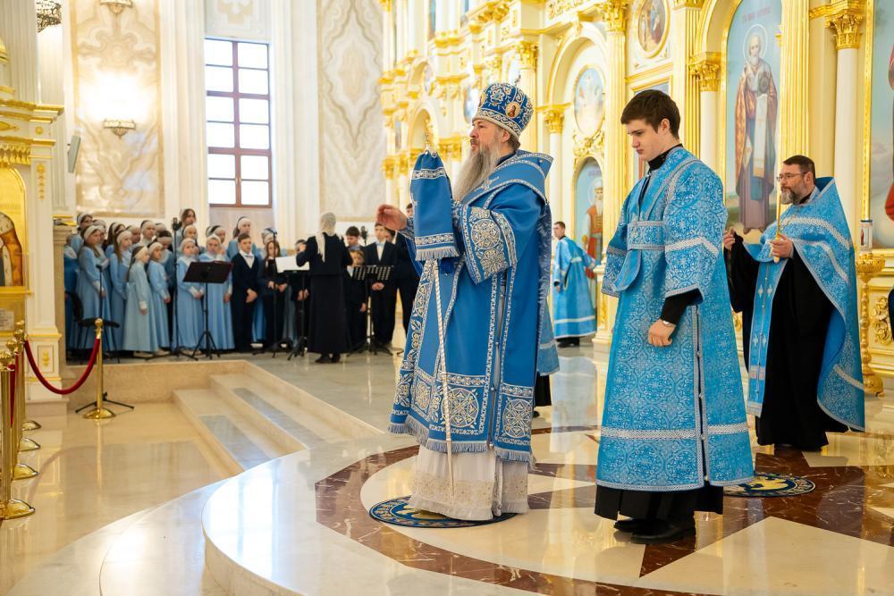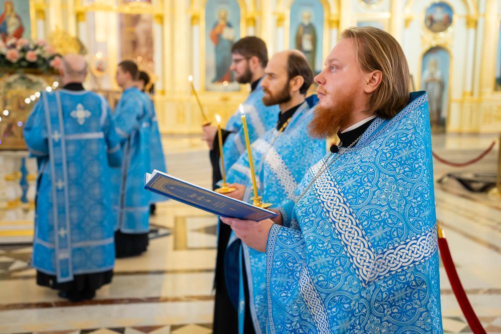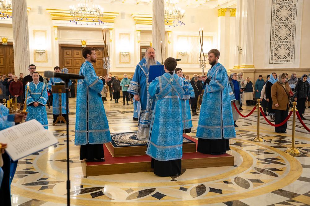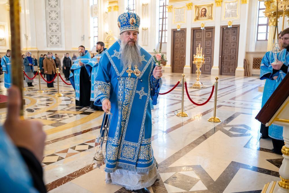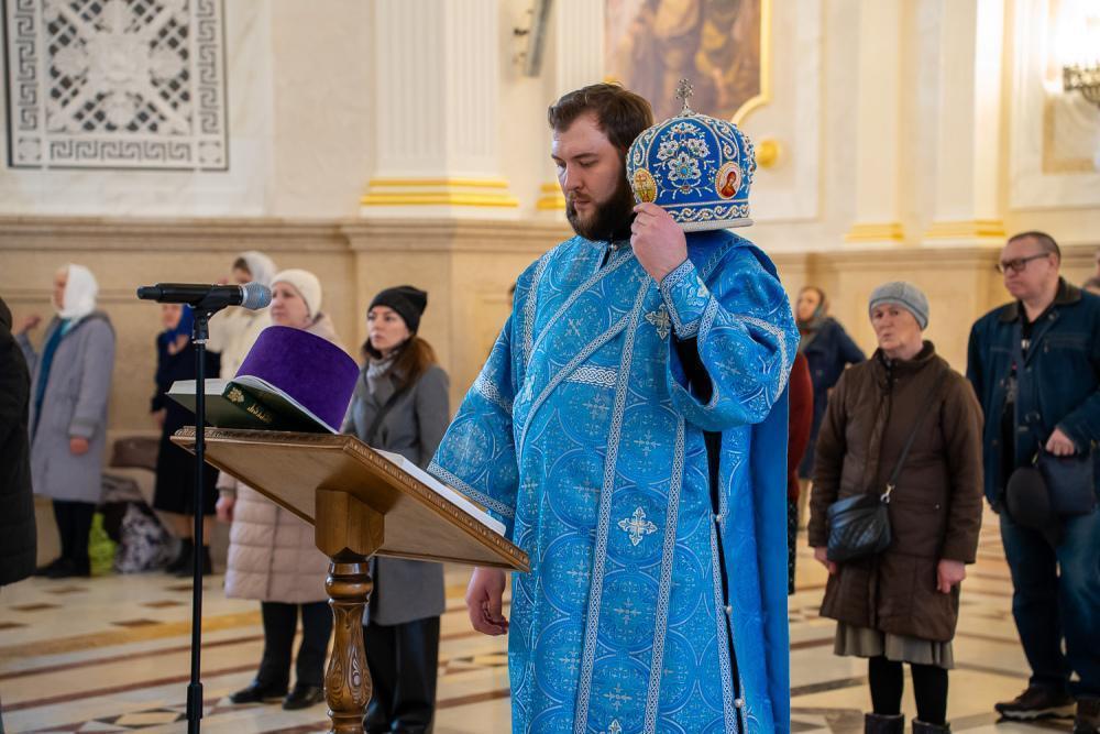 Митрополит Серафим совершил утреню с чтением Акафиста Пресвятой Богородице в Спасском кафедральном соборе