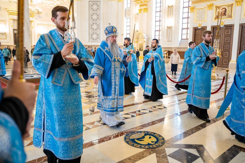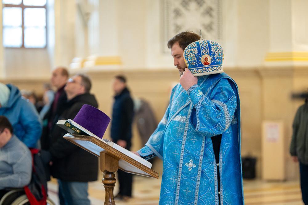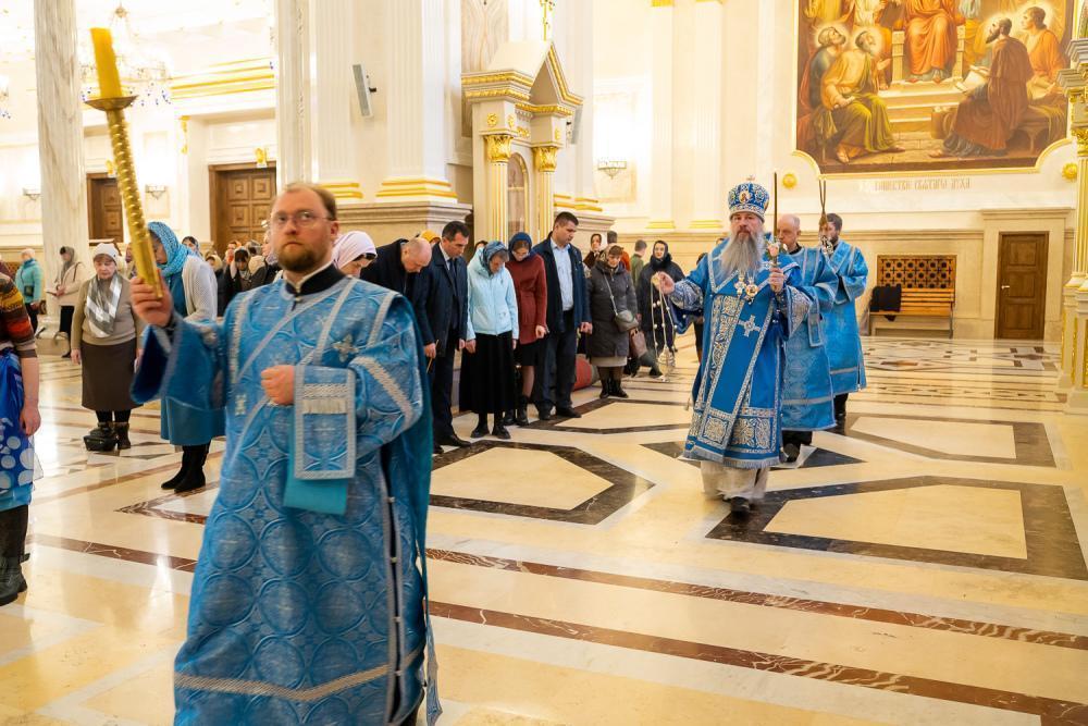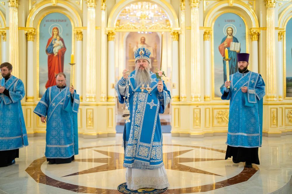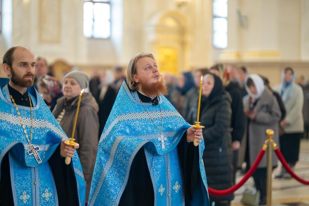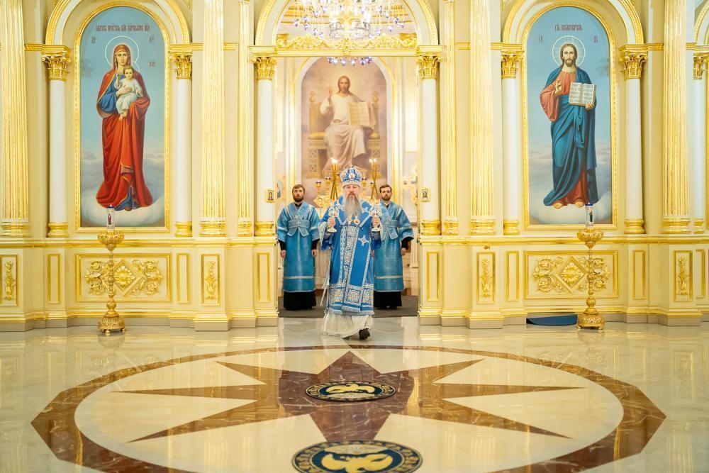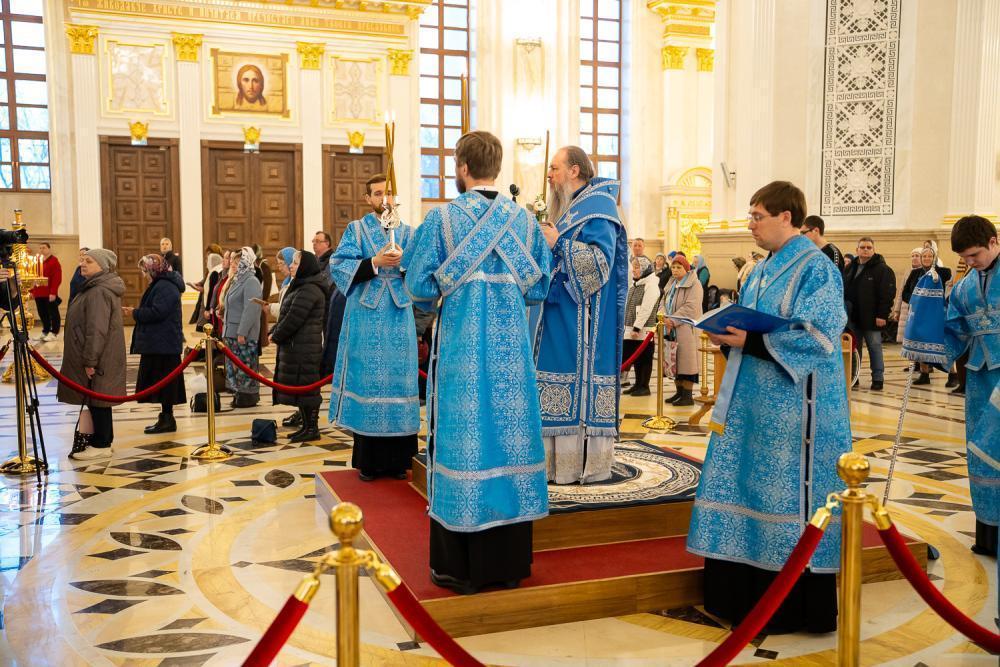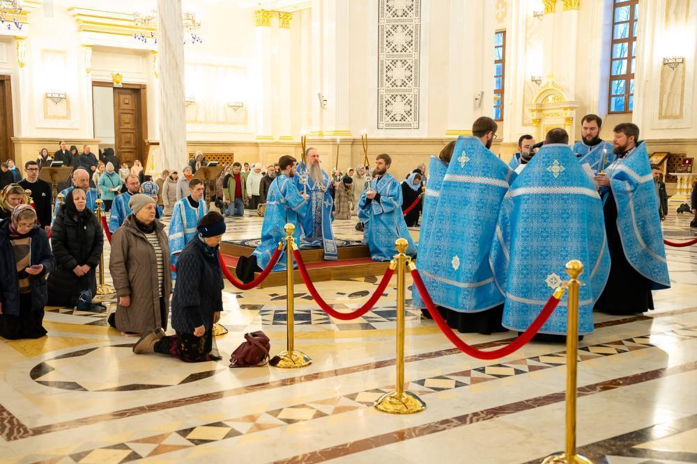 Митрополит Серафим совершил утреню с чтением Акафиста Пресвятой Богородице в Спасском кафедральном соборе