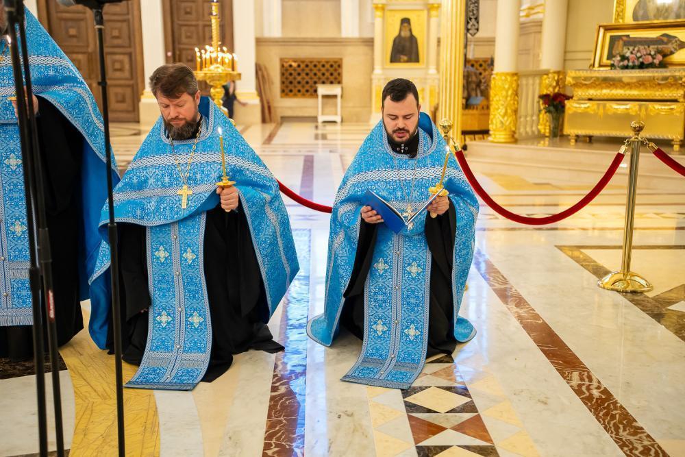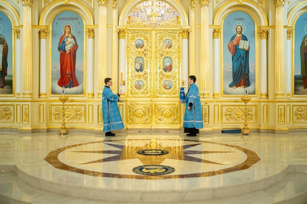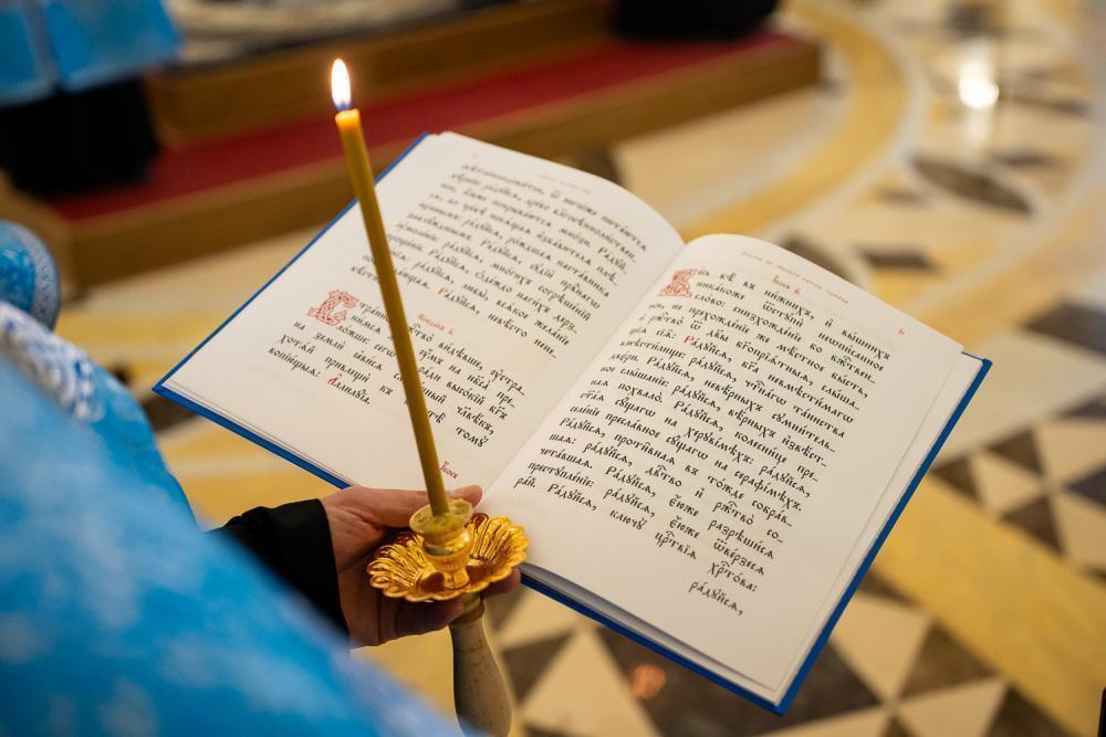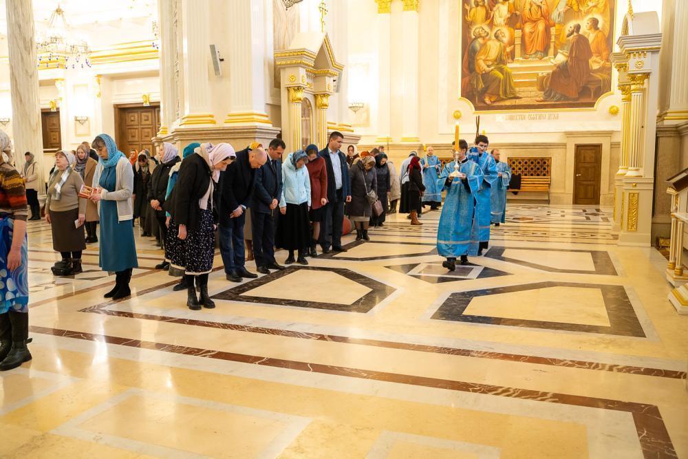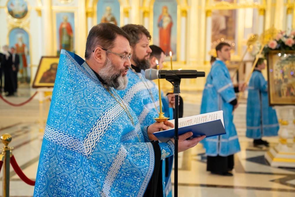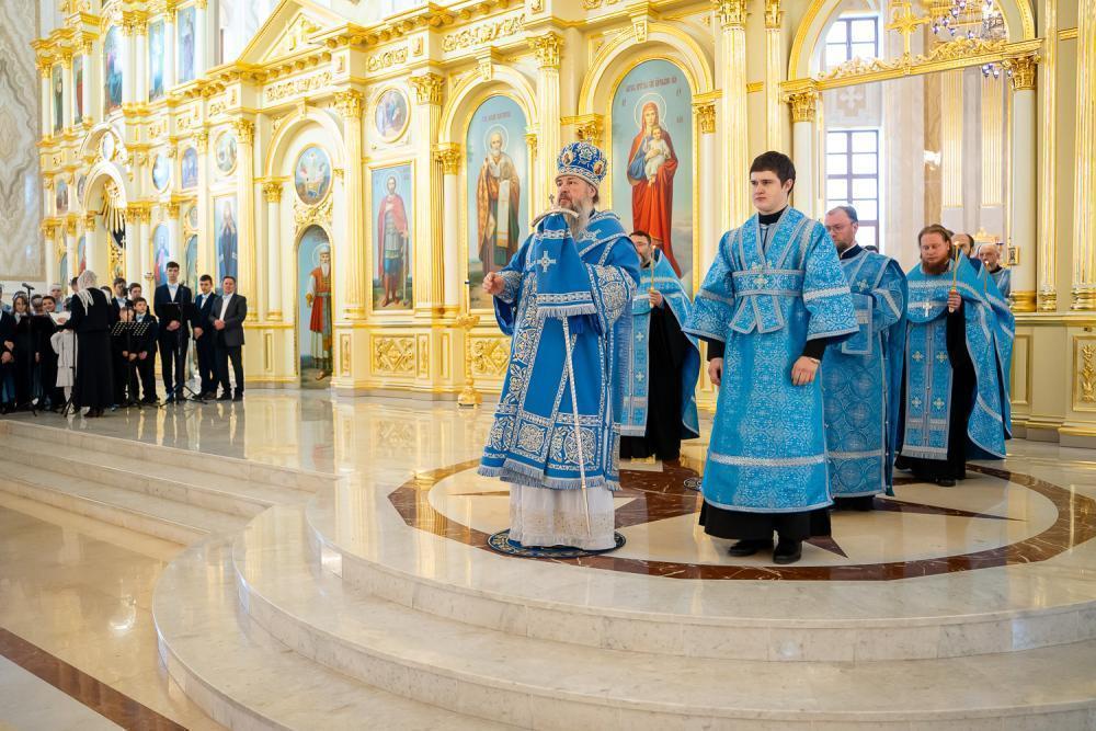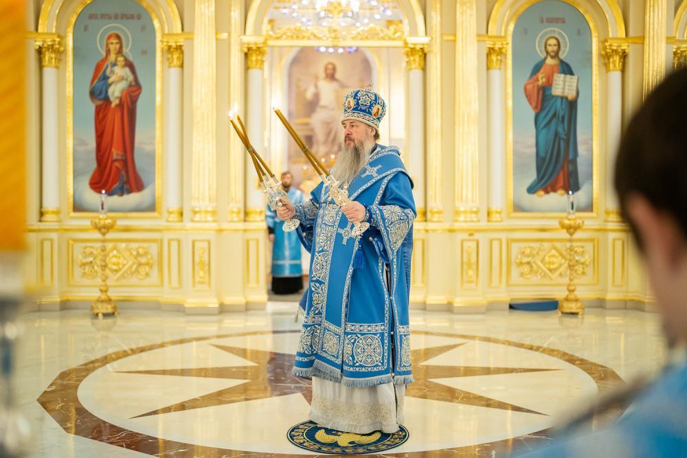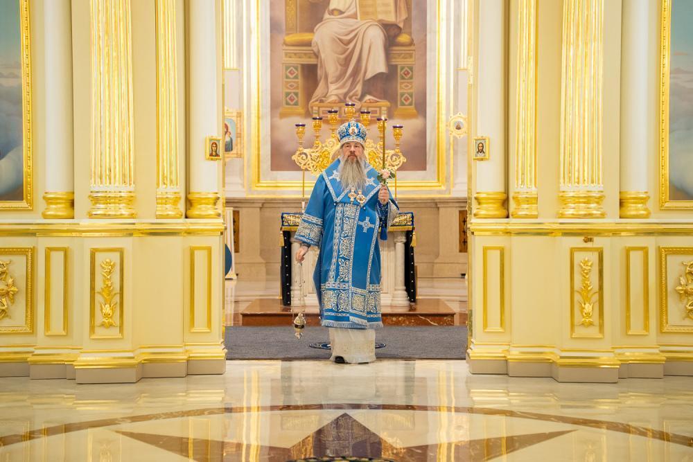 Митрополит Серафим совершил утреню с чтением Акафиста Пресвятой Богородице в Спасском кафедральном соборе