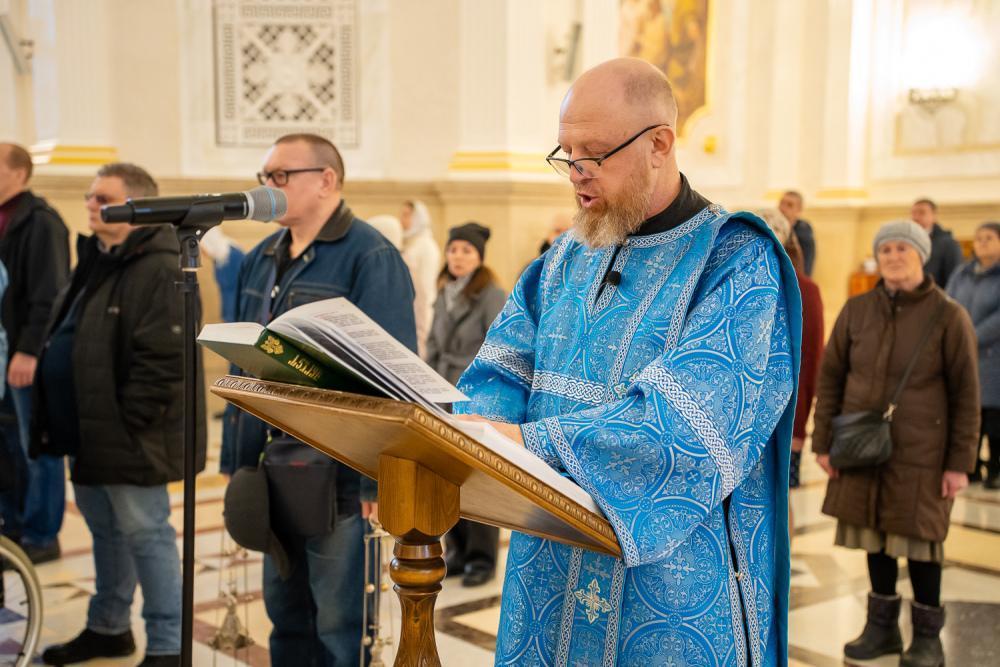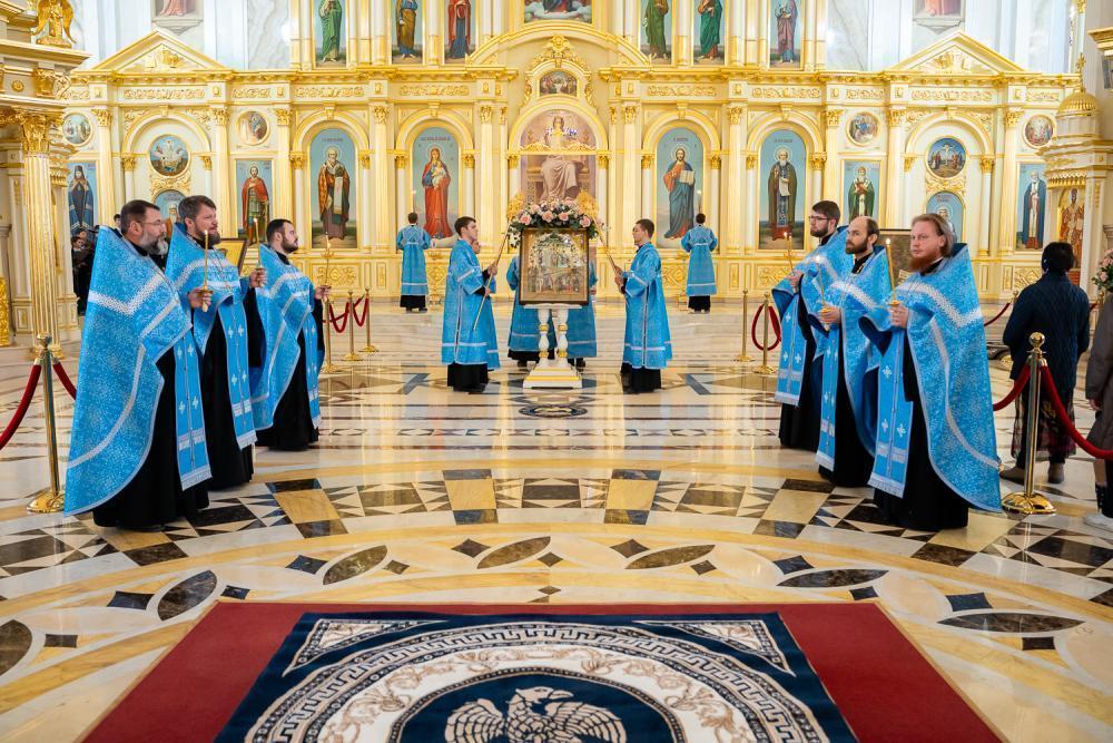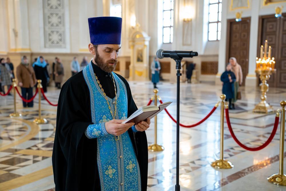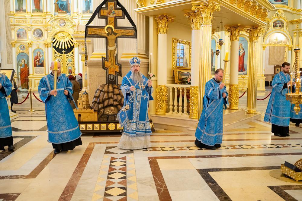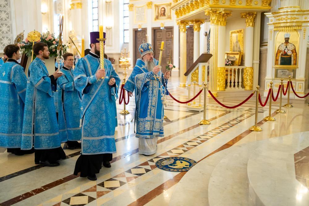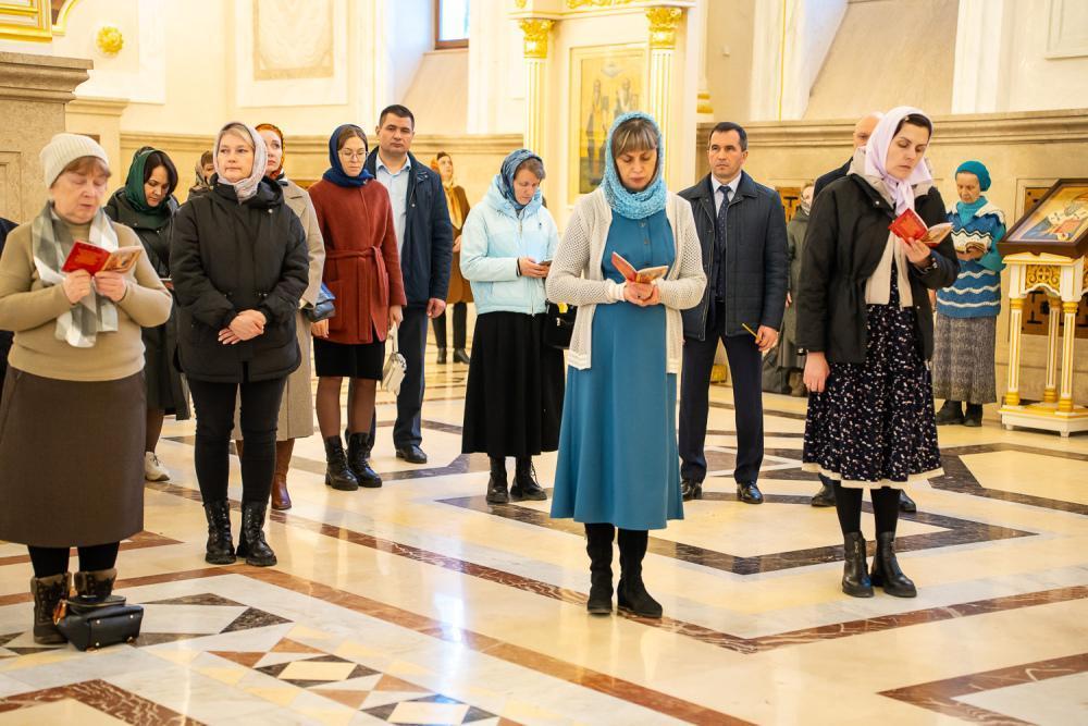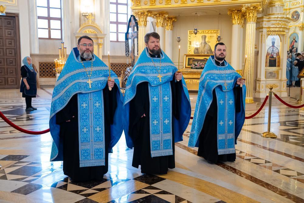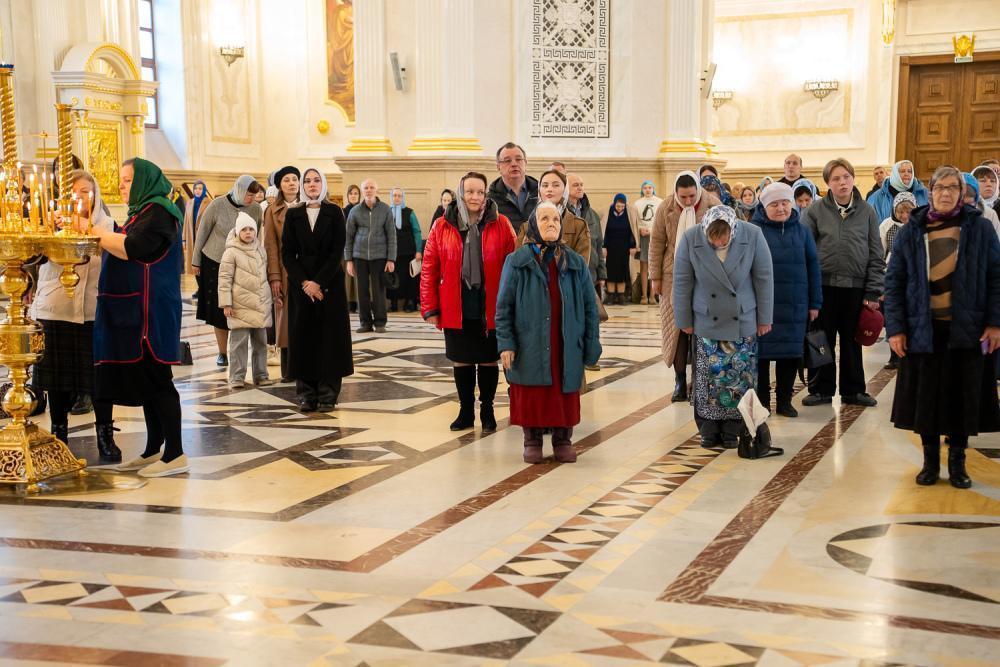Митрополит Серафим совершил утреню с чтением Акафиста Пресвятой Богородице в Спасском кафедральном соборе