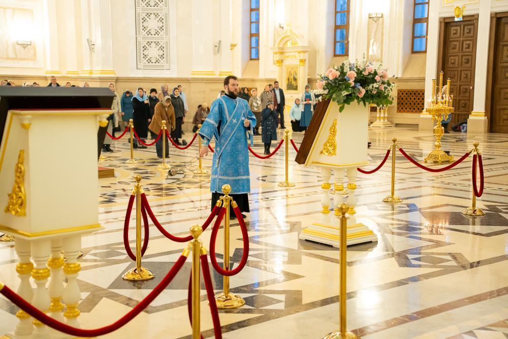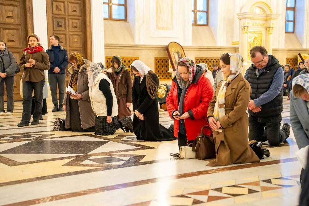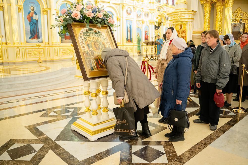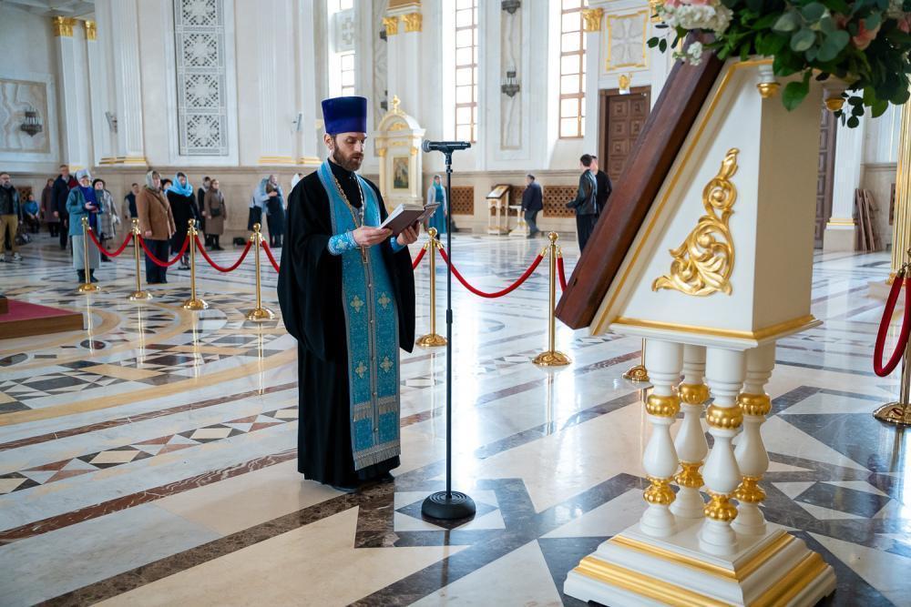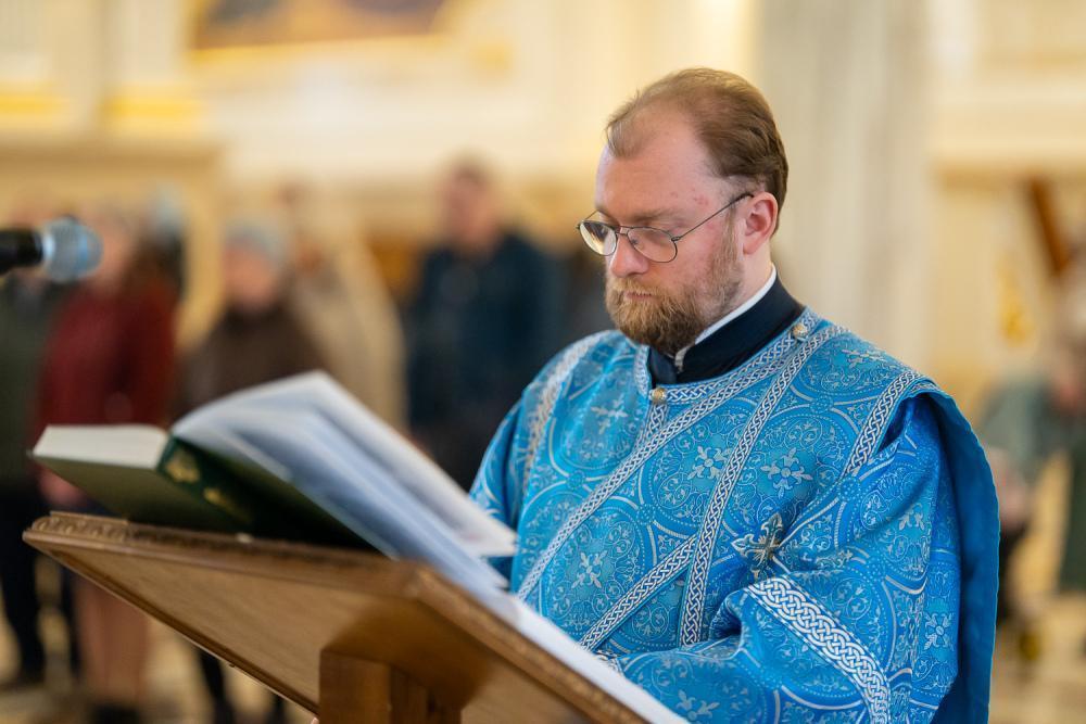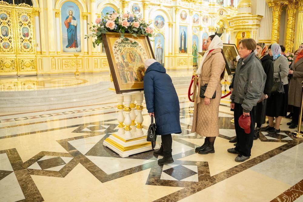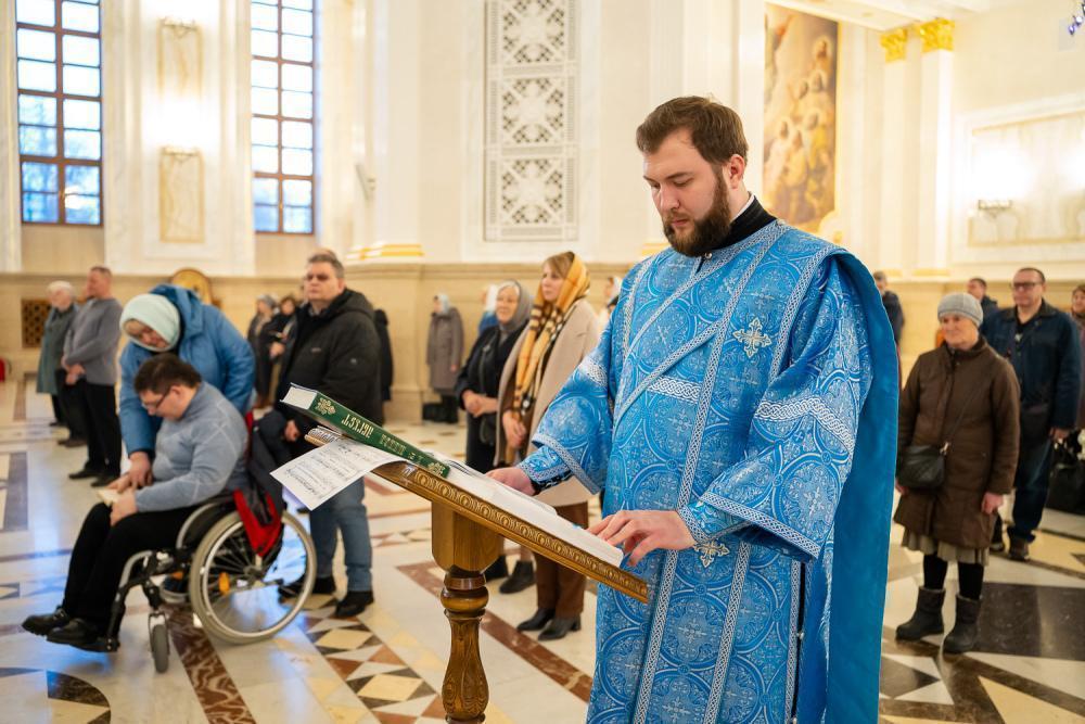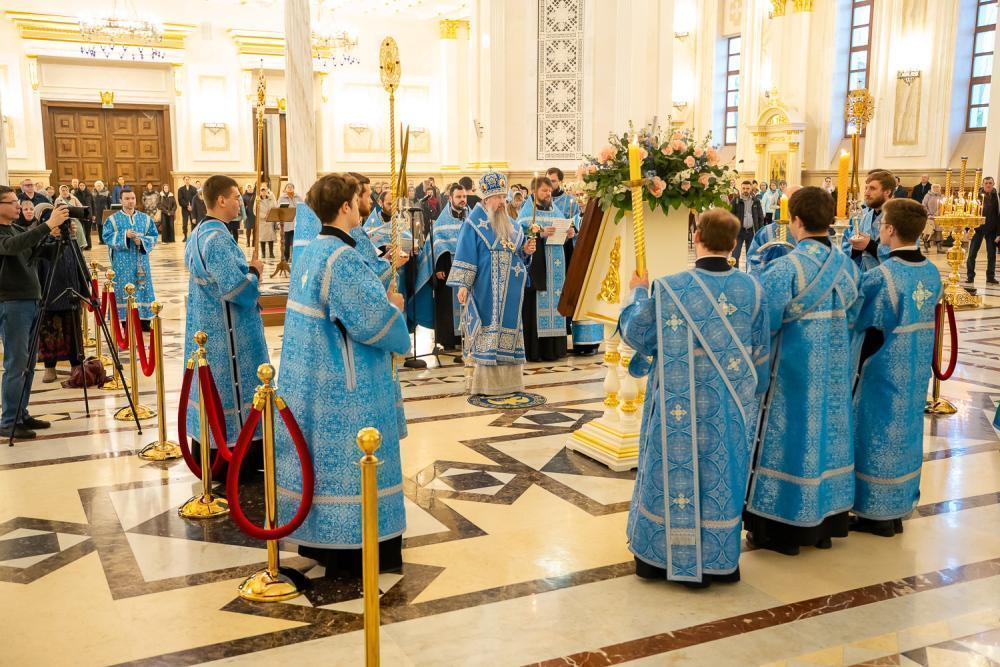 Митрополит Серафим совершил утреню с чтением Акафиста Пресвятой Богородице в Спасском кафедральном соборе