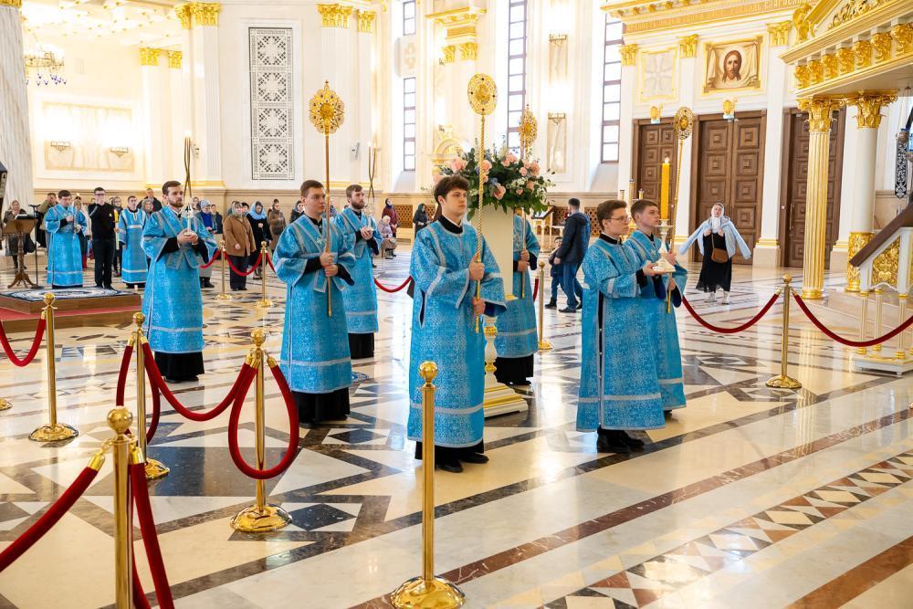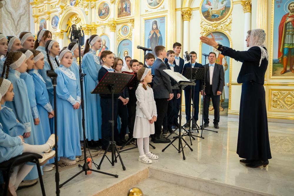 Богослужебные песнопения исполнили хор Спасского кафедрального собора под управлением регента Ольги Горшеневой и Архиерейский детский хор под управлением регента Марины Никитиной.