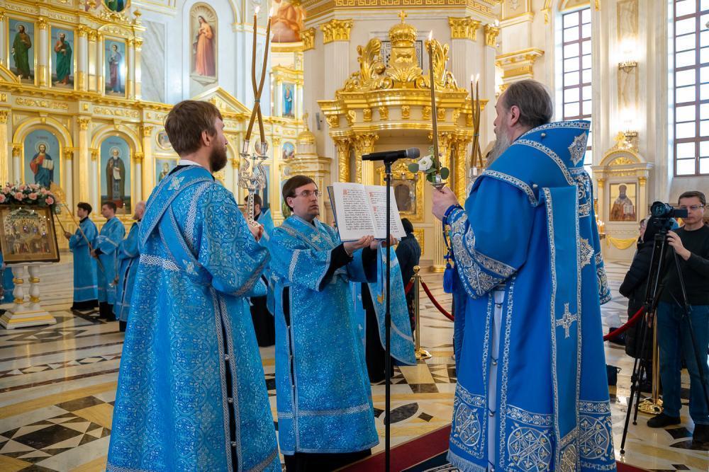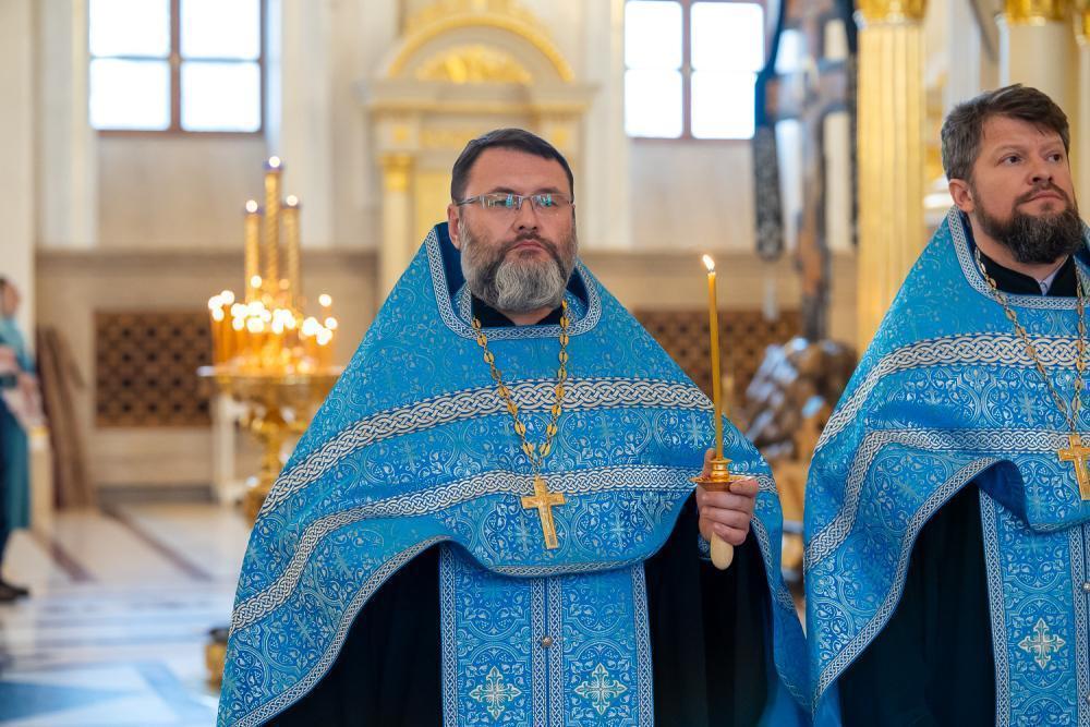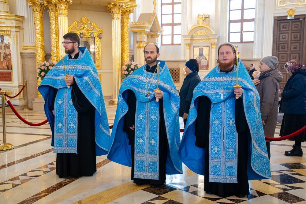 Его Высокопреосвященству сослужили ключарь Спасского кафедрального собора иерей Николай Батищев, протоиереи Андрей Савушкин и Владимир Ольхов, иереи Сергий Иванов, Евгений Климчев и Георгий Насонов, диаконы Богдан Яворский, Кирилл Вейго, Георгий Дементьев и Илья Харитонов.