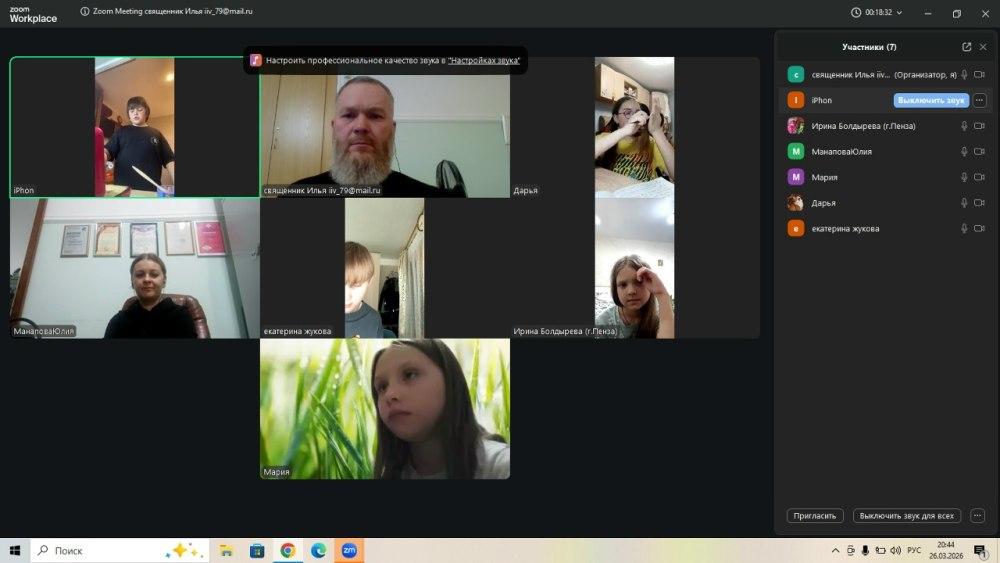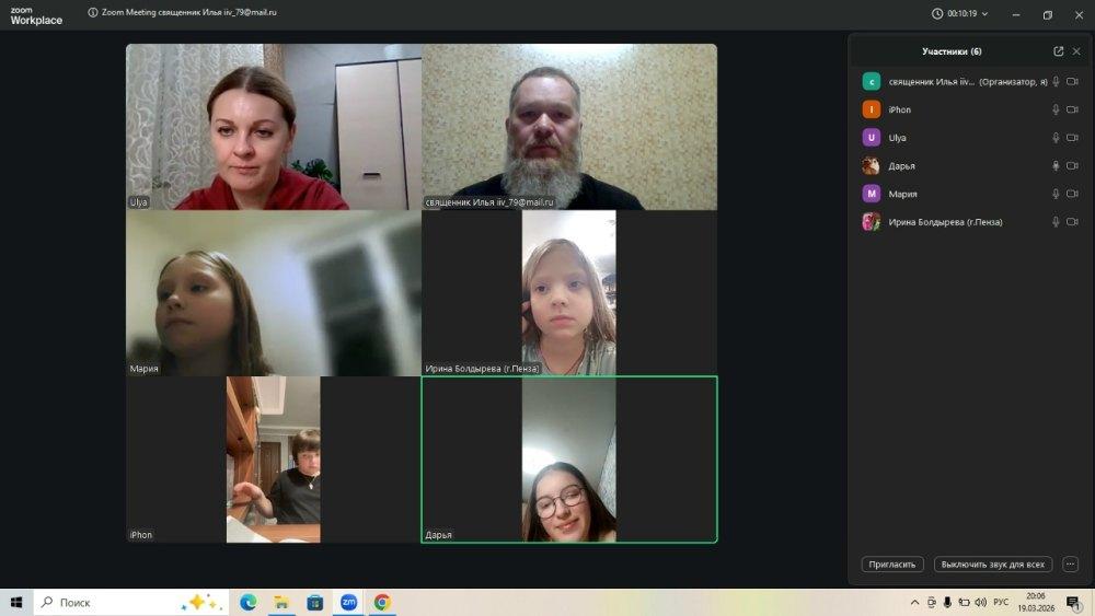 В течение марта 2026 года на платформе Zoom продолжались еженедельные встречи в рамках приходского онлайн-проекта «Ангела ко сну», ведущими которого являются настоятель храма во имя святых благоверных князя Петра и княгини Февронии Муромских города Пензы священник Илия Иванов и Юлия Манапова.