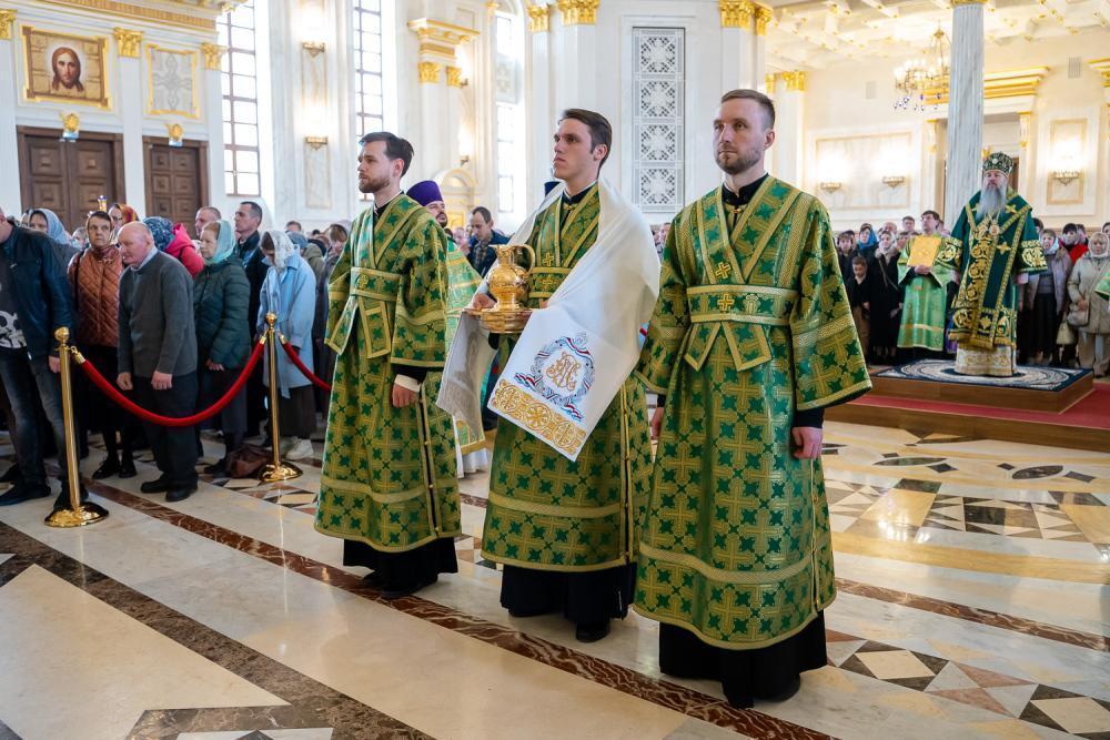 Его Высокопреосвященству сослужили ключарь Спасского кафедрального собора иерей Николай Батищев, протоиерей Владимир Ольхов, иереи Александр Черных, Евгений Климчев, Георгий Насонов, диаконы Богдан Яворский, Кирилл Вейго, Никита Черных и Илья Харитонов.