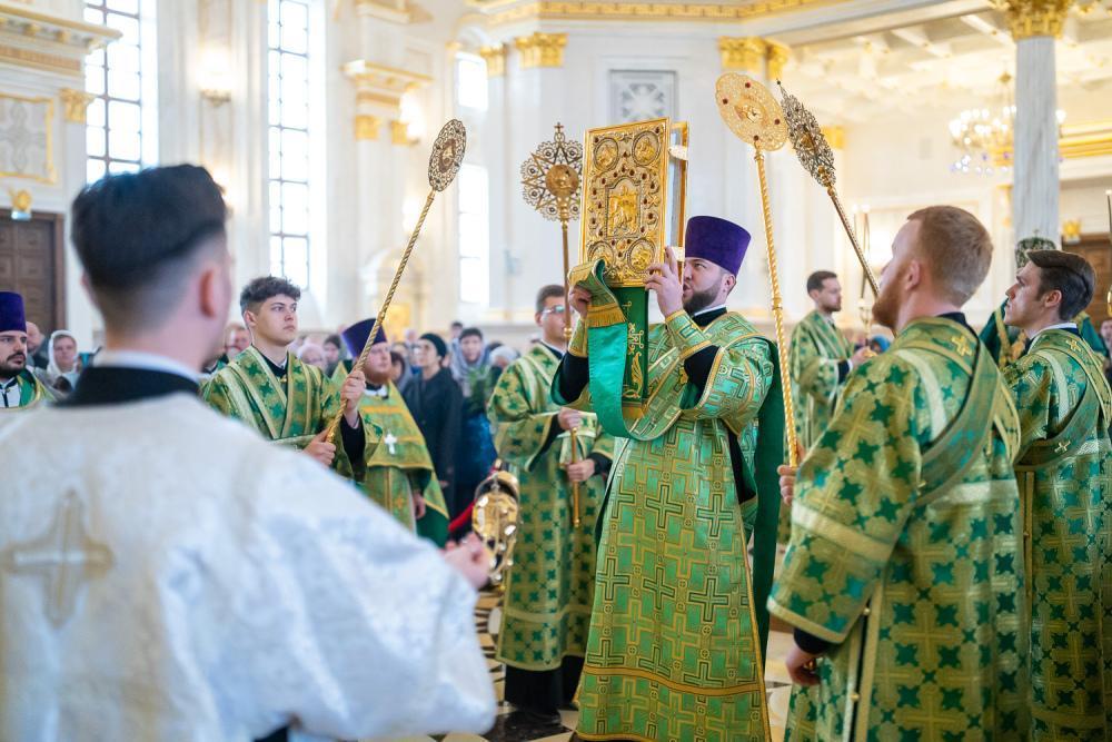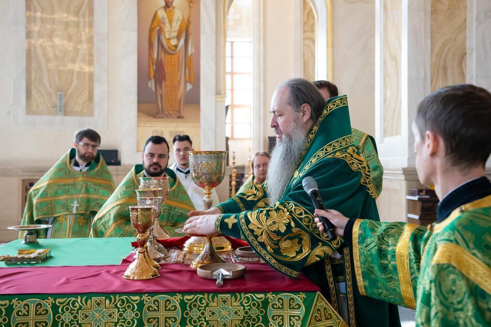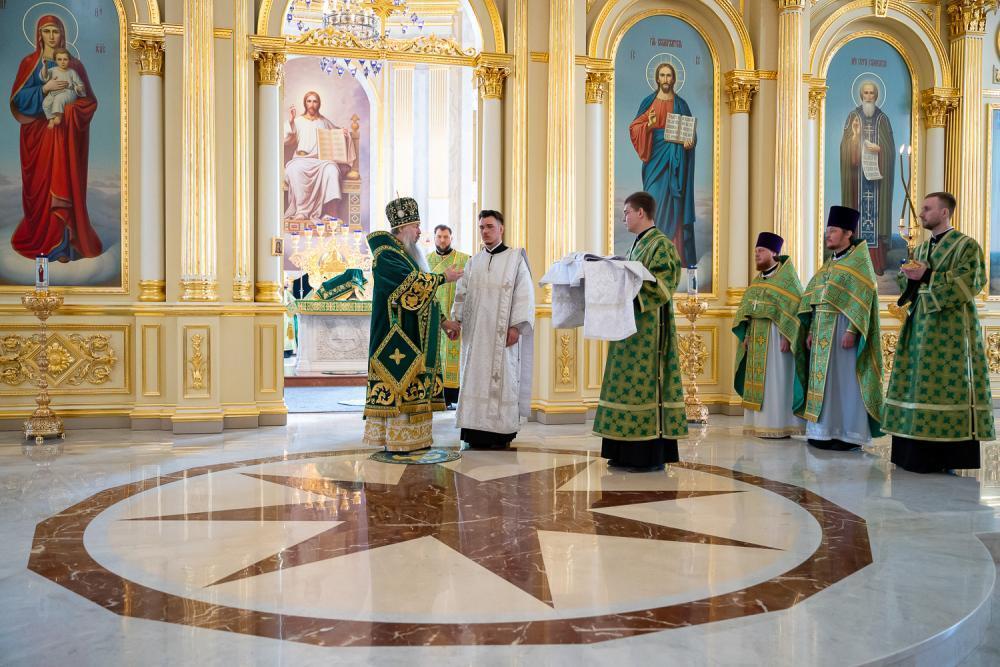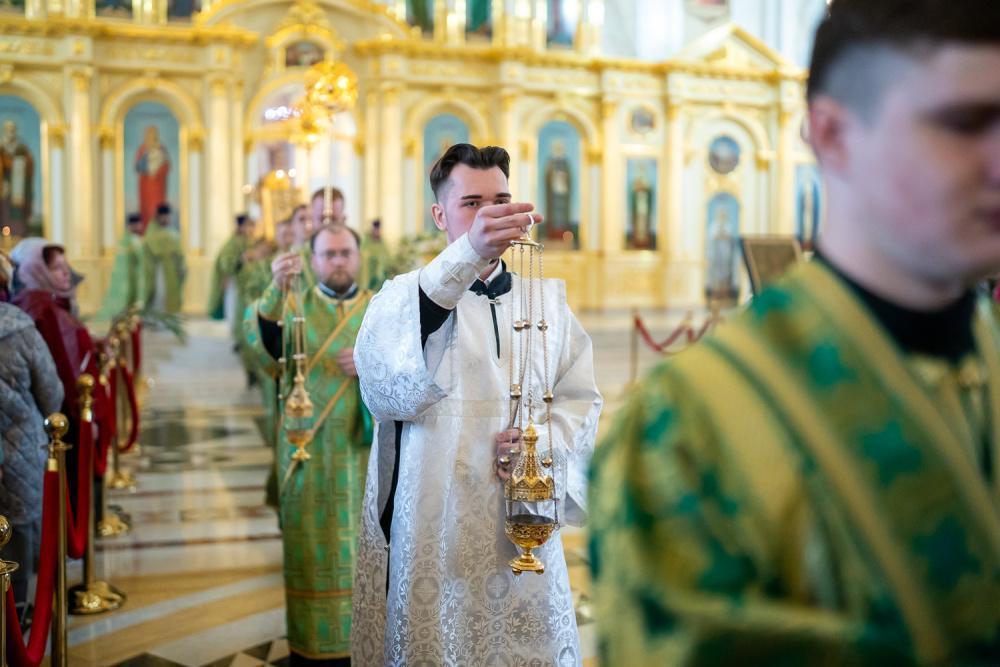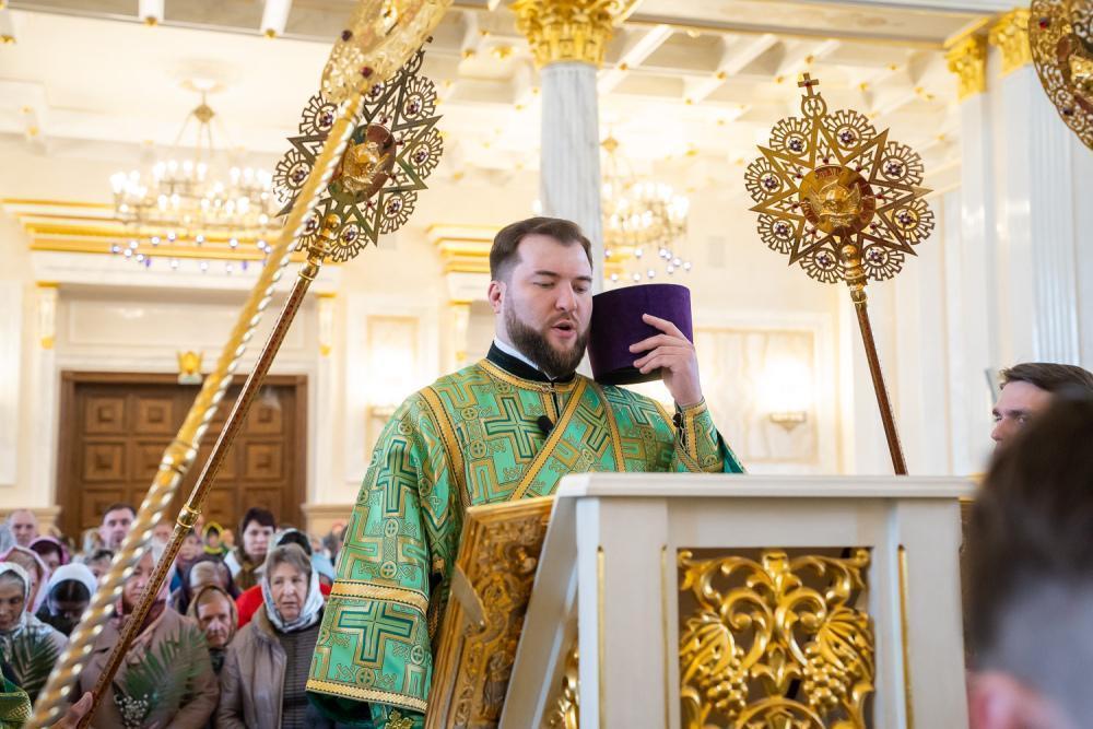 В праздник Входа Господня в Иерусалим митрополит Серафим совершил литургию в Спасском кафедральном соборе