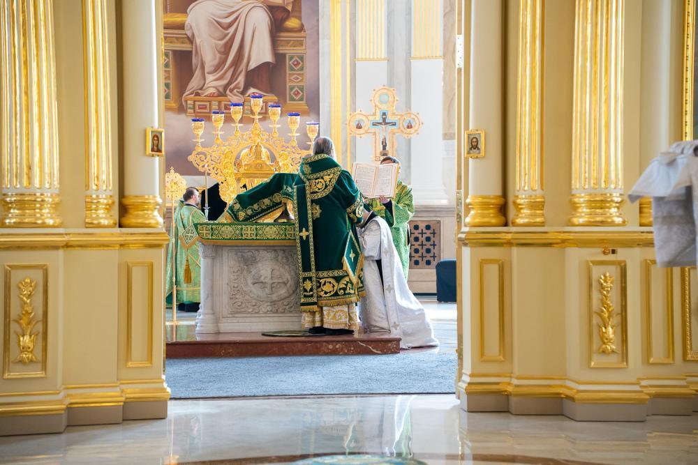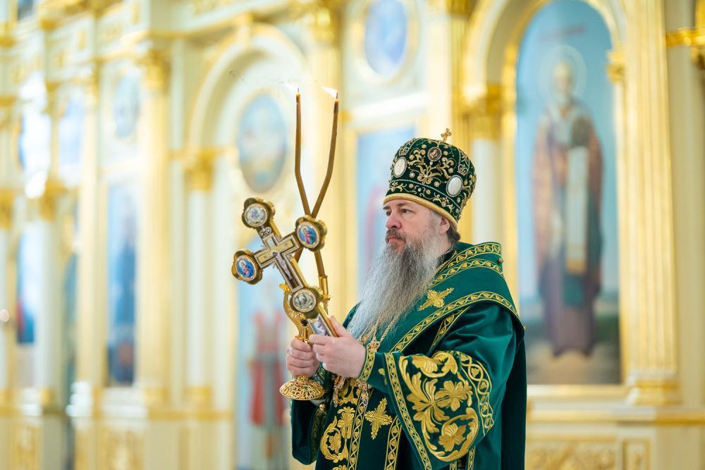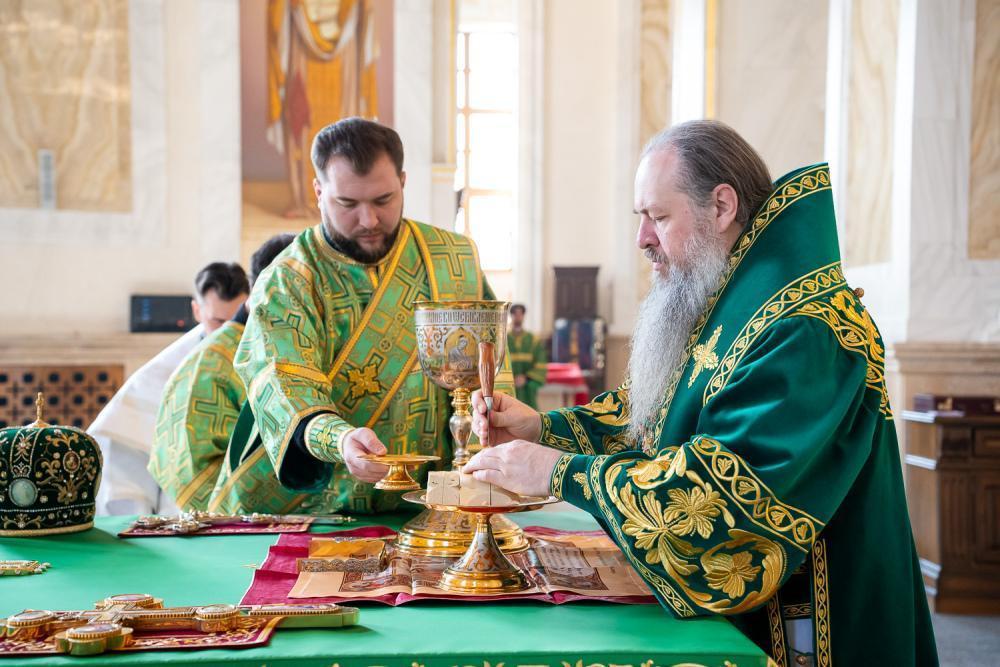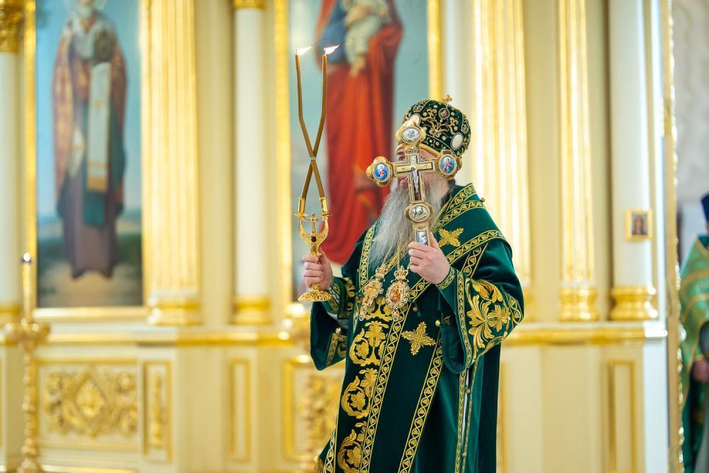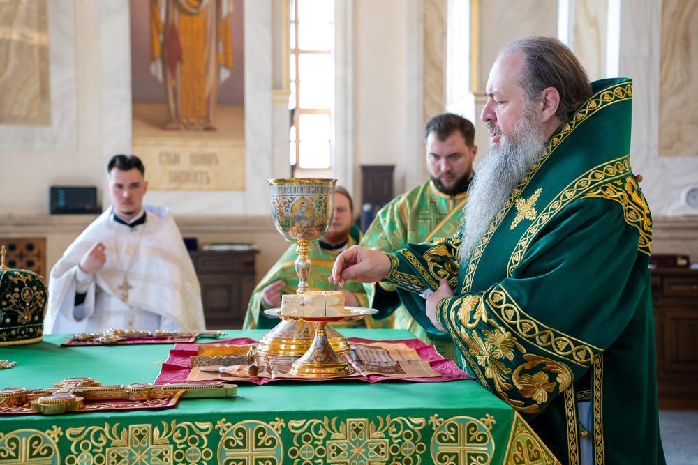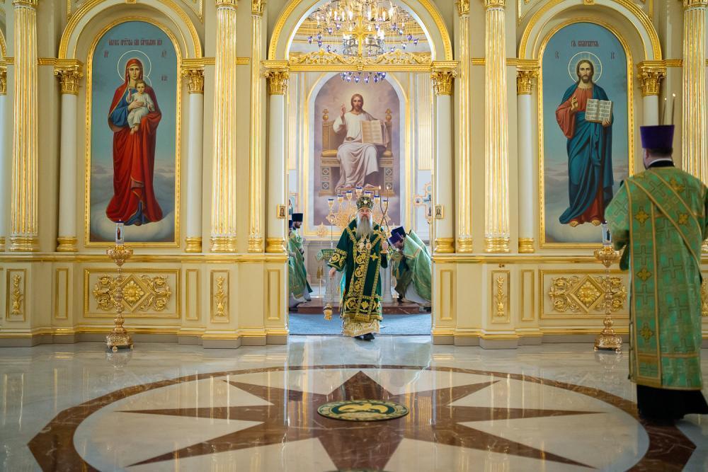 В праздник Входа Господня в Иерусалим митрополит Серафим совершил литургию в Спасском кафедральном соборе