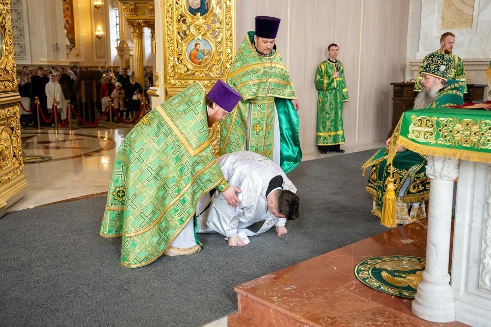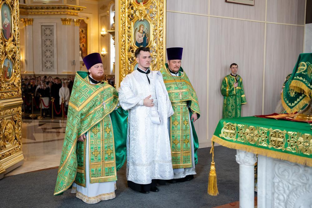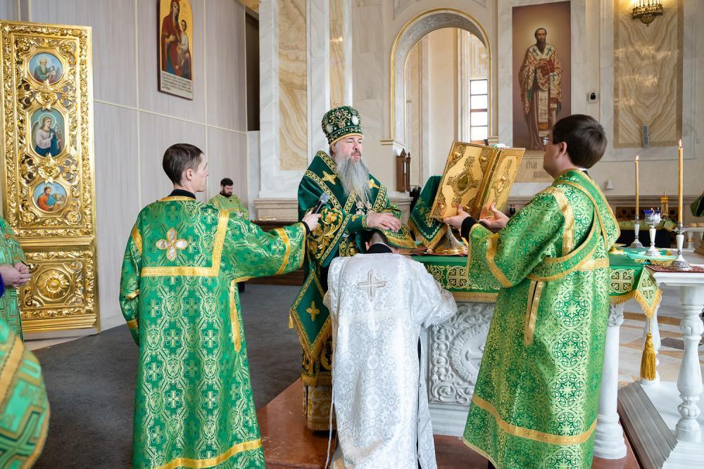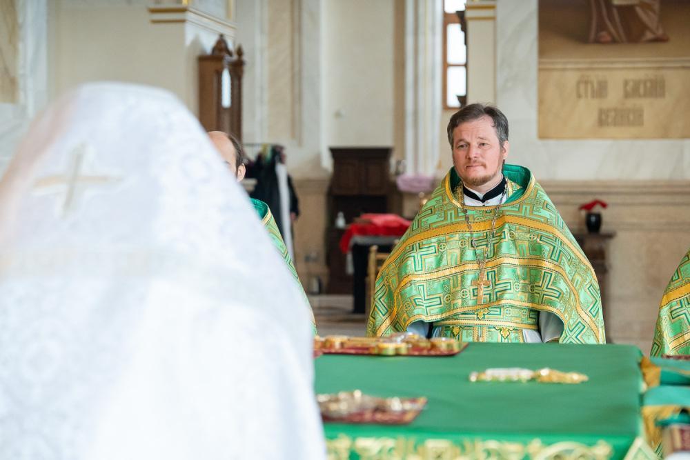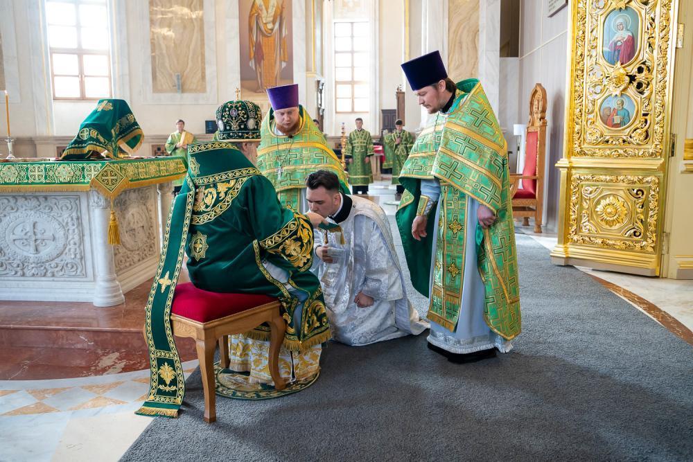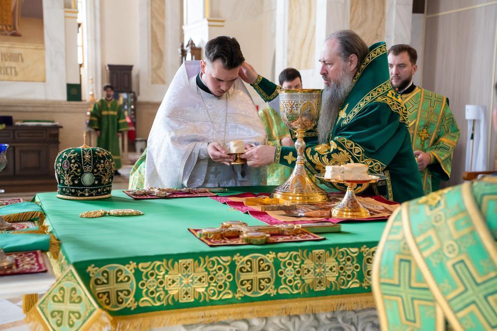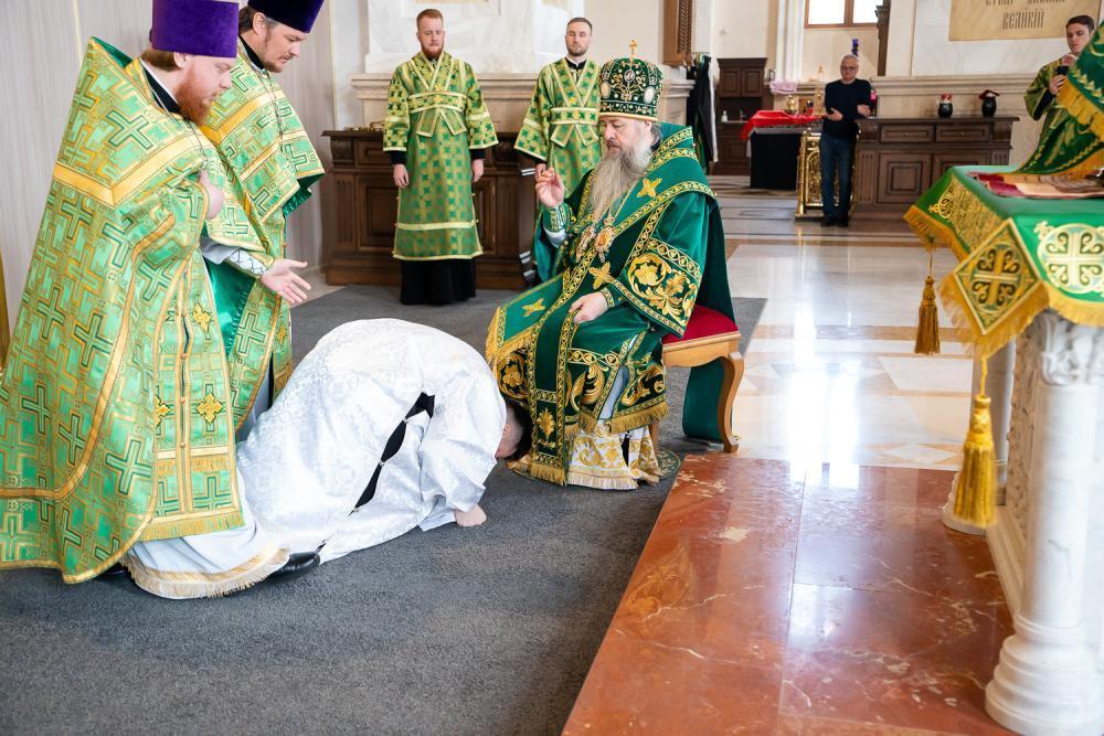После Херувимской песни Высокопреосвященный Серафим рукоположил диакона Никиту Черных во пресвитера.