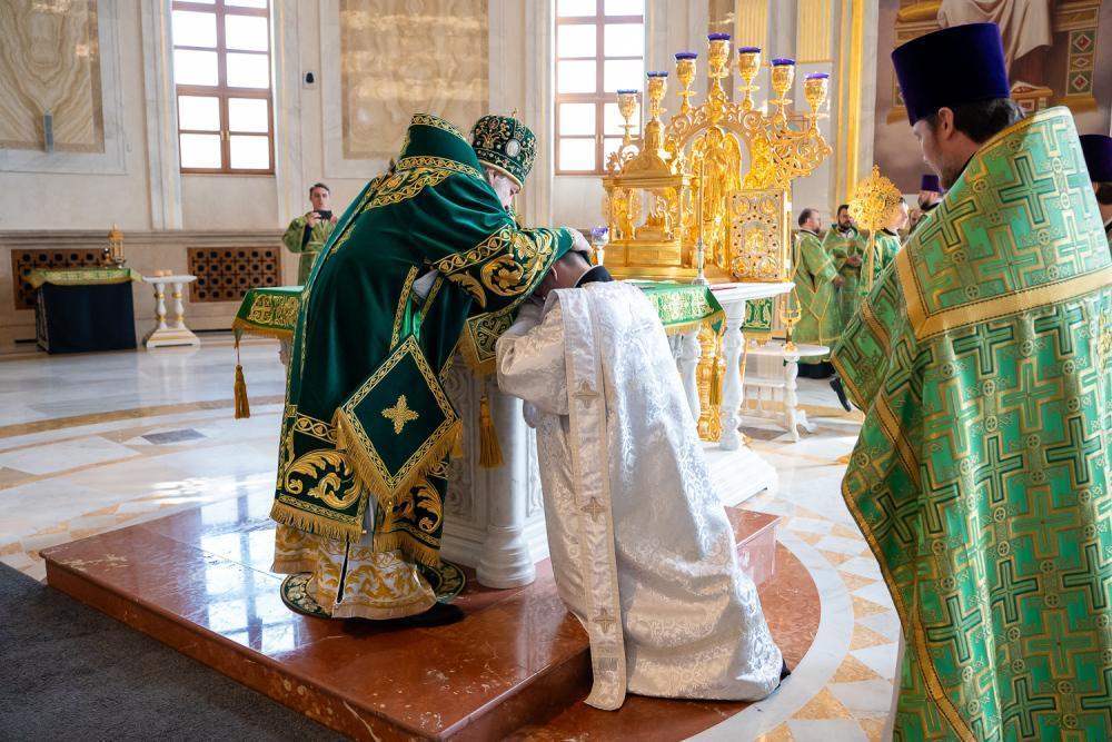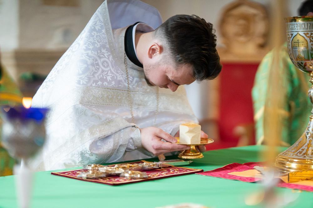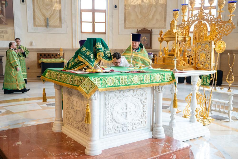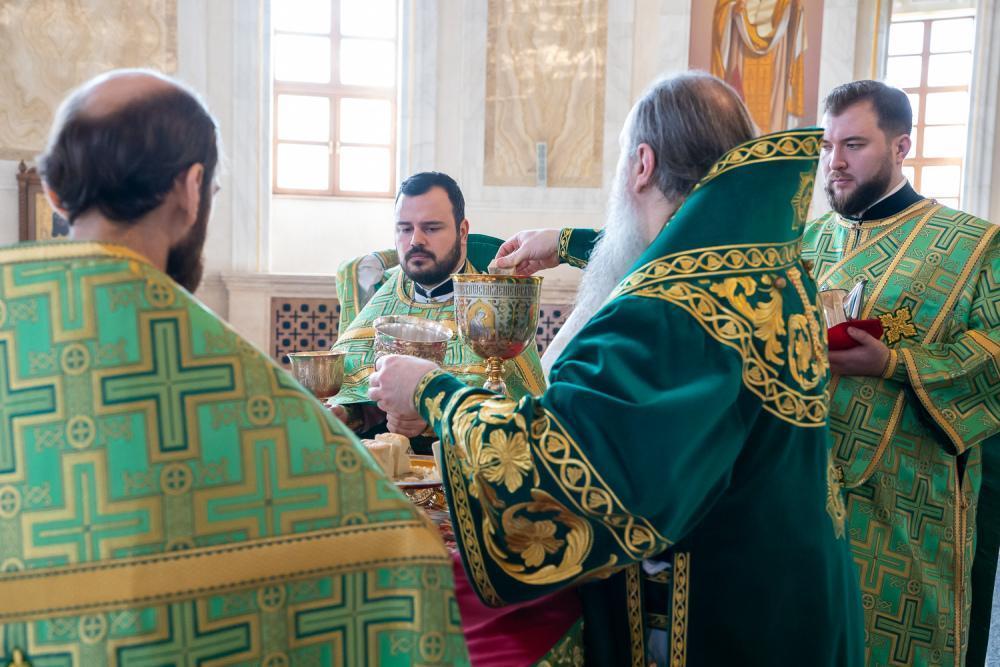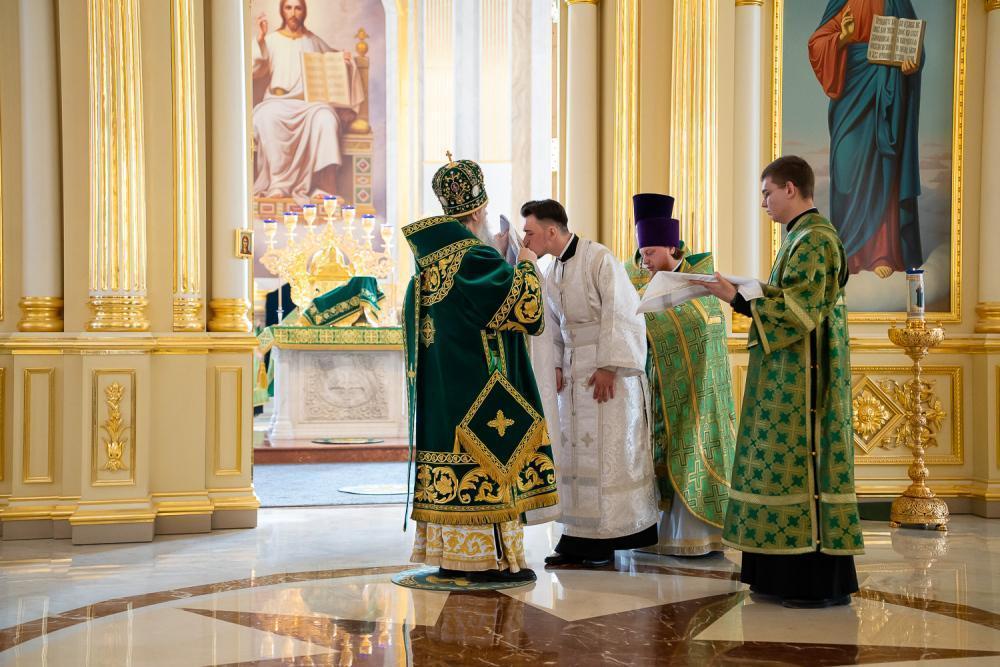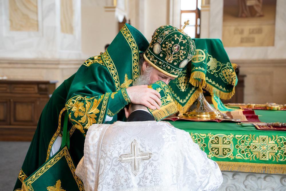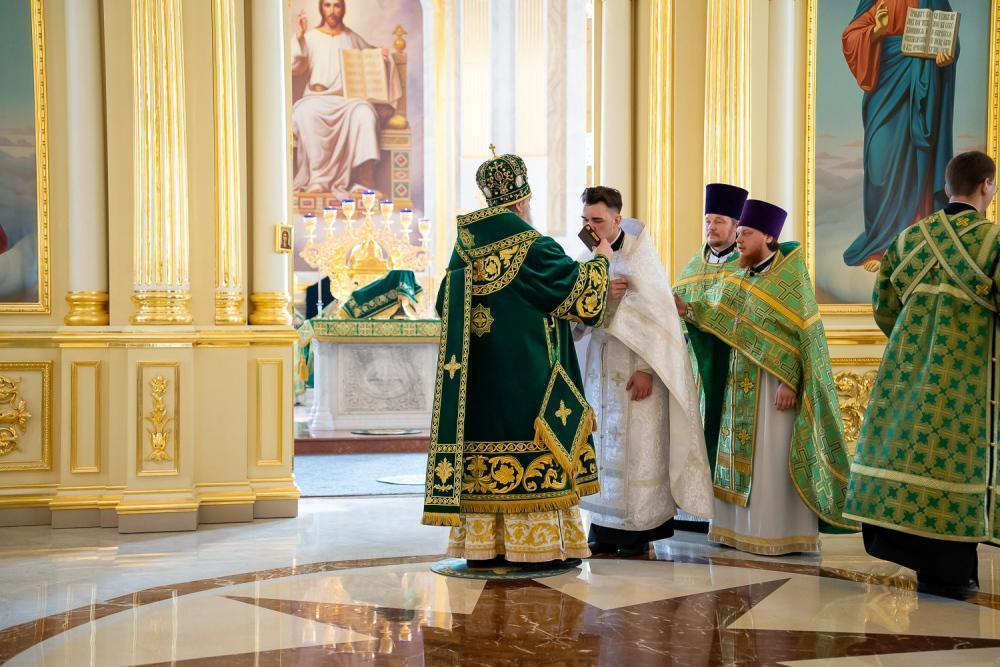 После Херувимской песни Высокопреосвященный Серафим рукоположил диакона Никиту Черных во пресвитера.