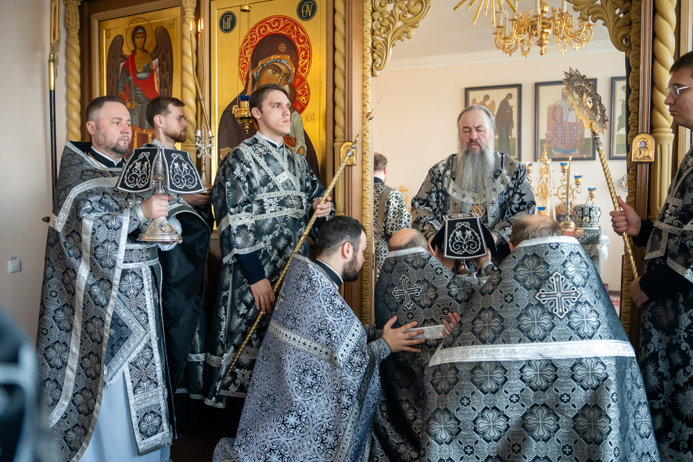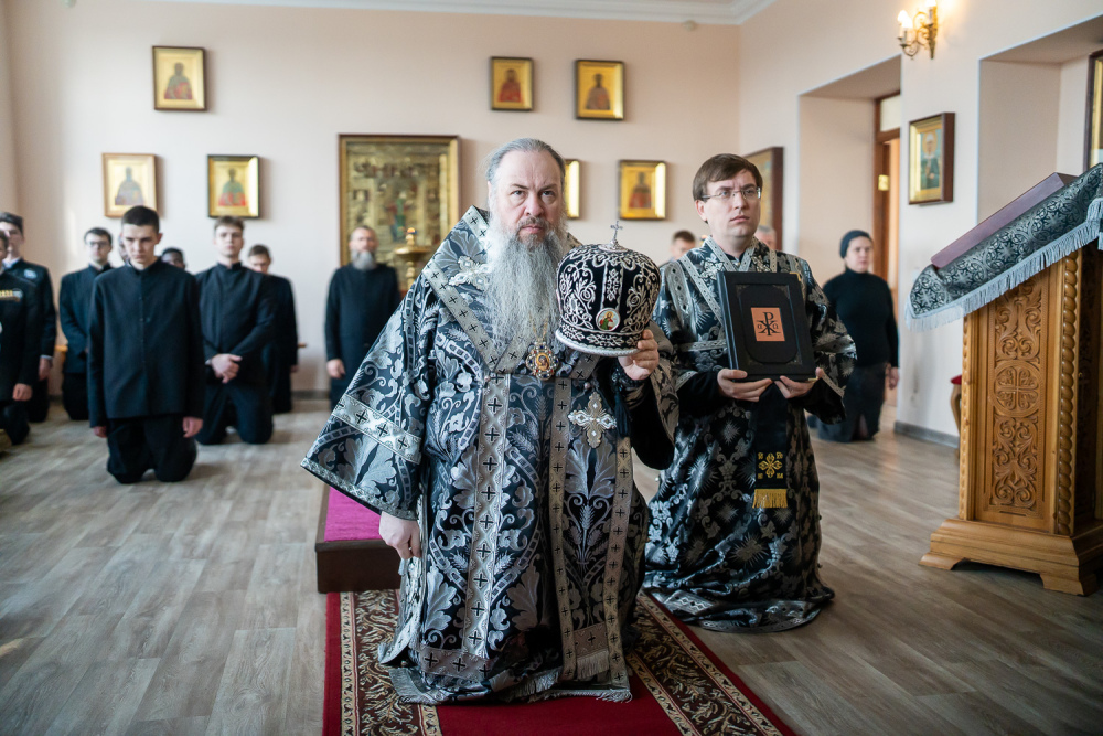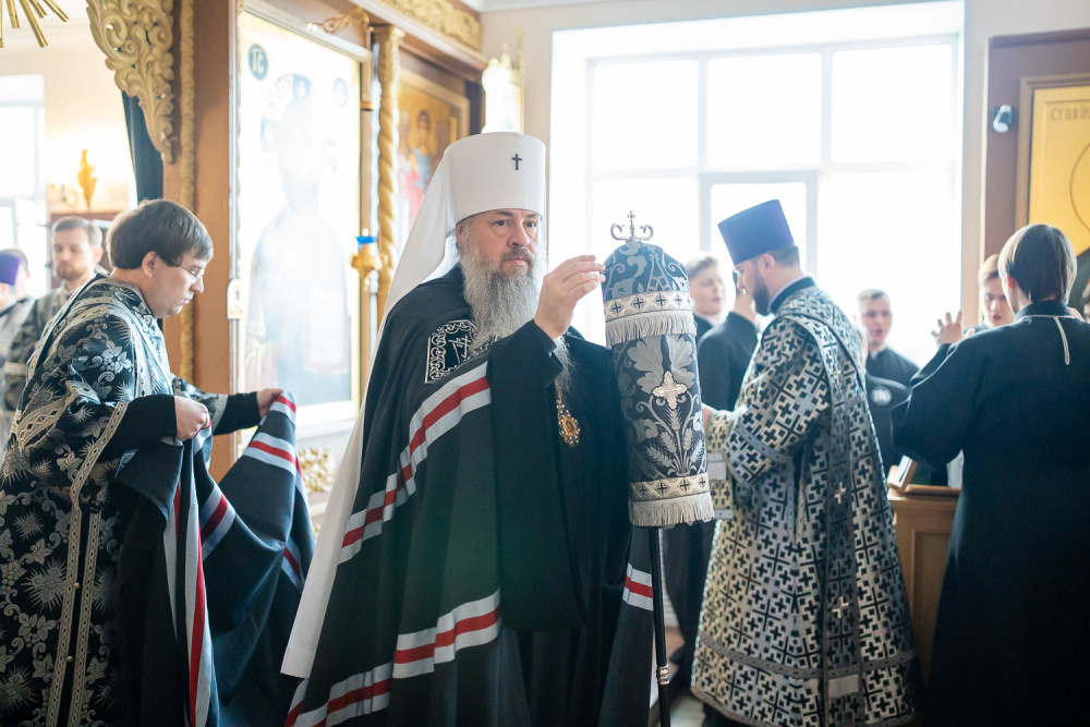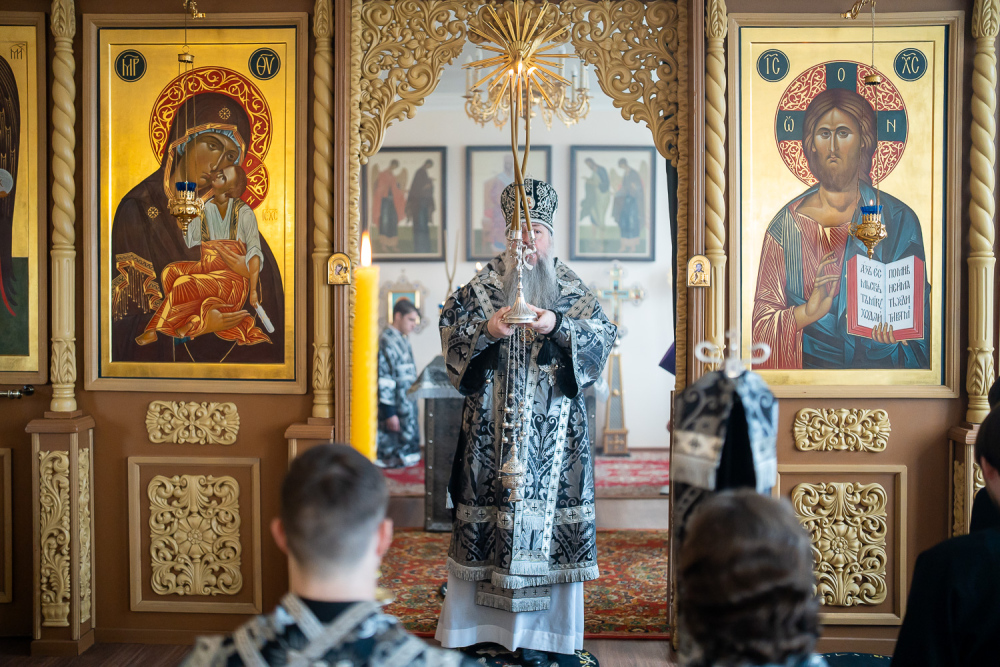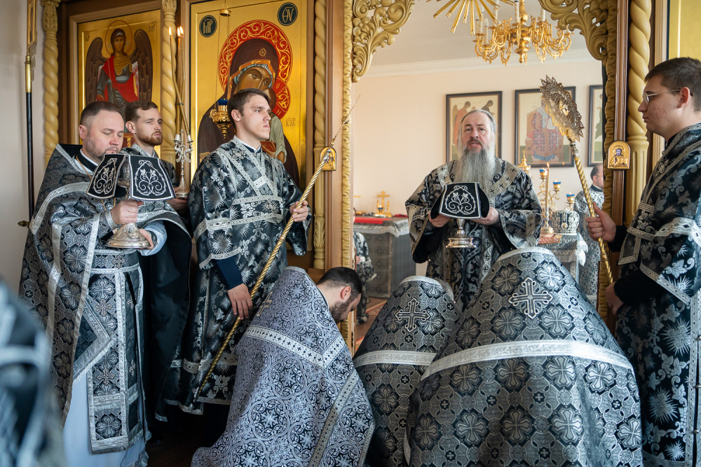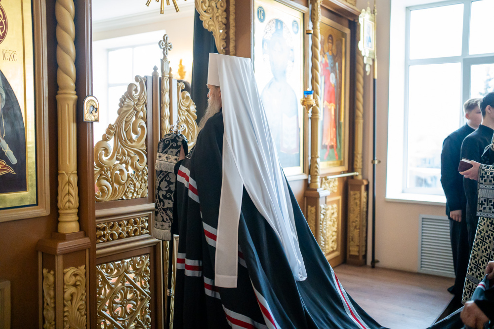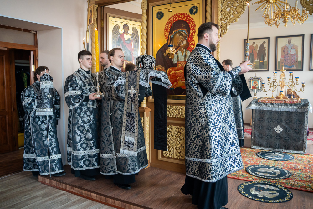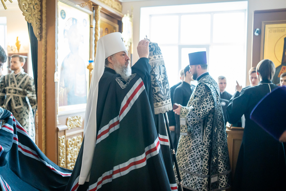В Великий понедельник митрополит Серафим совершил Литургию Преждеосвященных Даров в храме святителя Иннокентия Иркутского при семинарии