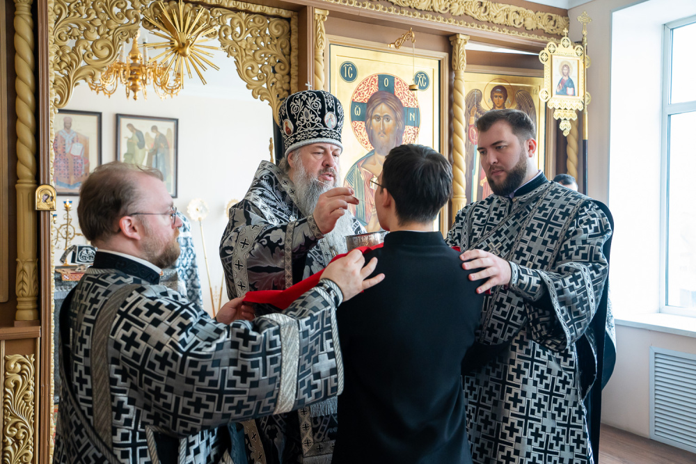 6 апреля 2026 года, в Великий Понедельник Страстной седмицы, митрополит Пензенский и Нижнеломовский Серафим совершил Литургию Преждеосвященных Даров в храме во имя святителя Иннокентия Иркутского при Пензенской духовной семинарии (ПДС).