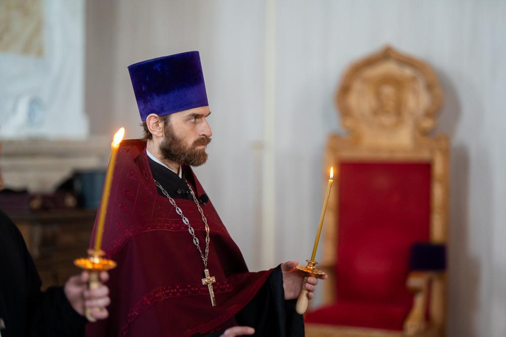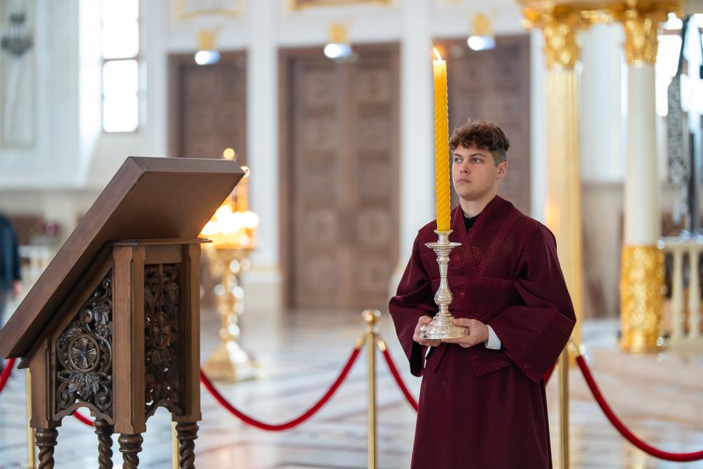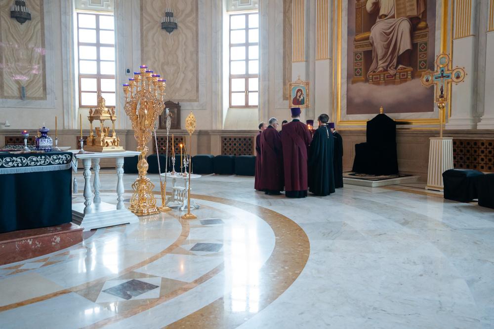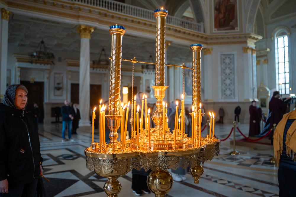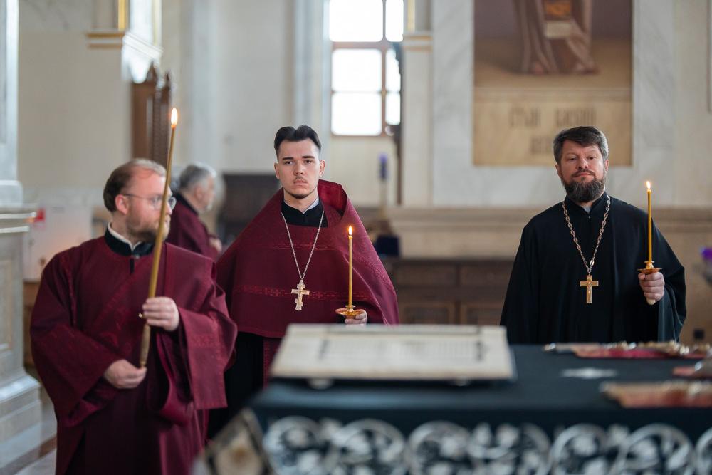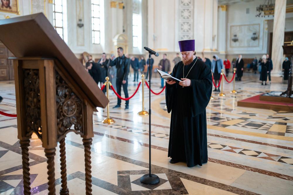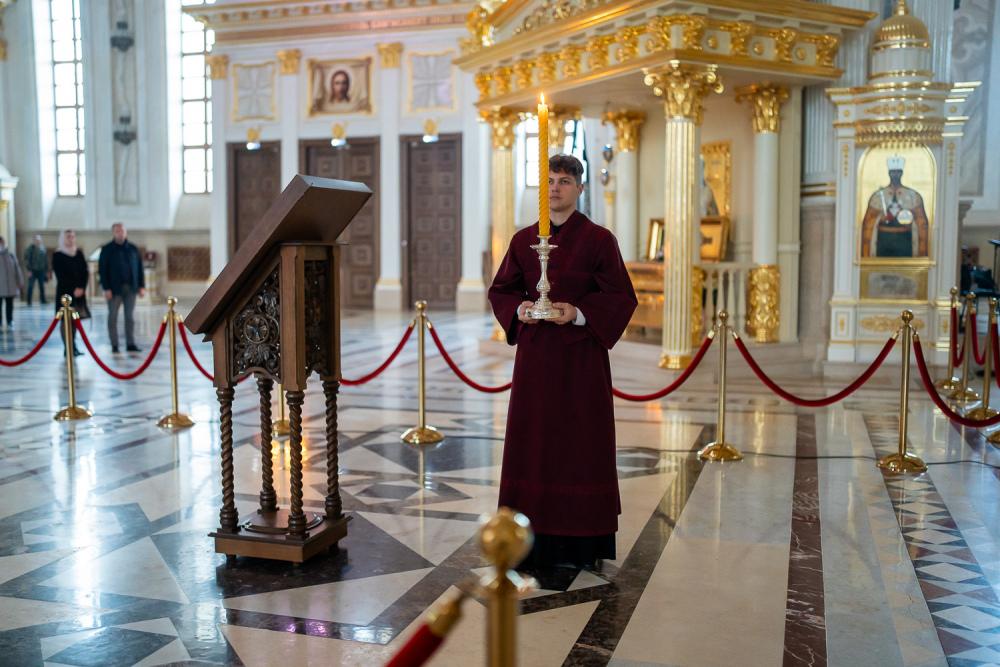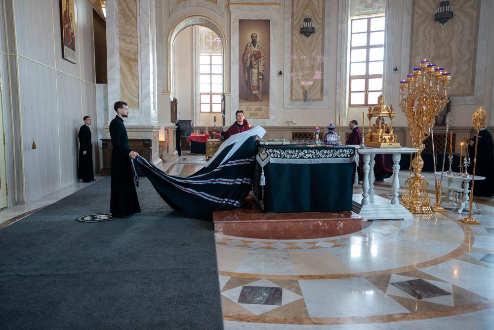 В канун среды Страстной седмицы митрополит Серафим молился за уставным богослужением в Спасском кафедральном соборе
