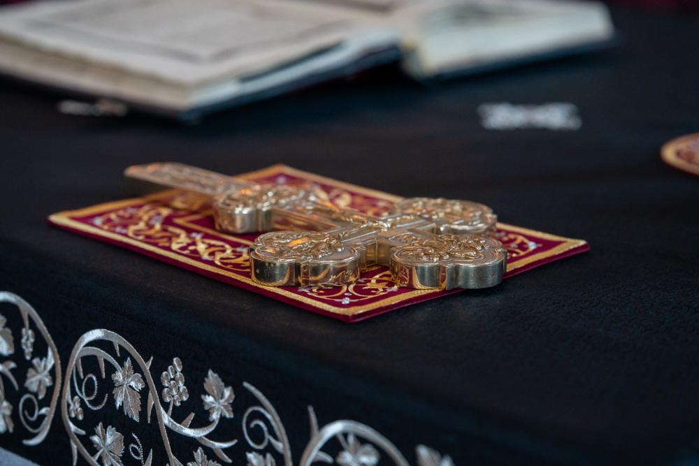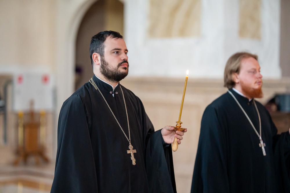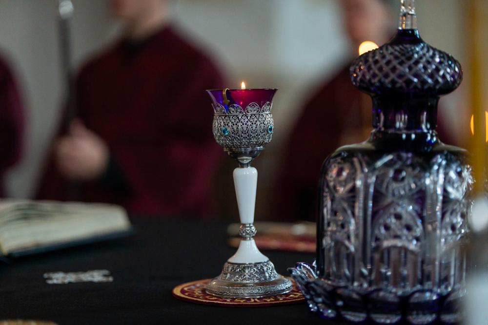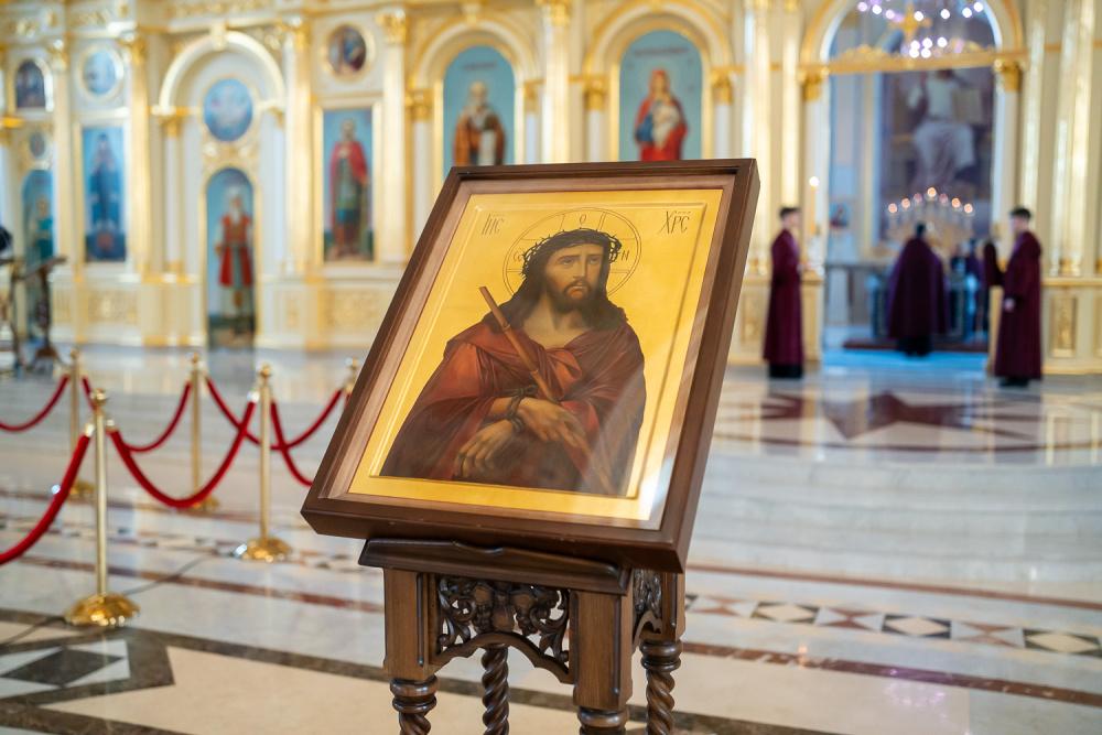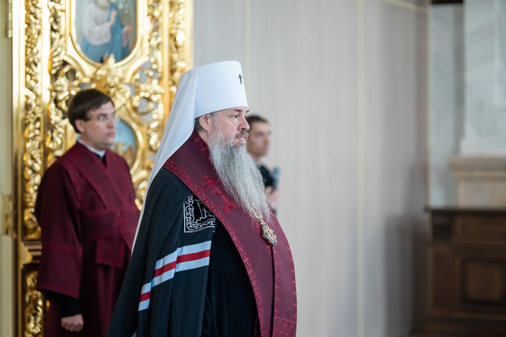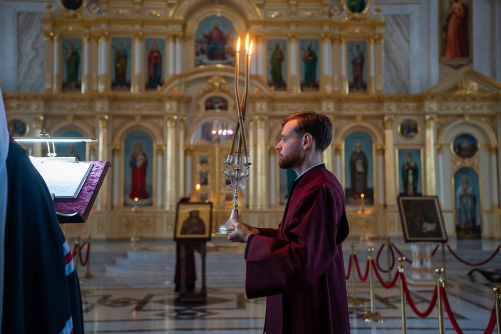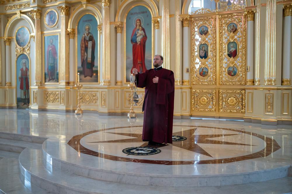 В канун среды Страстной седмицы митрополит Серафим молился за уставным богослужением в Спасском кафедральном соборе