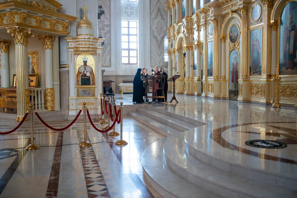 Богослужебные песнопения исполнил хор Спасского кафедрального собора под управлением регента Ольги Горшеневой.