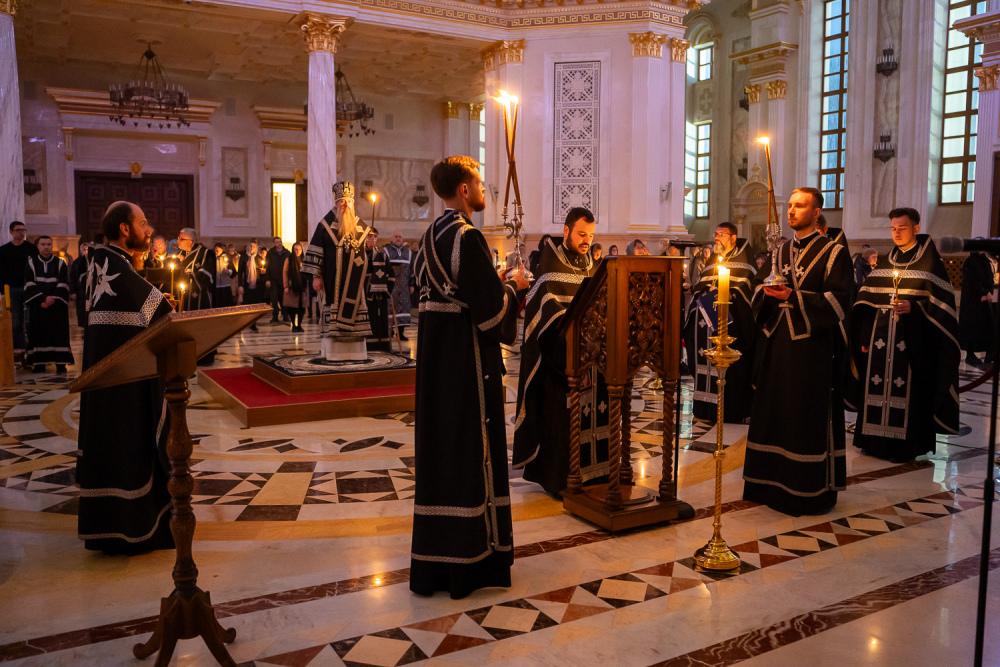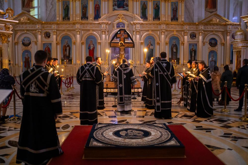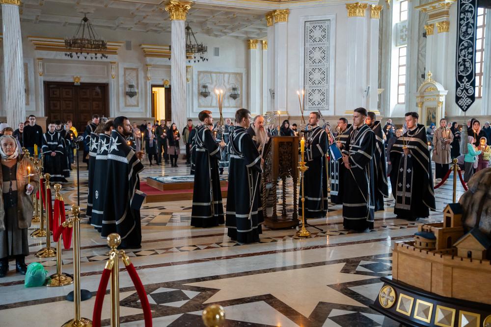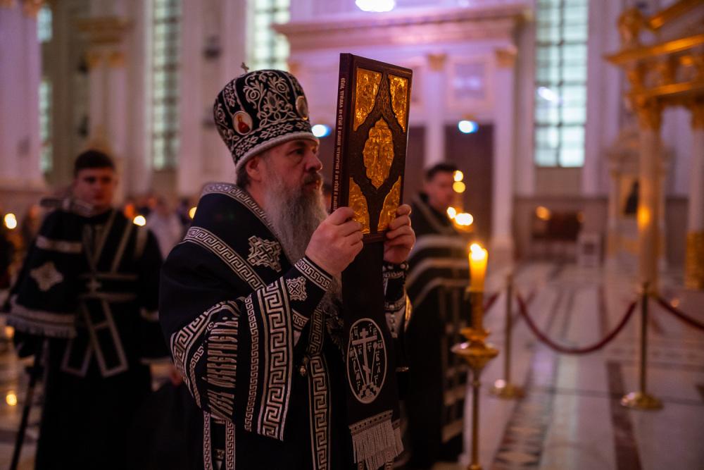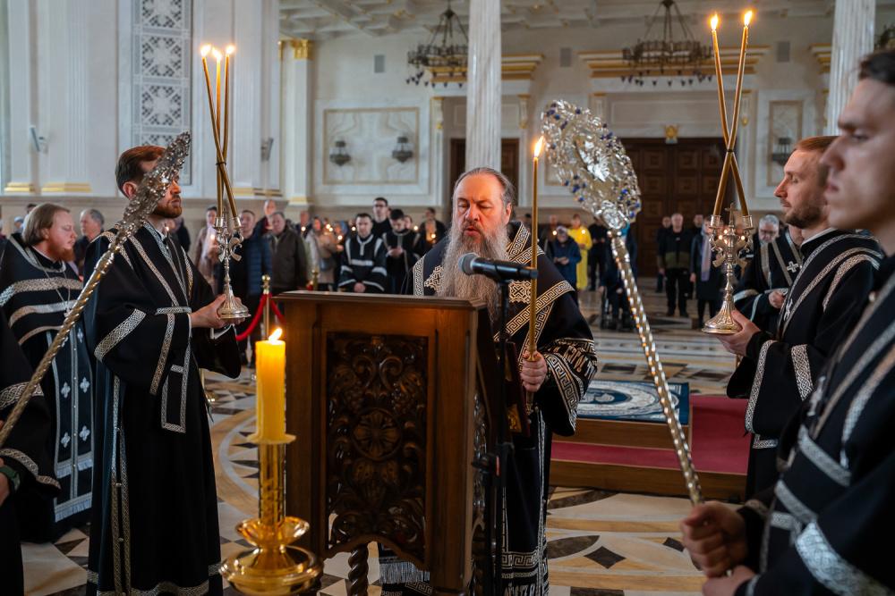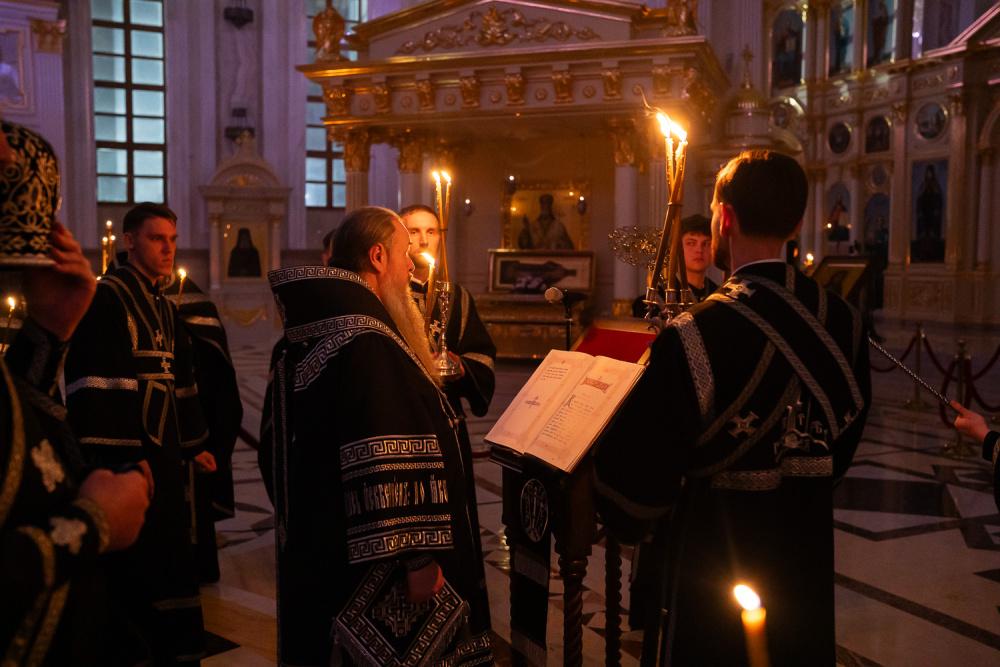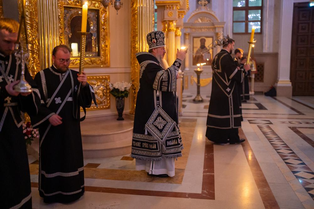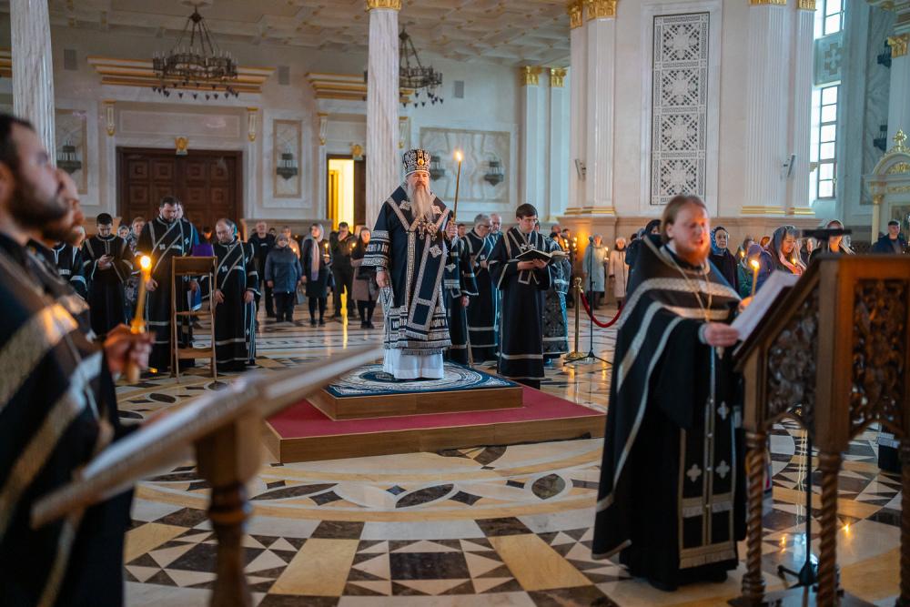 Митрополит Серафим совершил утреню с чтением 12-ти Евангелий Страстей Христовых в Спасском кафедральном соборе