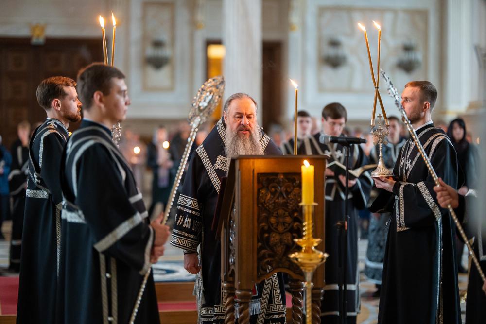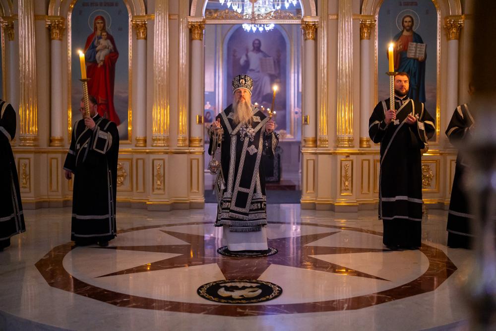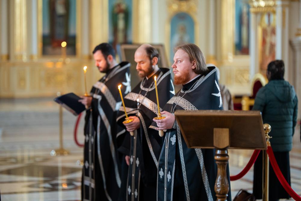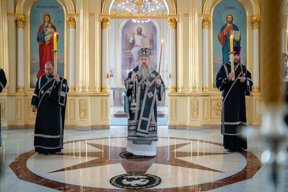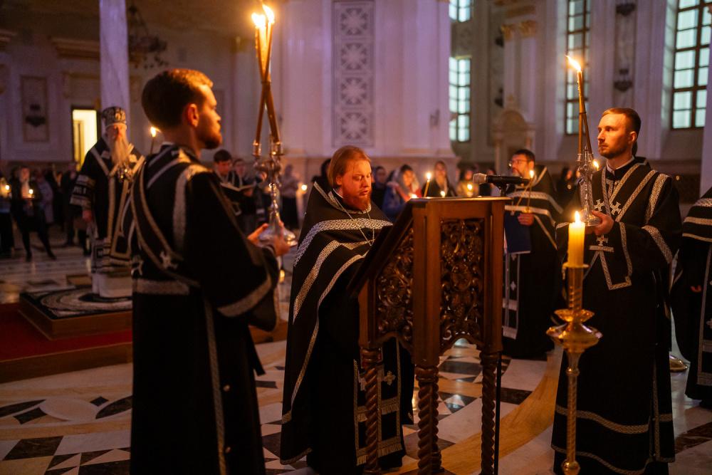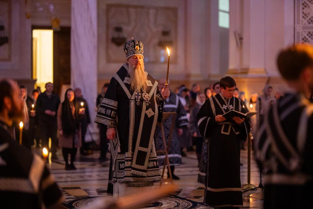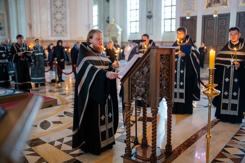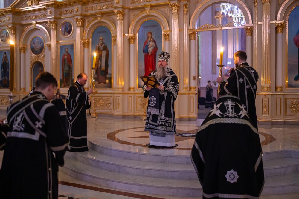 Митрополит Серафим совершил утреню с чтением 12-ти Евангелий Страстей Христовых в Спасском кафедральном соборе
