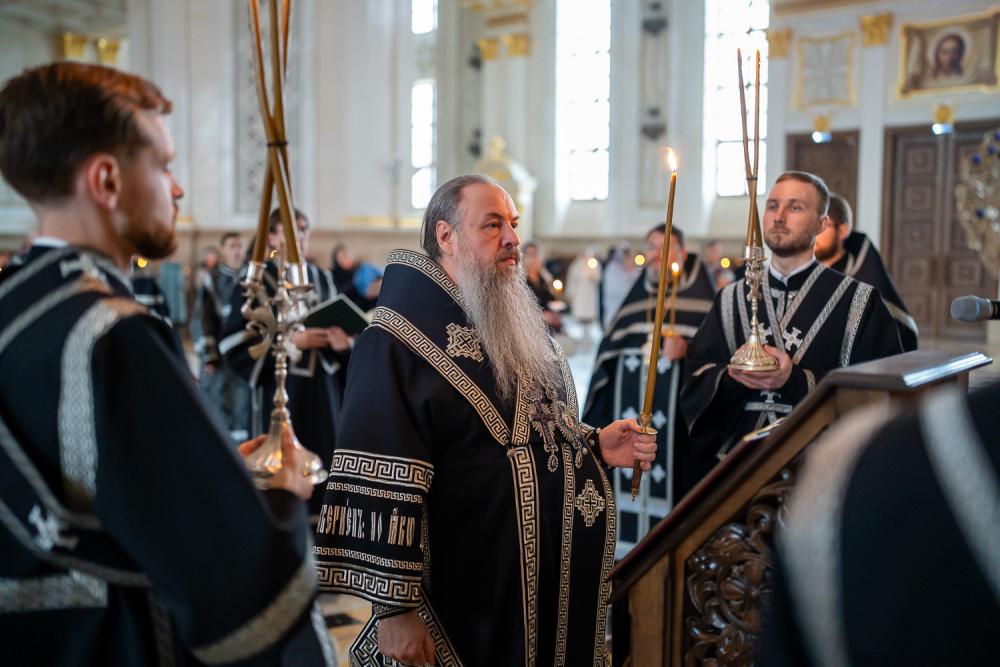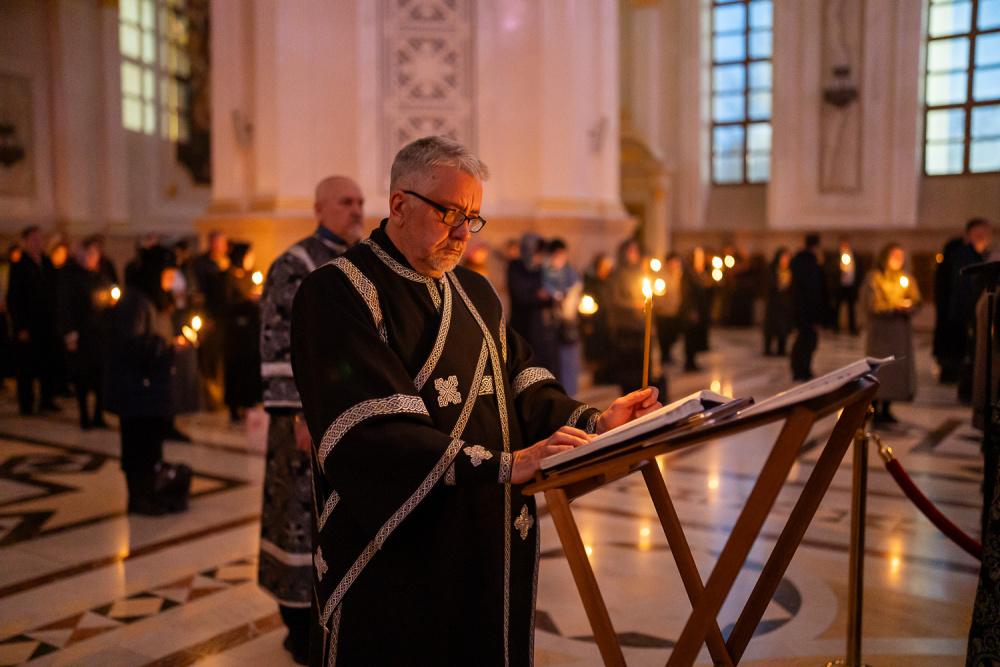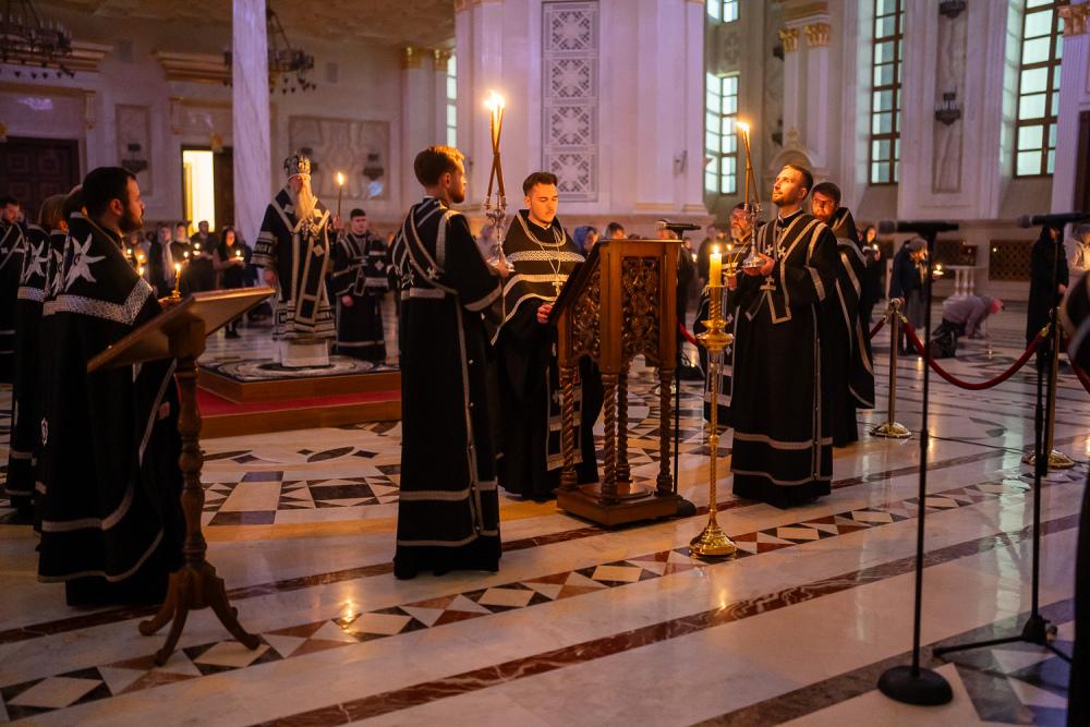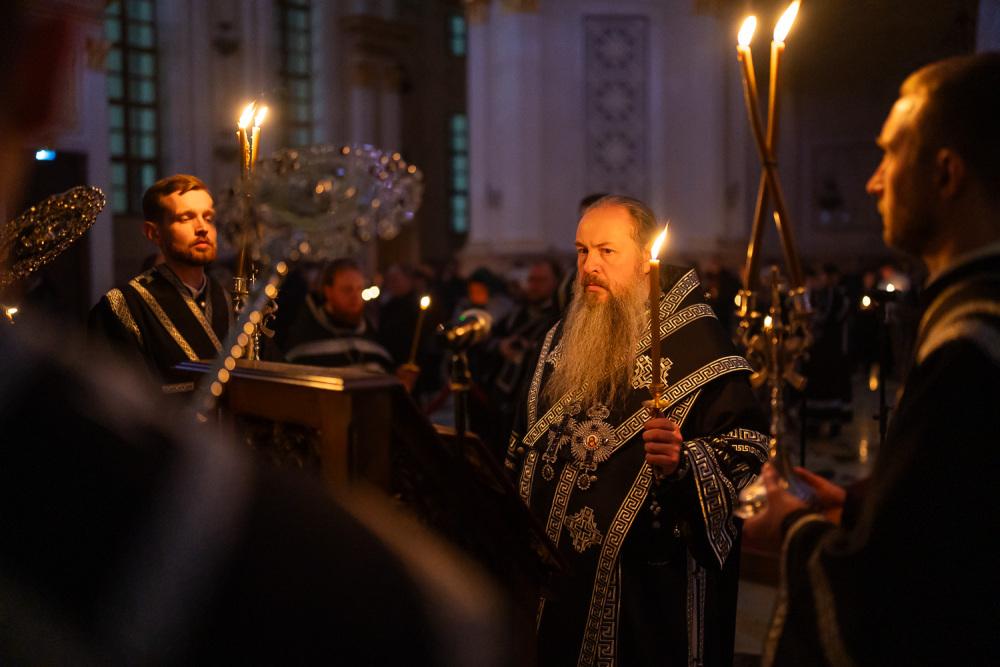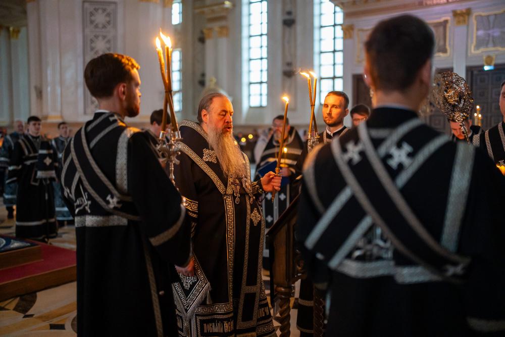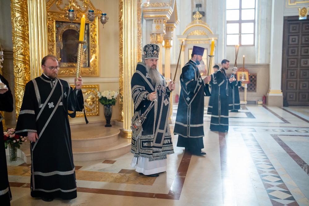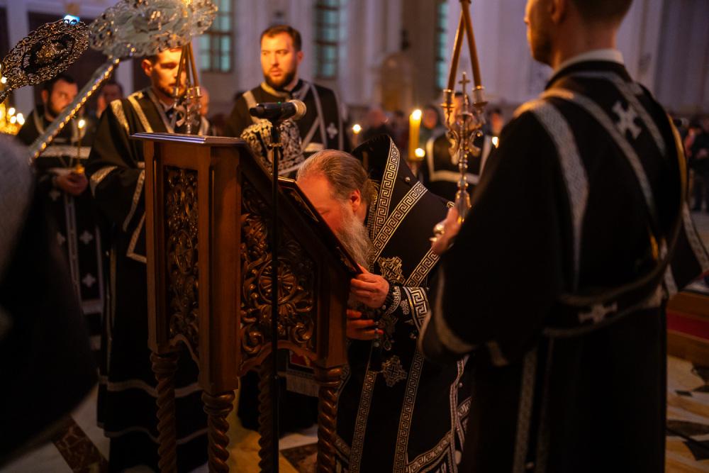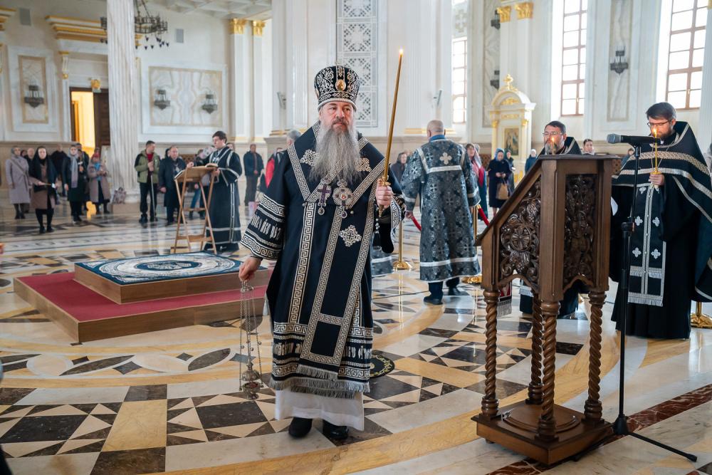 Митрополит Серафим совершил утреню с чтением 12-ти Евангелий Страстей Христовых в Спасском кафедральном соборе
